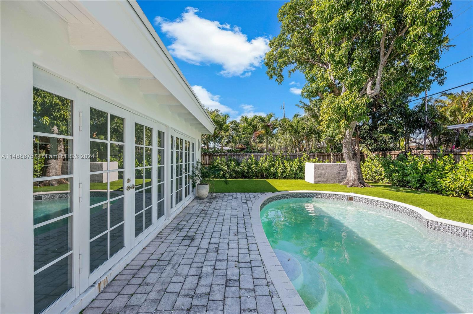 Welcome to 345 Fairway Drive – where vintage charm and modern living blend flawlessly. A Zen-like ambiance guides you to a resort-style pool and lush landscaping, while new 48” porcelain floors brighten the interior space. An elegant decorative fireplace sets the scene for entertaining. With four bedrooms;2 ensuite, the split floor plan guarantees privacy. The renovated primary bathroom offers a spa-like experience. This home offers golf course views and a park down the street. The community offers tennis, golf and a clubhouse to have social gatherings. This gated community is ideally located minutes from the ocean, town center, The Design District, Midtown and South Beach. . 345 Fairway Drive offers the discerning home owner an ideal place to call home.