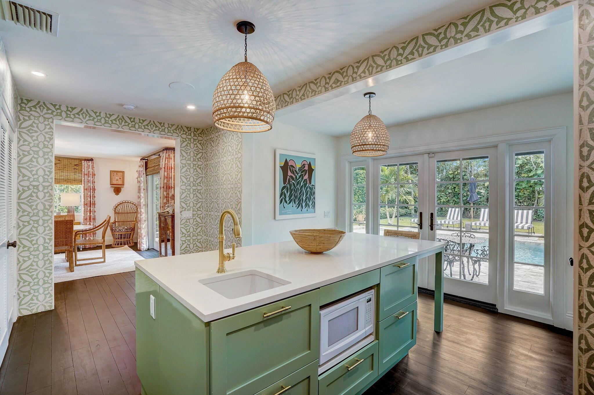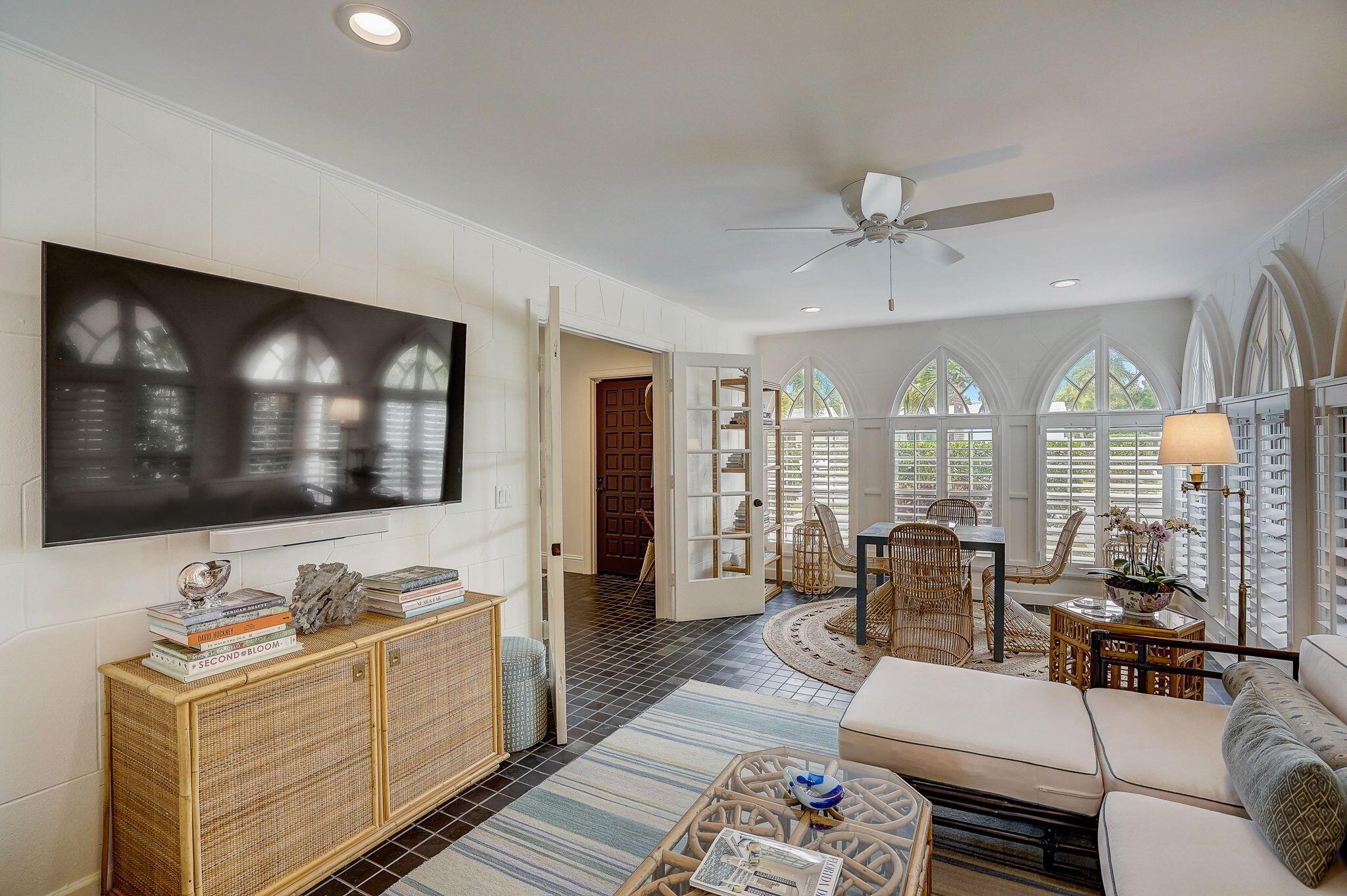 Recently featured in both Coastal Living and House Beautiful, this Spanish Mediterranean gem, built in 1931, was gutted in 2021 and painstakingly updated with every modern convenience (including new roof, new plumbing, new wiring, whole house water filtration system) while preserving its historical gravitas and architectural charm. (The fireplace and its tilework, cathedral windows in the Florida room, and stair railing are all original to the house.) Chic encaustic tiles throughout instill a distinctive island palette that marries casual elegance with a refined aesthetic. The chef's kitchen boasts a Sub-zero fridge, Ilvy gas range, Bosche washer/dryer and custom lacquered cabinetry. The primary bedroom has an attached dressing room that can double as an office or 4th bedroom/nursery.