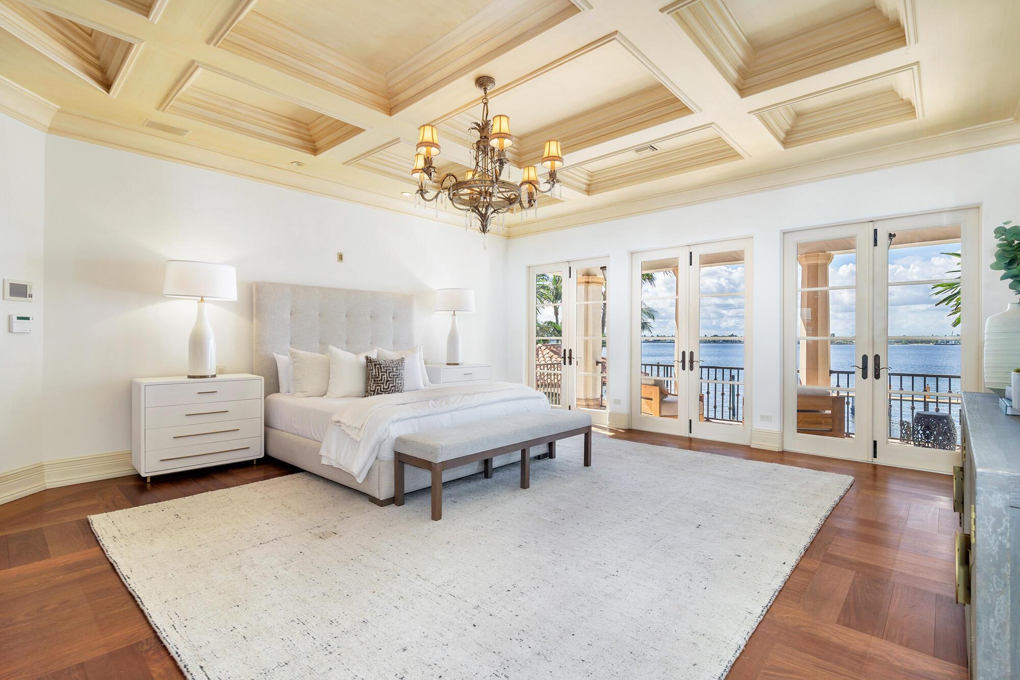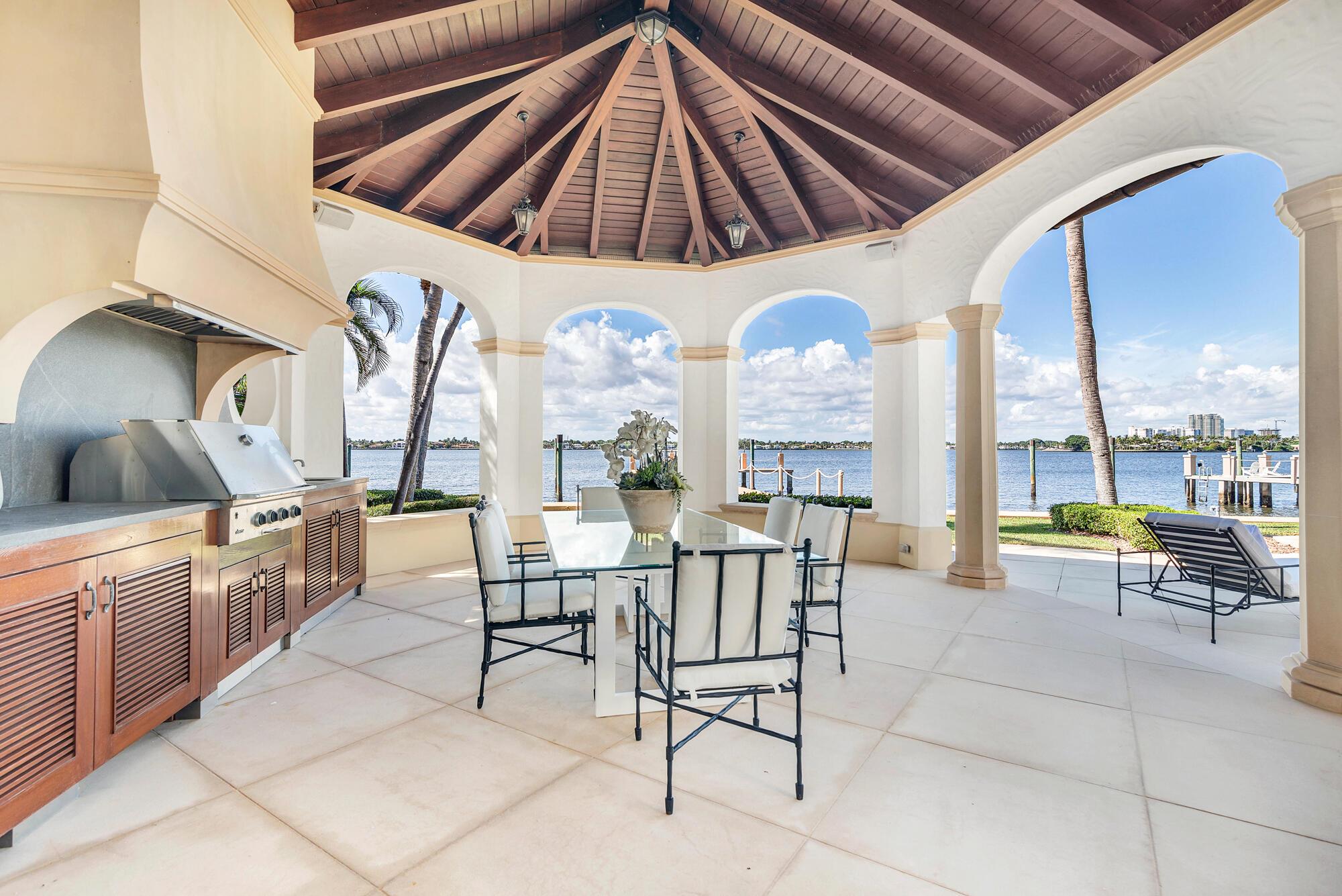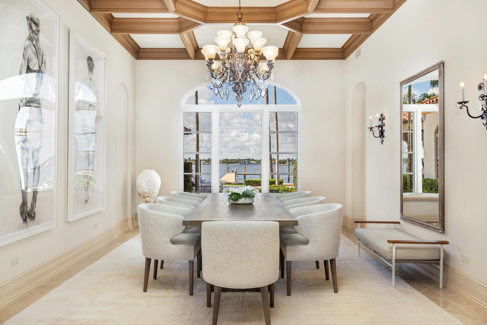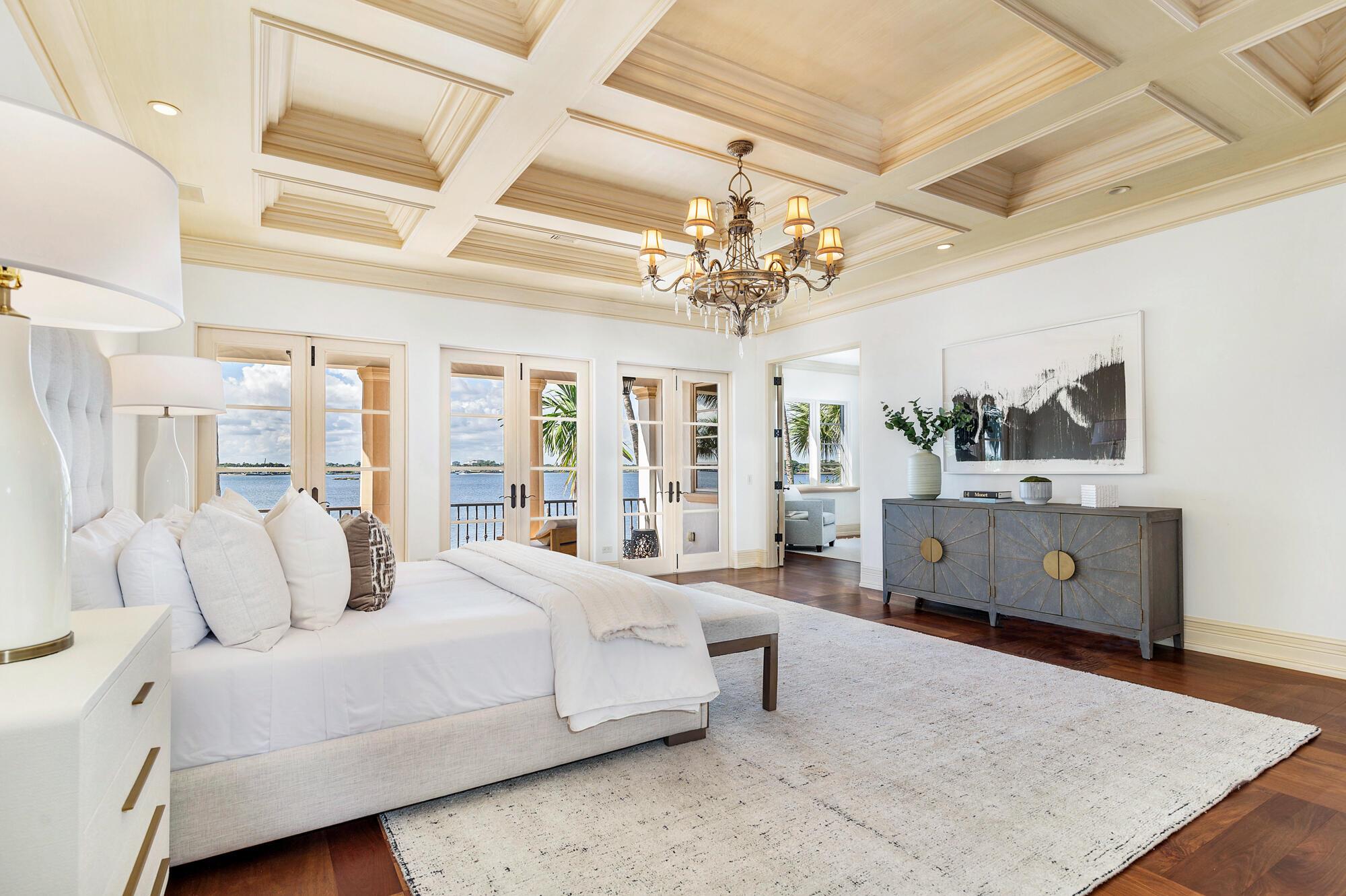 Water, Water Everywhere from the moment you walk in to this magnificent direct lakefront Mediterranean estate on over 2/3 of an acre located in the exclusive Estate Section of Palm Beach. Gated and lushly landscaped, the property is surrounded by mature foliage providing maximum privacy before opening up to 117' of commanding Intracoastal views. The gracious floor plan offers 5 bedrooms/7.5 baths and volume ceilings throughout. Highlights include luxurious second floor primary suite with private balcony and sitting room, chef's kitchen with butler's pantry, wood paneled library, oversized family room, wine cellar, media room, elevator, 100' x 40' concrete dock, full house generator and 3 car garage. Fabulous outdoor spaces with grand covered loggia ideal for dining and entertaining.