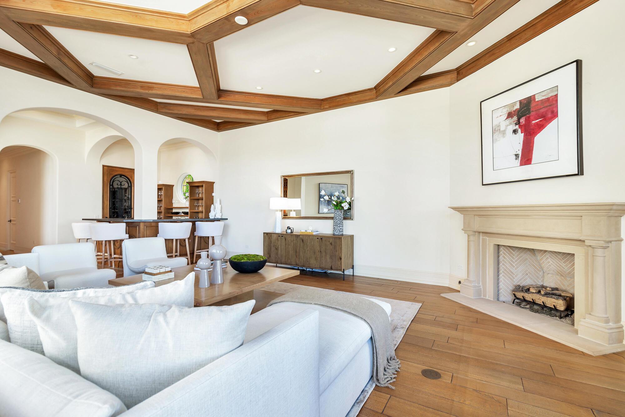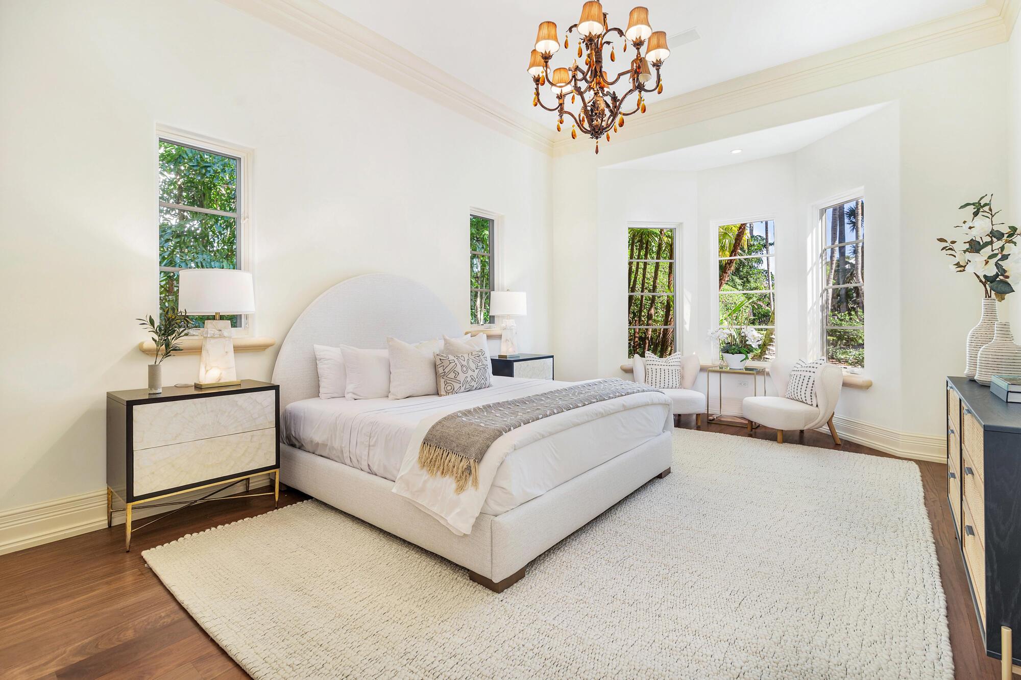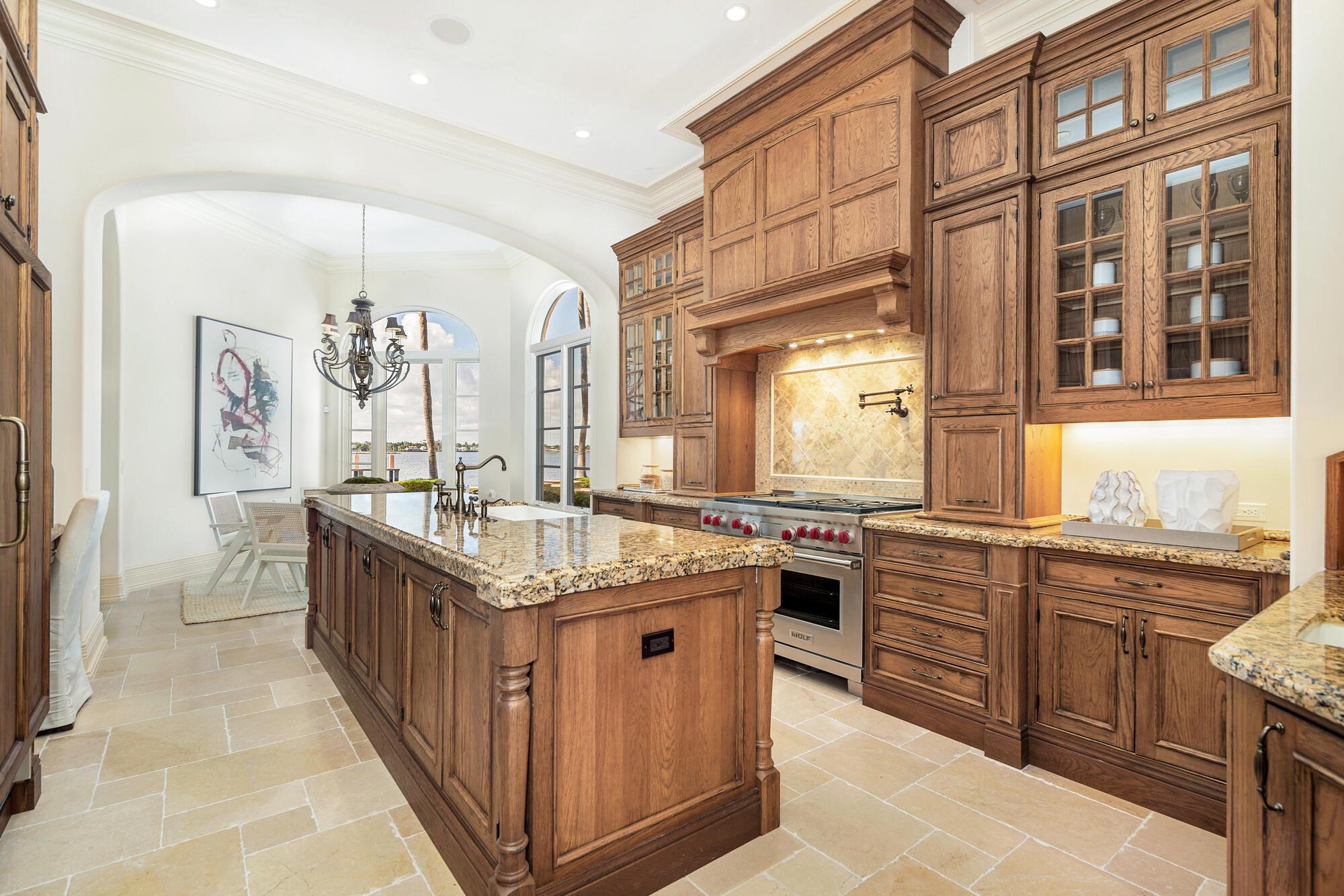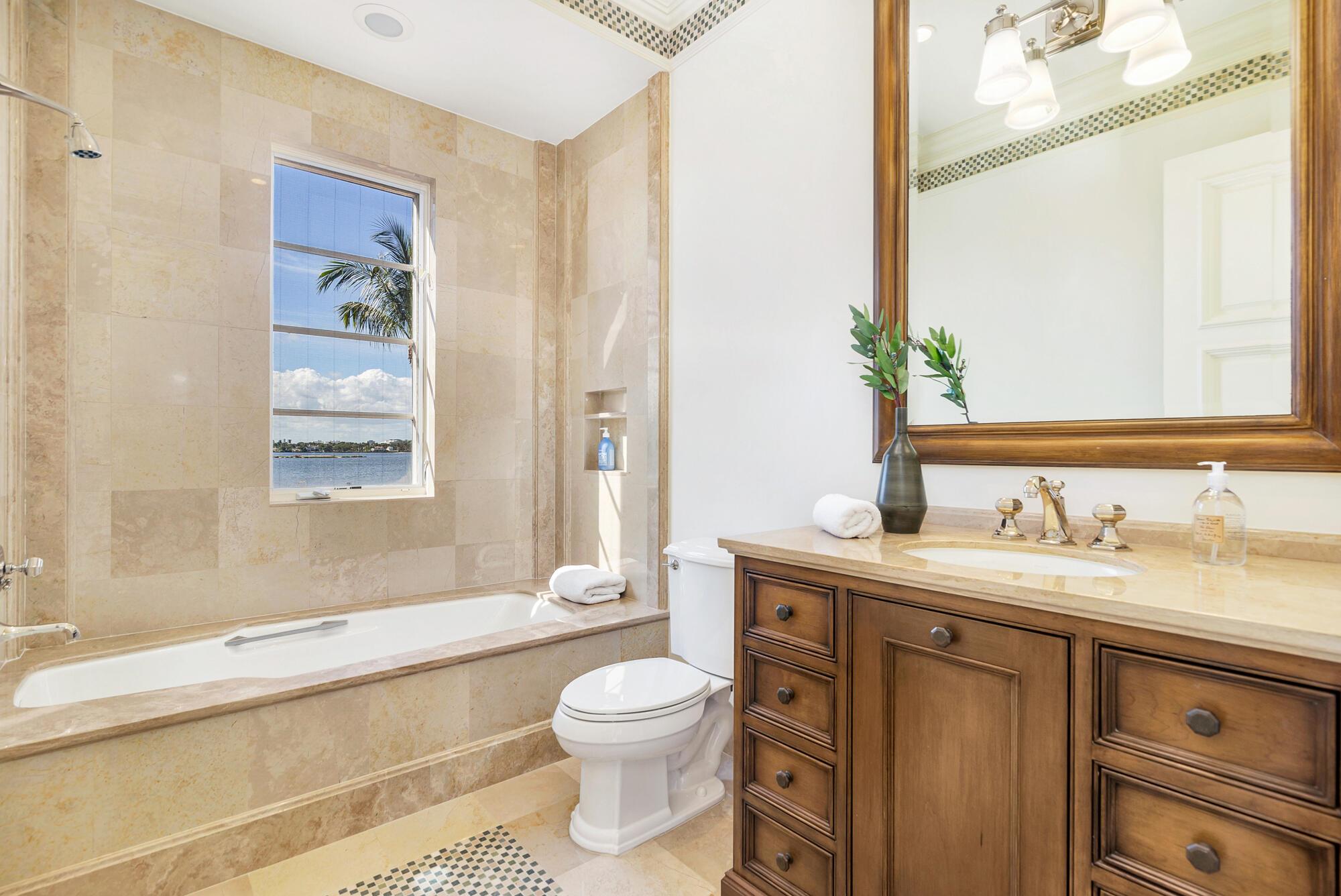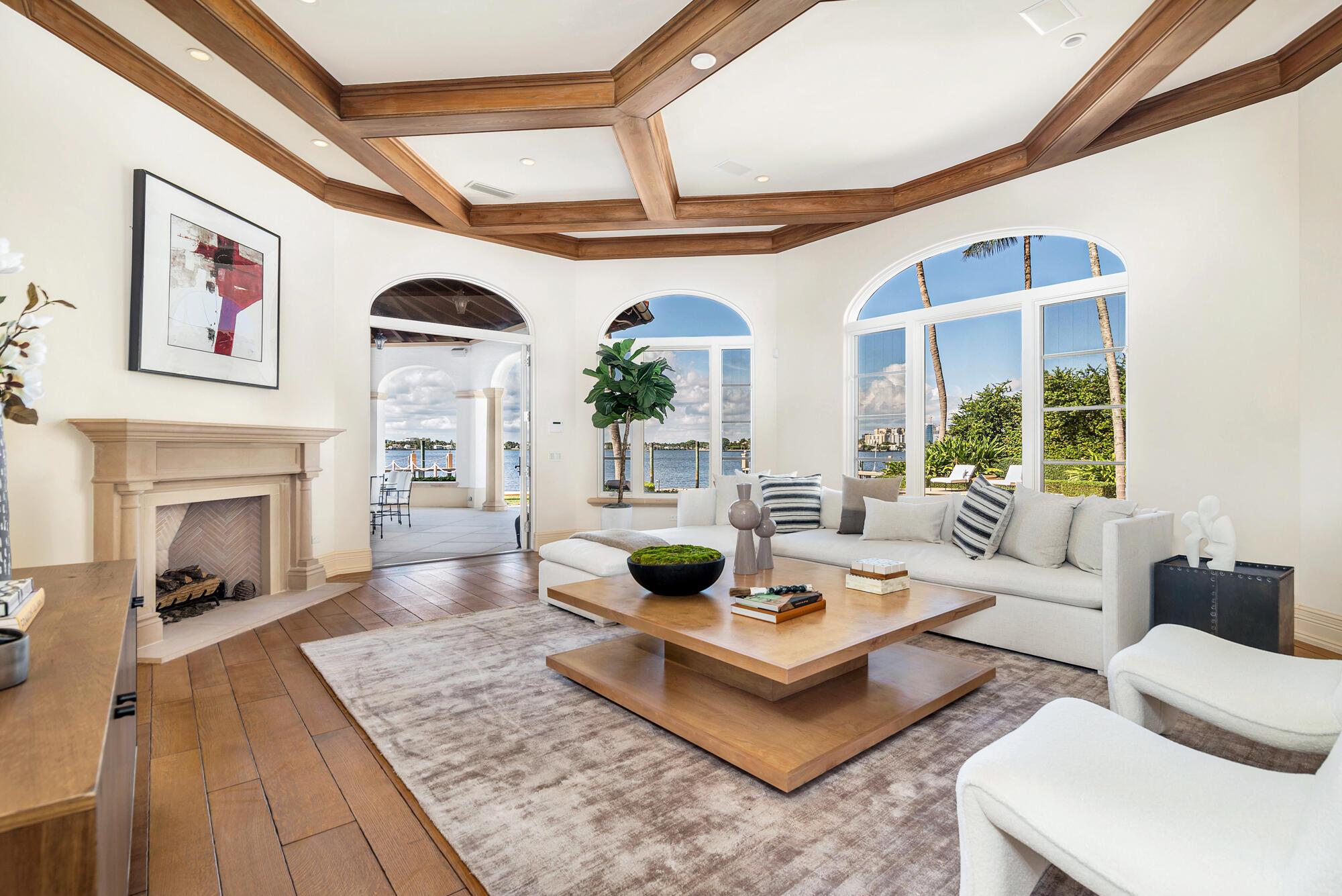 Water, Water Everywhere from the moment you walk in to this magnificent direct lakefront Mediterranean estate on over 2/3 of an acre located in the exclusive Estate Section of Palm Beach. Gated and lushly landscaped, the property is surrounded by mature foliage providing maximum privacy before opening up to 117' of commanding Intracoastal views. The gracious floor plan offers 5 bedrooms/7.5 baths and volume ceilings throughout. Highlights include luxurious second floor primary suite with private balcony and sitting room, chef's kitchen with butler's pantry, wood paneled library, oversized family room, wine cellar, media room, elevator, 100' x 40' concrete dock, full house generator and 3 car garage. Fabulous outdoor spaces with grand covered loggia ideal for dining and entertaining.
