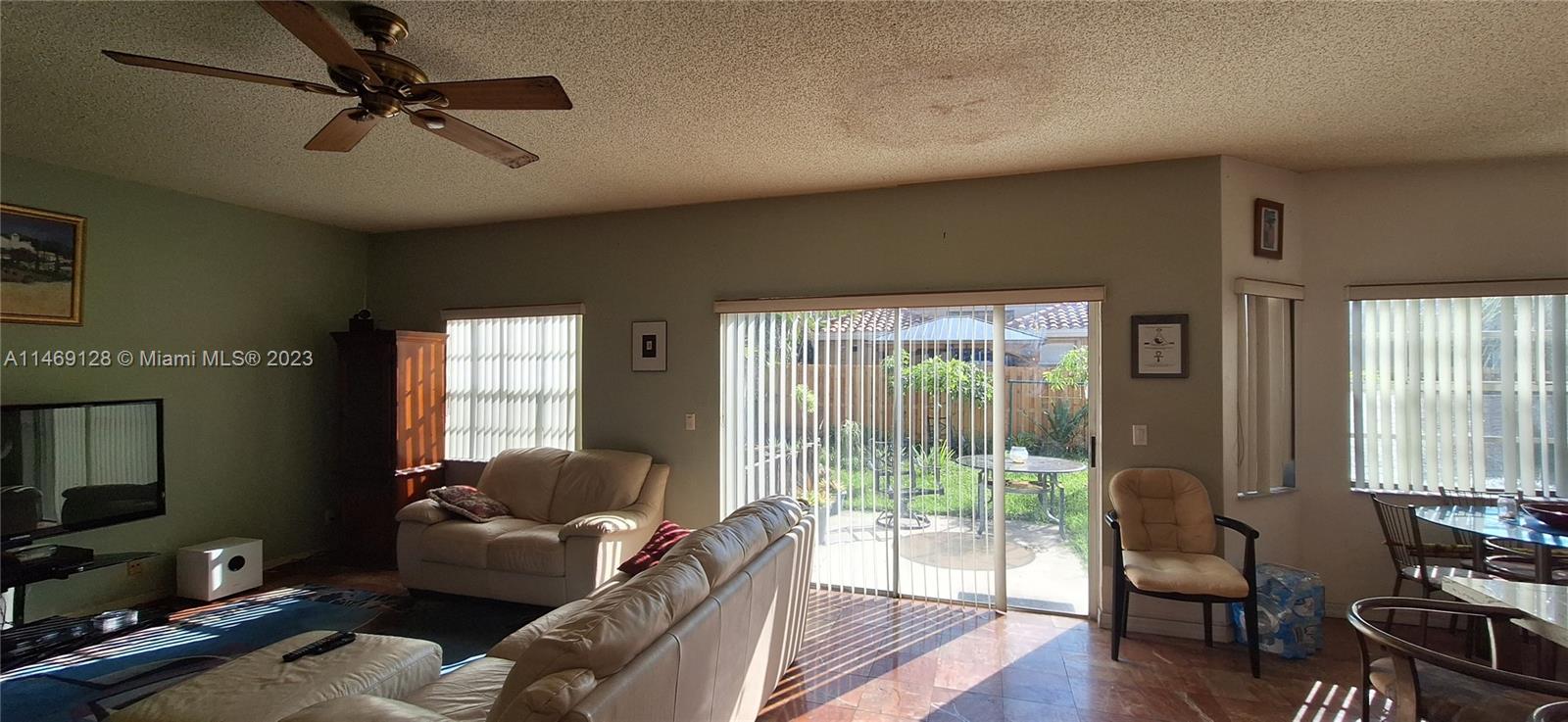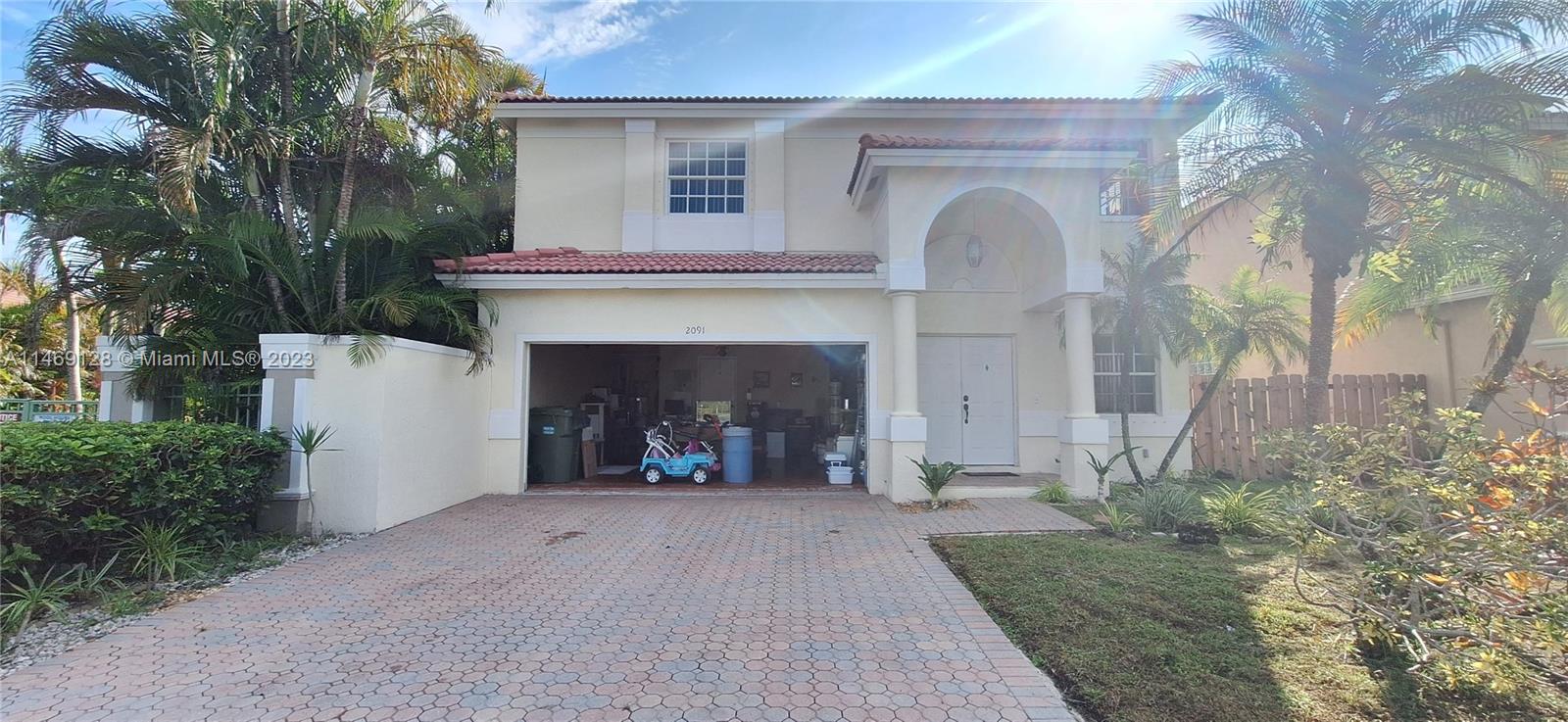 Windows and sliding glass doors let in all the natural light to this two story 5 bedroom home in the gated community, Lakes At Pembroke. Enjoy a private fenced back yard, be greeted at a door front entry leading to your formal living room and dining room, breakfast nook under the window and large kitchen counter for quick dining. Conveniently located near to the community pool, at the end of the street.