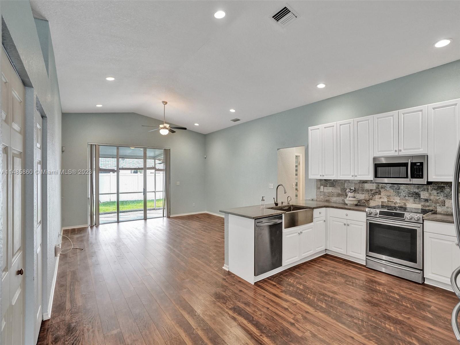 This completely renovated three bedroom house is located in the quiet, family-freindly neighborhood of Harmony Lakes. The layout includes two living areas and an open kithen and family room, making it perfect for entertaining as well as for famiy time. Features include tankless water heater, A/C replaced in 2018, fenced yard, screened patio, room for pool, updated kitchen and bathrooms, built-ins in master closet and hurricane panels.