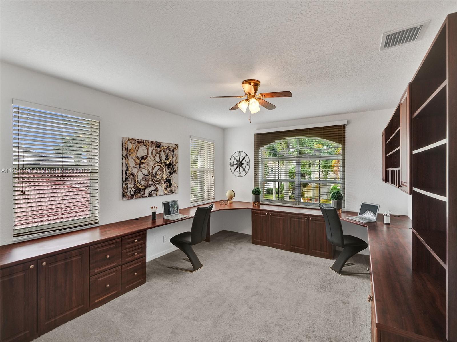 Nestled in the gated community of The Cove at Savanna, this Estes model home combines luxury with comfort. It features a two-story foyer, a freshly painted interior with neutral tones, and a contemporary kitchen with a center island, granite countertops, and stainless steel appliances. The first floor includes a versatile playroom/guest suite with a cabana bath leading to the pool. French doors in the formal dining room open to a patio. Upstairs, a loft complements four bedrooms and three baths. The grand primary suite on the second floor offers a sitting area, a walk-in closet, an office/den space, and a newly renovated bath with a shower and vessel tub. This home is close to community amenities and A-rated schools, offering resort-style living.