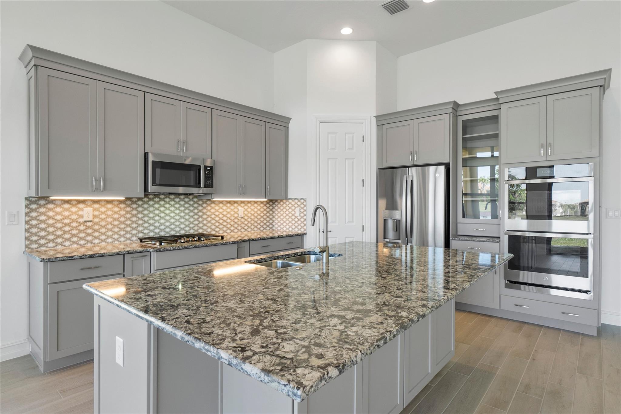 BRAND NEW Resale 55+! Why Wait One Year To Build When you can Move into a Brand-New Home Now! Stunning Single-Story with Gorgeous Waterfront Lot in the Prestigious Four Seasons of Parkland! Don’t miss this this 2Bed, 2.5Bath, 2Car Garage home w/ a large Den/Office that is an optional 3rd bedroom. This Home Features Tons of Upgrades including the Gourmet Kitchen Package with High End Appliances, Walk in Pantry, Custom Cabinetry w/Underlighting, Double wall oven, Gas Range, & much more! Beautiful wood look tile throughout, En suite guest bathroom, Open Floor Plan w/ High Ceiling & Lots of Natural Light! Guard Gated Community w/ Resort Style Amenities. Low HOA includes lawn care, alarm service, cable & internet.