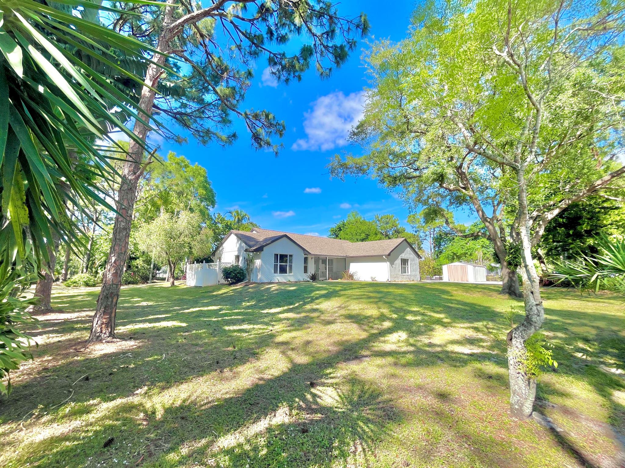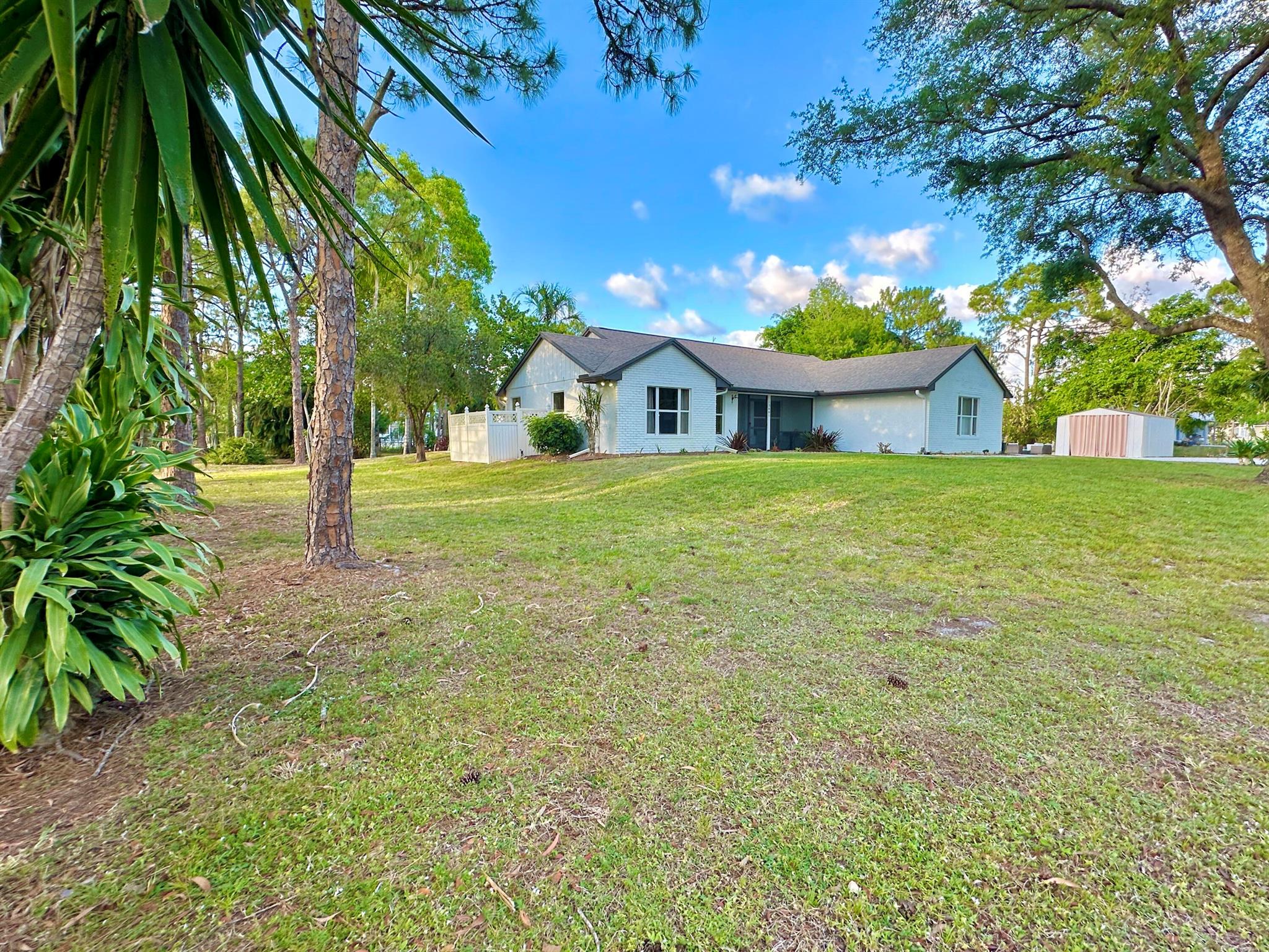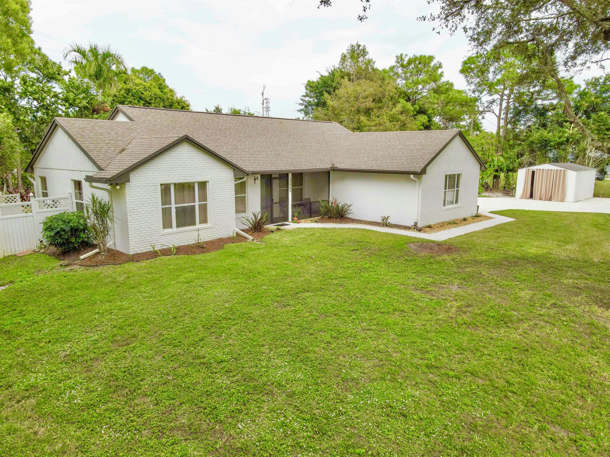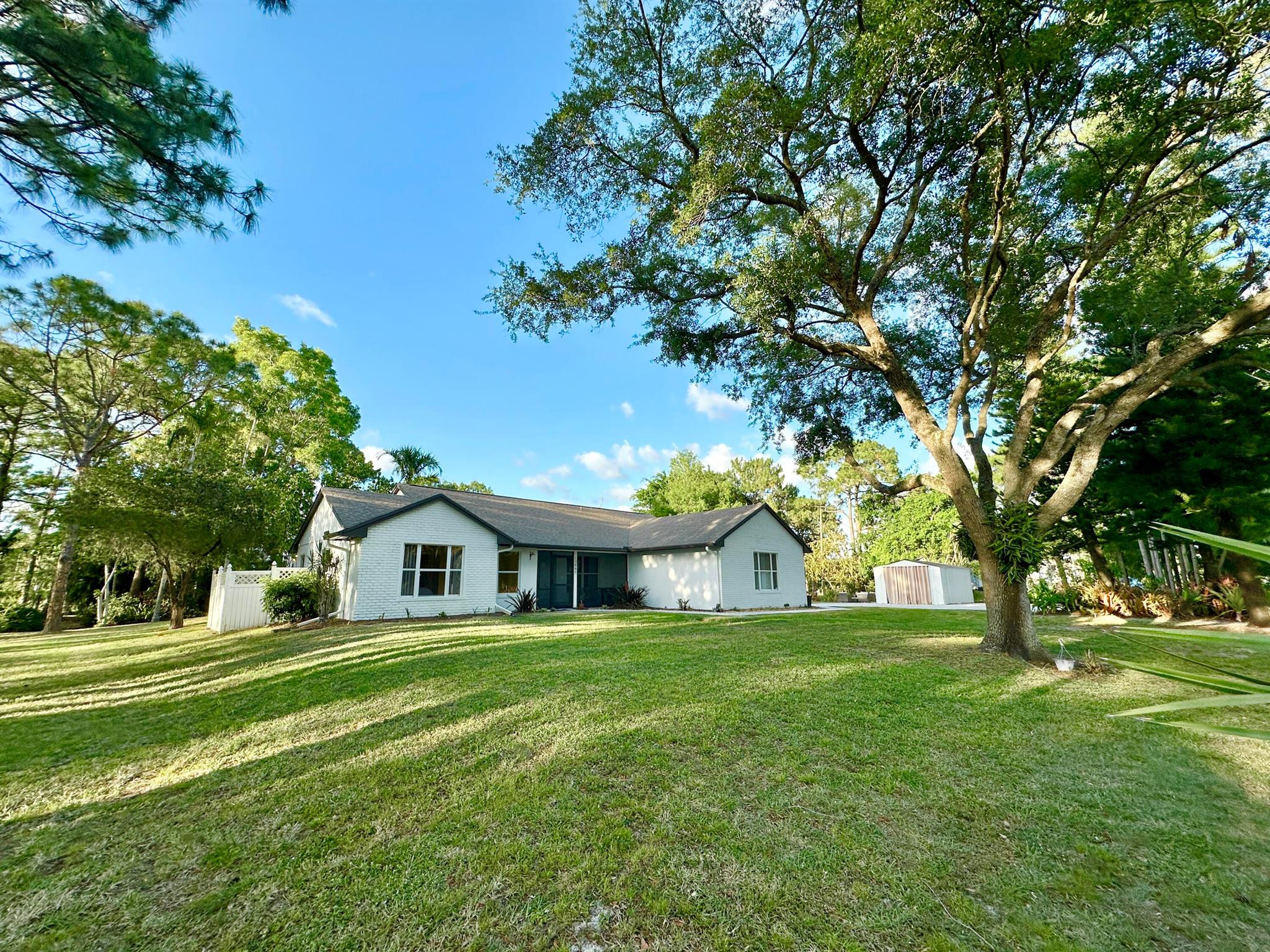 IMMACULATE South Facing SF Home on 1.37 acre, fenced corner lot. Fantastic location! No HOA! This stunning 4 BR or 3 BR + den provides an abundance of parking w/ 3-car garage, extended concrete driveway & metal building. Gorgeous interior. NEWLY updated throughout. Nothing to do but move in. Custom closets, impact French doors, partial impact windows, new cabinets, countertops, appliances, flooring, paint, WIFI garage door openers & more. When you visit this tranquil beauty, spend time outside to see all the possibilities of this amazing lot. Plenty of room to grow and expand. Gated dual entry access perfect for business, shop, guest house, RV, etc. This home and lot provide options. Don't miss an opportunity to see this amazing home, where you can create your dream life.