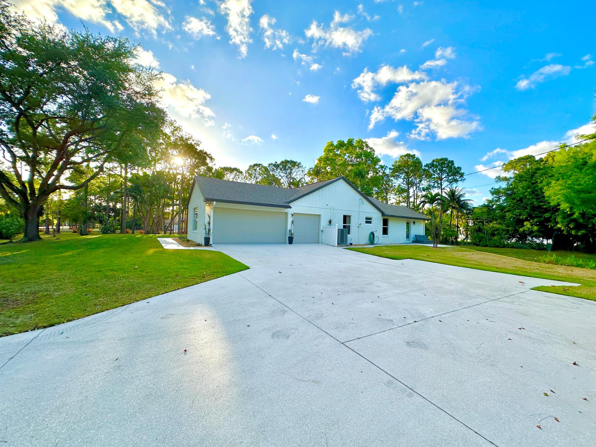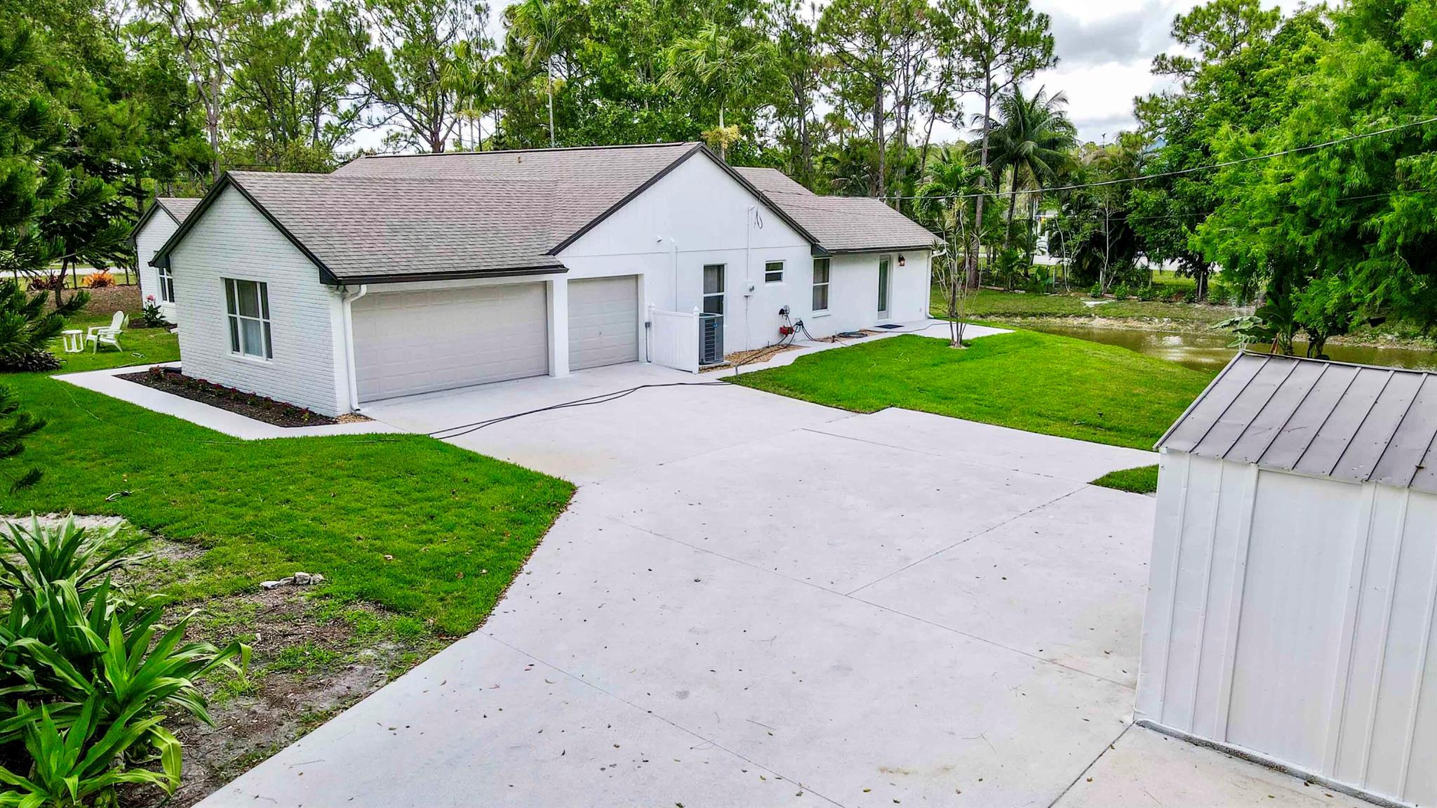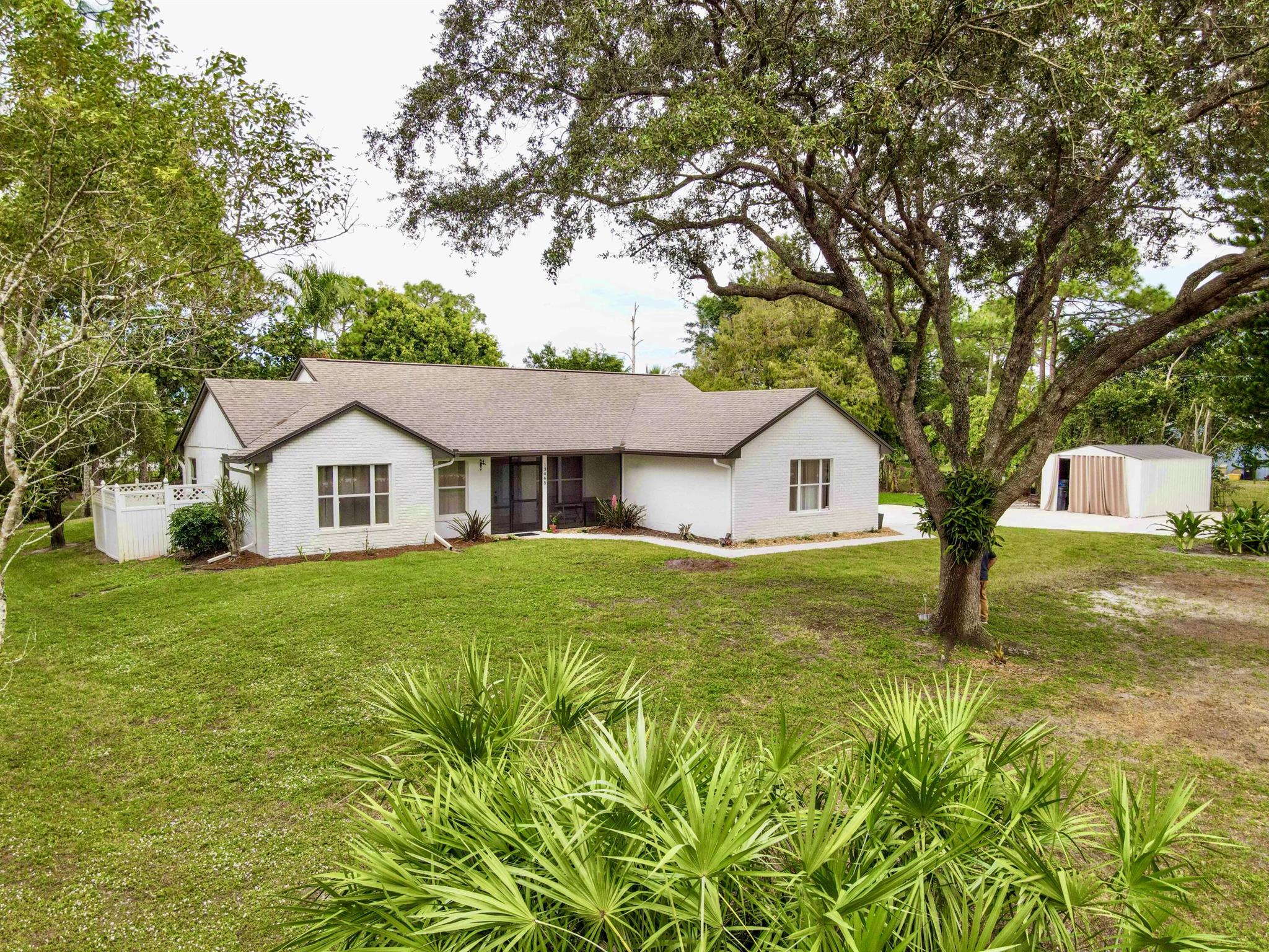 IMMACULATE South Facing SF Home on 1.37 acre, fenced corner lot. Fantastic location! No HOA! This stunning 4 BR or 3 BR + den provides an abundance of parking w/ 3-car garage, extended concrete driveway & metal building. Gorgeous interior. NEWLY updated throughout. Nothing to do but move in. Custom closets, impact French doors, partial impact windows, new cabinets, countertops, appliances, flooring, paint, WIFI garage door openers & more. When you visit this tranquil beauty, spend time outside to see all the possibilities of this amazing lot. Plenty of room to grow and expand. Gated dual entry access perfect for business, shop, guest house, RV, etc. This home and lot provide options. Don't miss an opportunity to see this amazing home, where you can create your dream life.