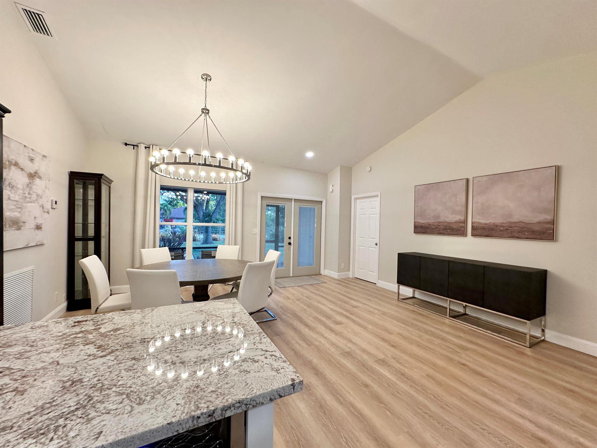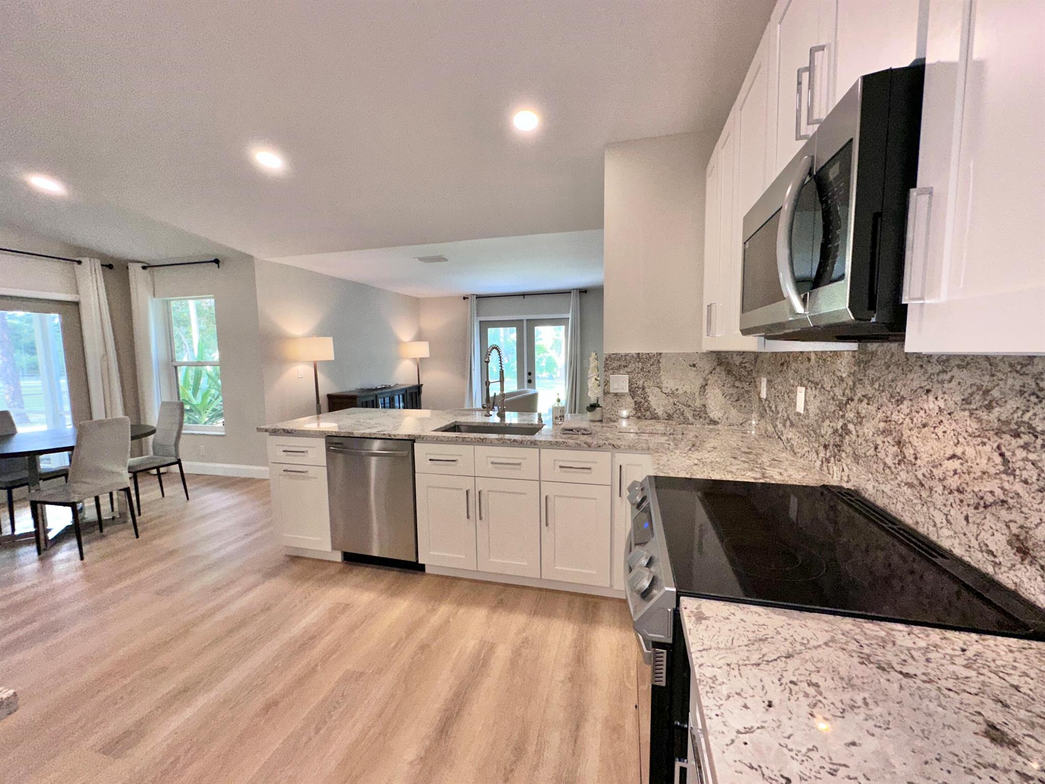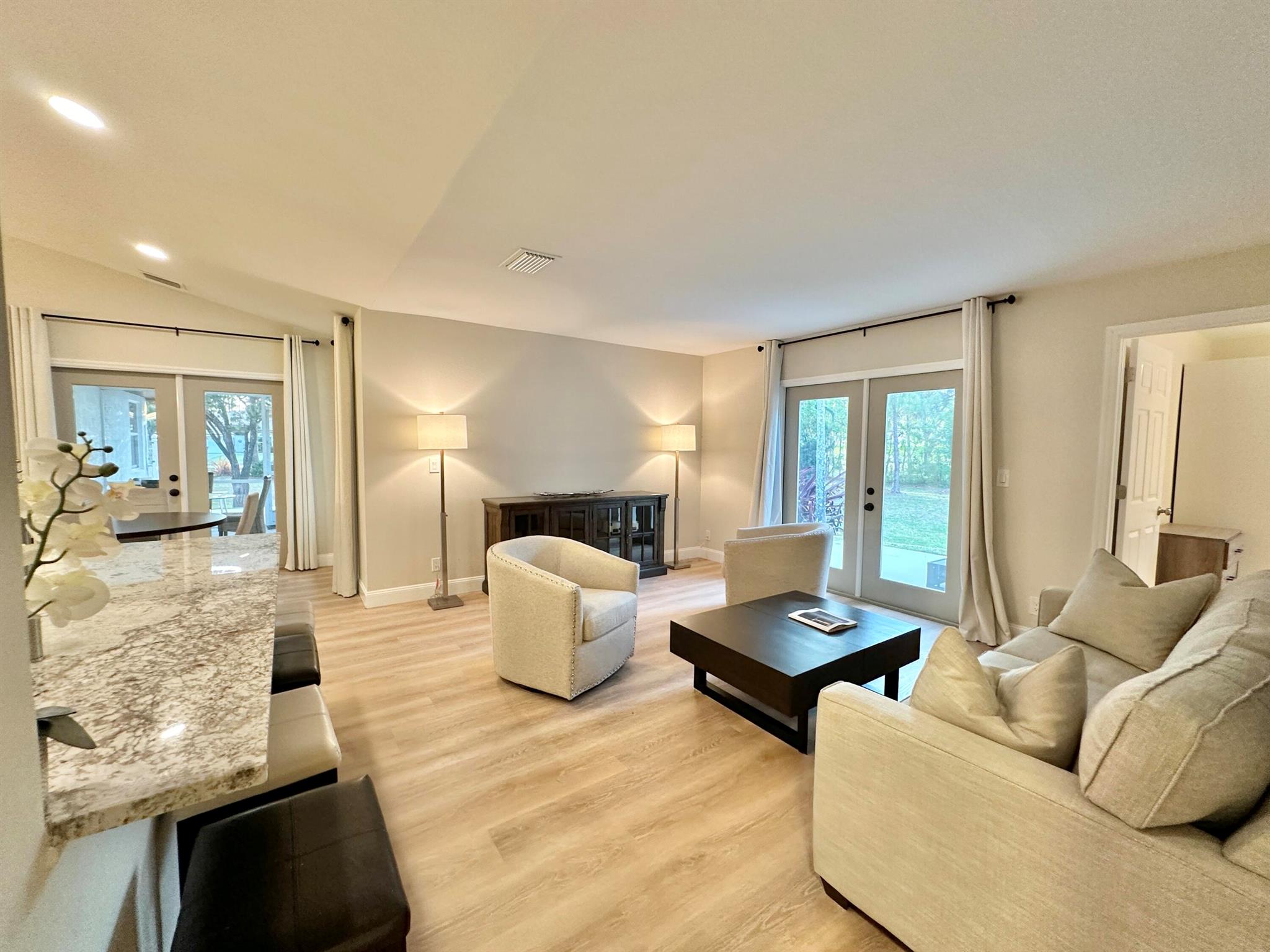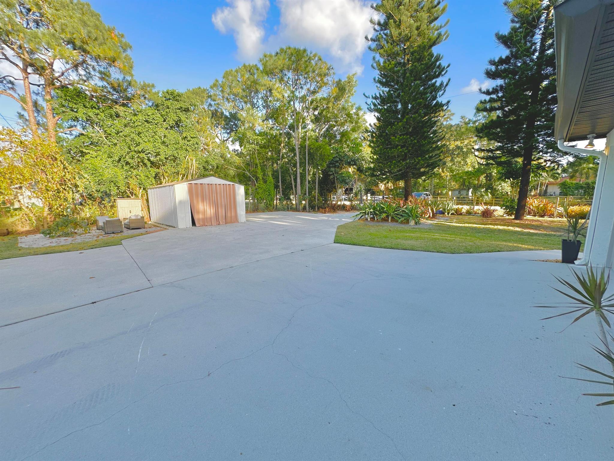 IMMACULATE South Facing SF Home on 1.37 acre, fenced corner lot. Fantastic location! No HOA! This stunning 4 BR or 3 BR + den provides an abundance of parking w/ 3-car garage, extended concrete driveway & metal building. Gorgeous interior. NEWLY updated throughout. Nothing to do but move in. Custom closets, impact French doors, partial impact windows, new cabinets, countertops, appliances, flooring, paint, WIFI garage door openers & more. When you visit this tranquil beauty, spend time outside to see all the possibilities of this amazing lot. Plenty of room to grow and expand. Gated dual entry access perfect for business, shop, guest house, RV, etc. This home and lot provide options. Don't miss an opportunity to see this amazing home, where you can create your dream life.
