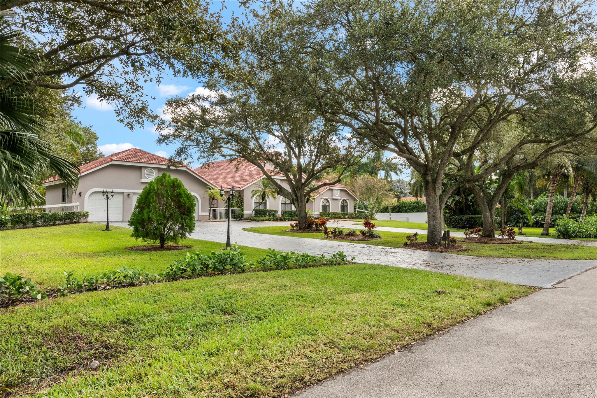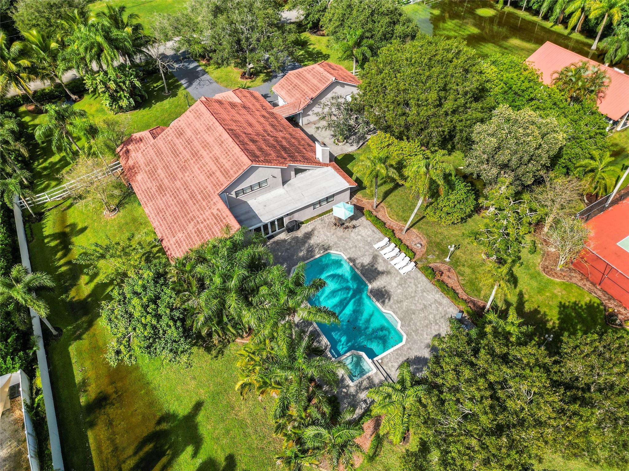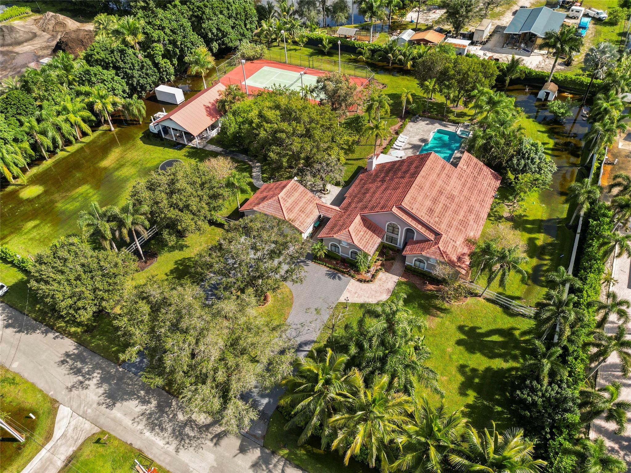 Stately Residence on 2.34-acres with Unique Architecture & Curb Appeal in Sought-after Southwest Ranches! Mature Oak Trees adorn pavered grandiose driveway leading to a full Guest House & 3-vehicle deep garage. Foyer entry welcomes you home to 20' high vaulted ceiling over formal living room, dining room & spacious gourmet kitchen with granite counters & S/S appliances package. Florida family room designed perfectly for billiard entertaining & sports TV viewing with outdoor sights of the oversized pool, greenest of grounds, detached barn & private tennis court. This 5Bed/3Ba Main Residence with separate 1Bed/1Ba full Guest House is priced right allowing for a new owner to update if so desired. This home in SWR well under $2M is a treasure! Finder's keepers... won't last long! A must see!