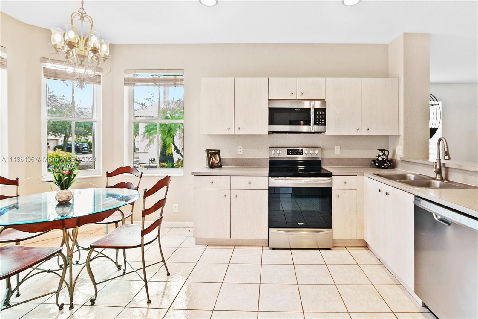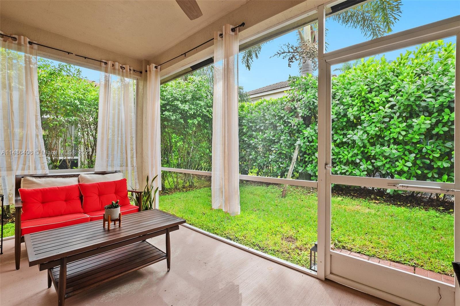 Beautifully maintained home in Savanna in the largest GATED community in Weston! Home has an open floorplan feel w/laminate flooring thru-out living areas & bedrooms & tile in wet areas - NO CARPET! Spacious kitchen has stainless steel appliances, snack counter, & breakfast nook w/bay windows that make the space light & bright. Master suite features a bathroom w/dual sinks, tub w/separate shower, & walk-in closet. In the backyard is a screened-in patio w/mature vegetation that offers plenty of privacy. Other features of this home include NEWER A/C (2018), NEW ROOF (2022), & hurricane shutters. This community has many amenities: two manned gates, resort-style pool, lap pool, children's splash area, clubhouse, tennis & basketball courts, soccer field, hockey rink, playground, parks, & MORE!