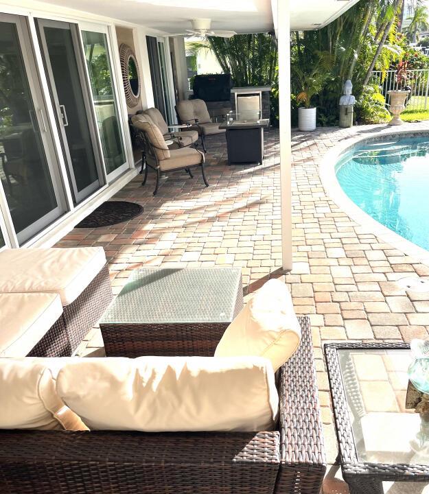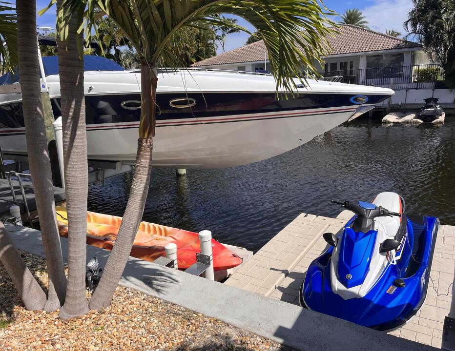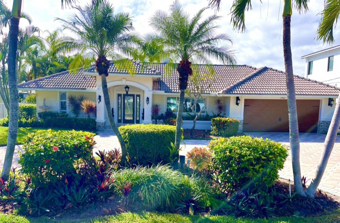 742 Berkeley St, Boca Raton, FL, USA. Beautiful southern exposed deep waterfront home in the prestigious Bel-marra community of East Boca Raton. Front yard has a paved, circular driveway. Interior has a bright and open split floor plan with a 2-sided fireplace. Impact doors and windows throughout, new AC/HVAC system, stainless kitchen with granite counters. Furnishings are negotiable. Outside has a spacious paved deck with pool and outdoor grill. 85' of waterfront, 50' dock with 220v power. There's a 16k boat lift and 2 floating docks for your kayaks and jetskis. By boat this home is minutes to Lake Boca and its inlet and there are no fixed bridges. Minutes to Mizner Park or Atlantic Ave's entertainment.