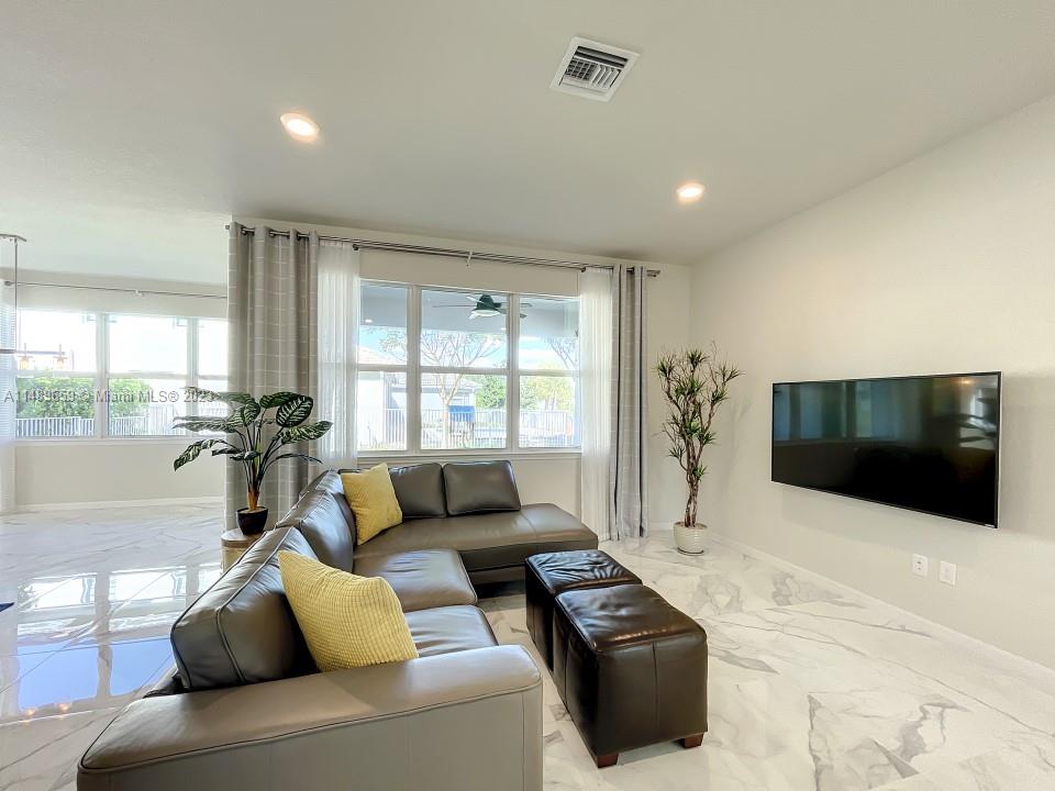 MOVE-IN READY. Meticulously maintained house with 2 car garage, Impact windows/doors and many upgrades. 3 Beds, 2.5 Baths, 1 office/den on first floor and 1 loft on second floor. Open concept floor plan with bright natural light and high ceilings. Polished Porcelain tile on first floor, Quartz countertop, Jenn-Air counter depth refrigerator and new luxury vinyl plank flooring on 2nd floor. (No carpet) Large master bedroom with 2 walk-in closets. Great Location Close to Target, CVS, Publix, Restaurants. Convenient to 1-95 and Turnpike. Minutes to Aventura Mall, FLL Airport and Beaches. Parkview at Hillcrest is a Gated community with resort style amenities including miles of walking trails.