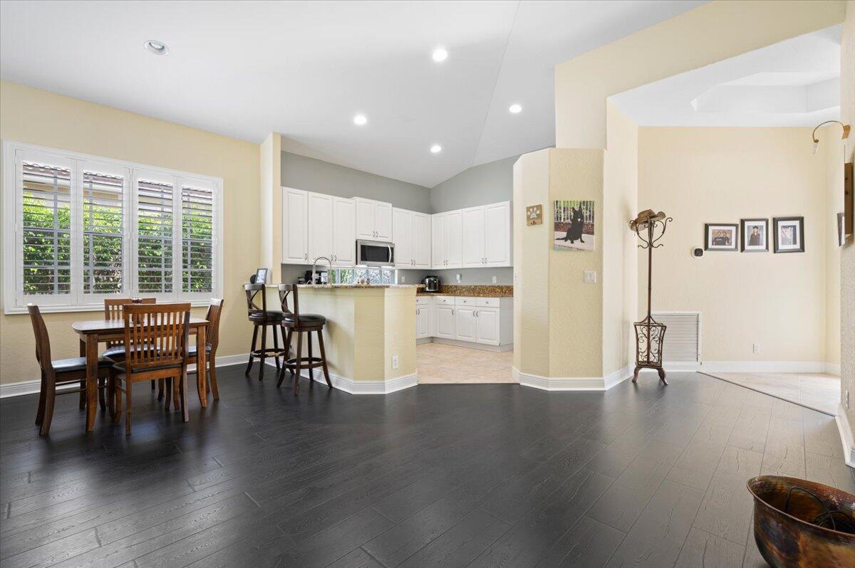Welcome to your own slice of paradise tucked away in the sought after, gated community of Andros Isle. This delightful one-story townhome has 2 bedrooms, 2 Full Bathrooms, PLUS DEN, which can be a 3rd bedroom, exudes charm and comfort, offering a tranquil retreat with enticing features that redefine the meaning of cozy living. Experience the joy of having a private saltwater pool just steps from your back door, complemented by a spacious yard, perfect for hosting gatherings and creating unforgettable memories. Beautiful wood flooring throughout the main living areas accentuates the soaring ceilings, while the open kitchen, decked out with granite countertops and modern stainless steel appliances (all less than 5 years old), invites culinary adventures. The NEW roof installed June 2023