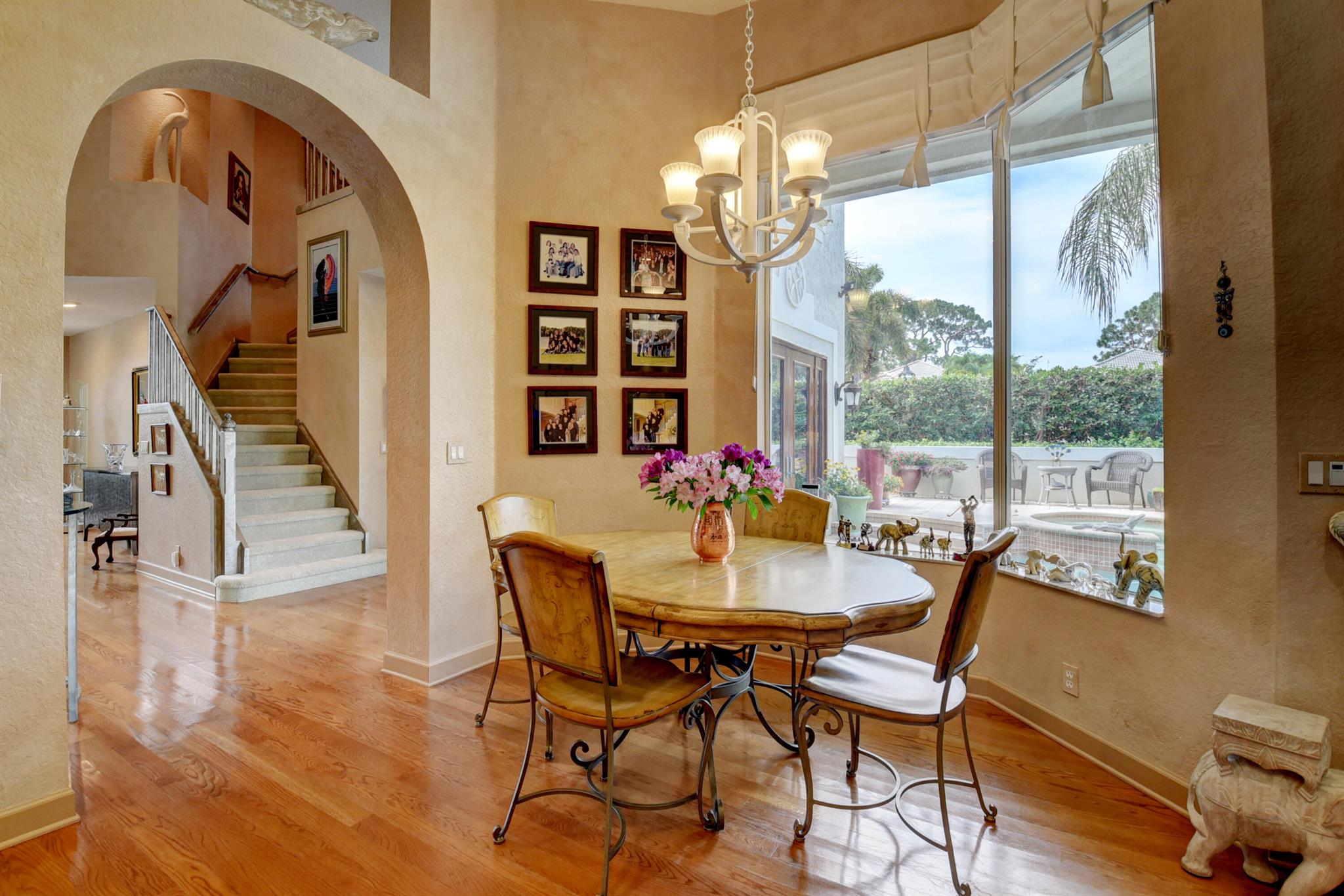 GOLF MEMBERSHIP -DON'T WAIT 12 YEARS ON THE WAITING LIST - PLAY GOLF DAY 1! This house has it all --Nestled on a corner lot wit beautiful exotic gardens, this charming 2-story home offers 5 bedrooms ,3 1/2 baths,a totally private secluded courtyard pool area & golf cart shed. Features include: hardwood floors;volume ceilings & extra high-hat lighting;a remodeled kitchen with light oak 42' cabinetry,granite counters,tumbled marble backsplash,self-closing drawers,stainless steel appliances & a lovely breakfast nook; Family Room entertainment credenza;upgraded Master & secondary bathrooms; upgraded carpeting in the bedrooms & staircase; custom closet design throughout; new roof (2020); impact windows & hurricane protection;newer washer & dryer; 2 water heaters.