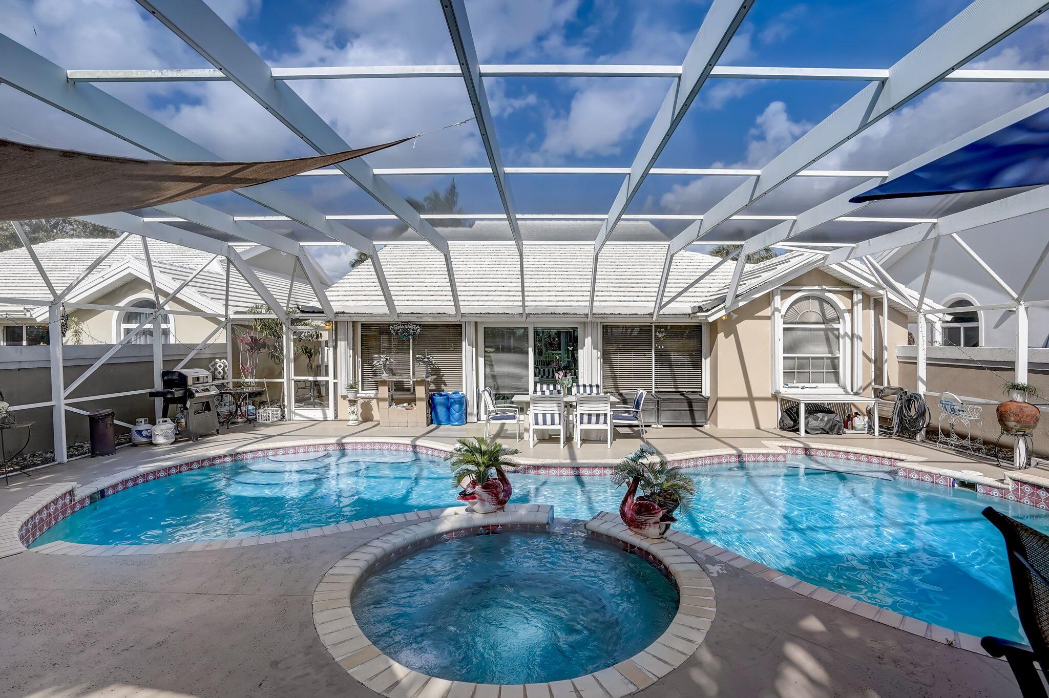 Welcome to Saratoga Bay! Bring all qualified offers on this beautiful DiVosta Built concrete home which features a newer eat in kitchen,renovated bathrooms. Roof ,AC,and HW Heater all replaced in 2019! Gleaming newly refinished marble floors,custom built in shelving and soaring ceilings in the huge open living room! The resort style backyard features a large ,fully screened, in ground pool,a gorgeous outdoor bar,and an open rear lanai overlooking the waterfront canal! Very quiet location,yet conveniently located to I-95,Florida Turnpike and PBIA/ Palm Beach International Airport. The Ballpark of the Palm Beaches,the spring training home of the Houston Astros and Washington Nationals is nearby. Memberships available but not mandatory for Bear Lakes CC,Golf,Tennis,Pools,Bar,Dining and more