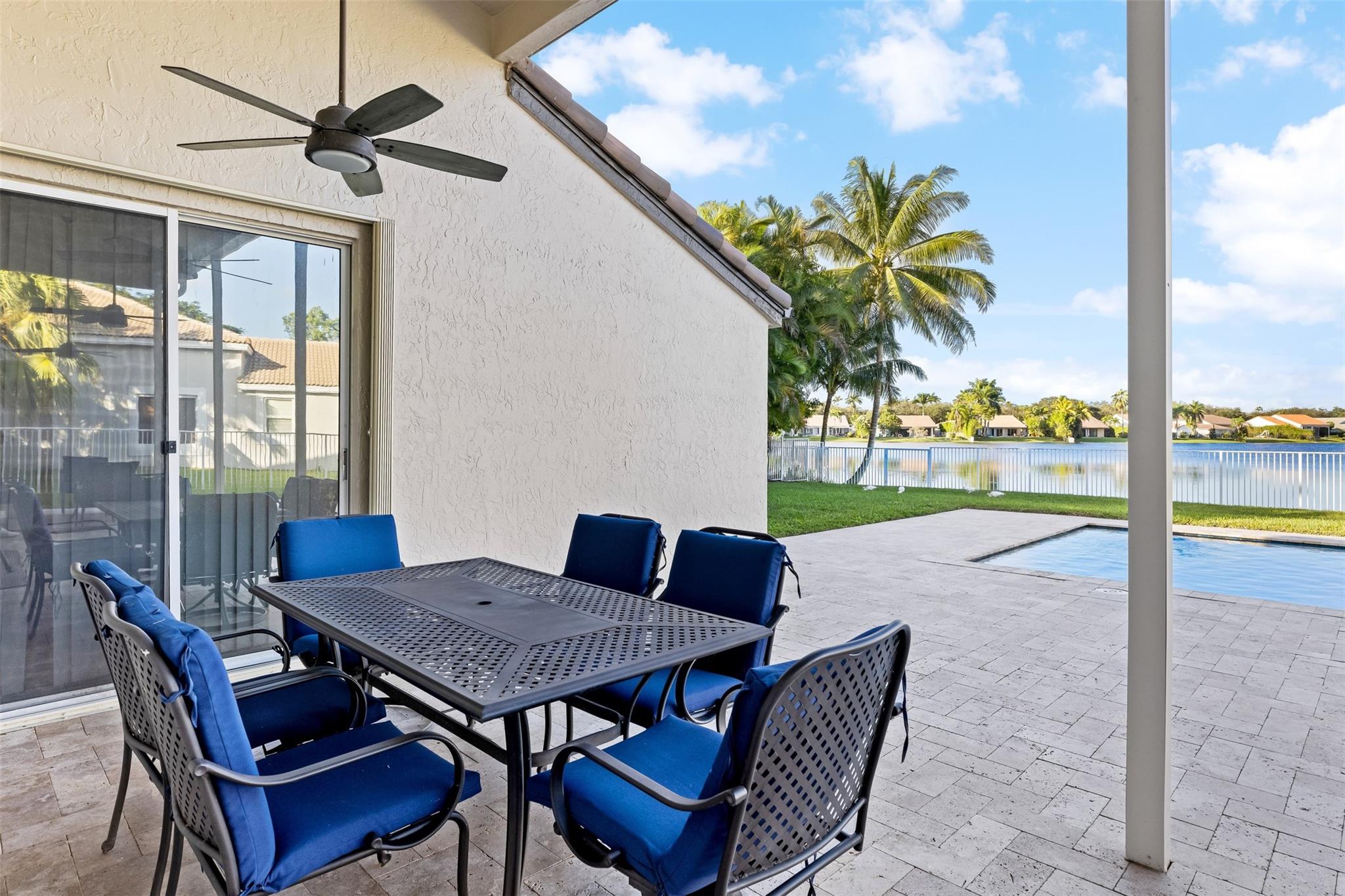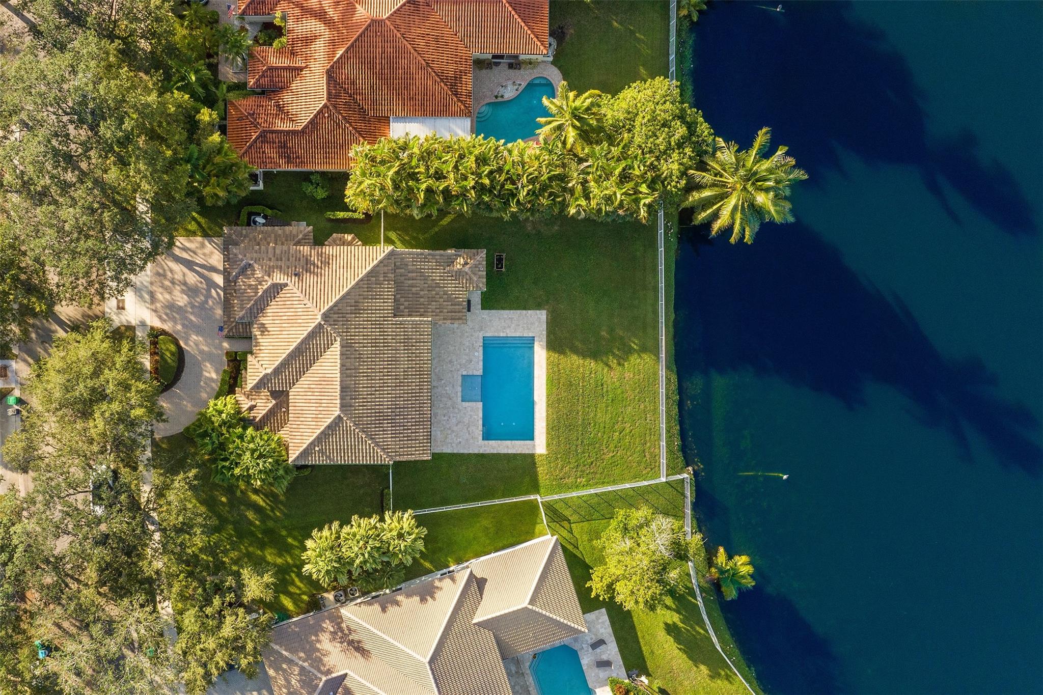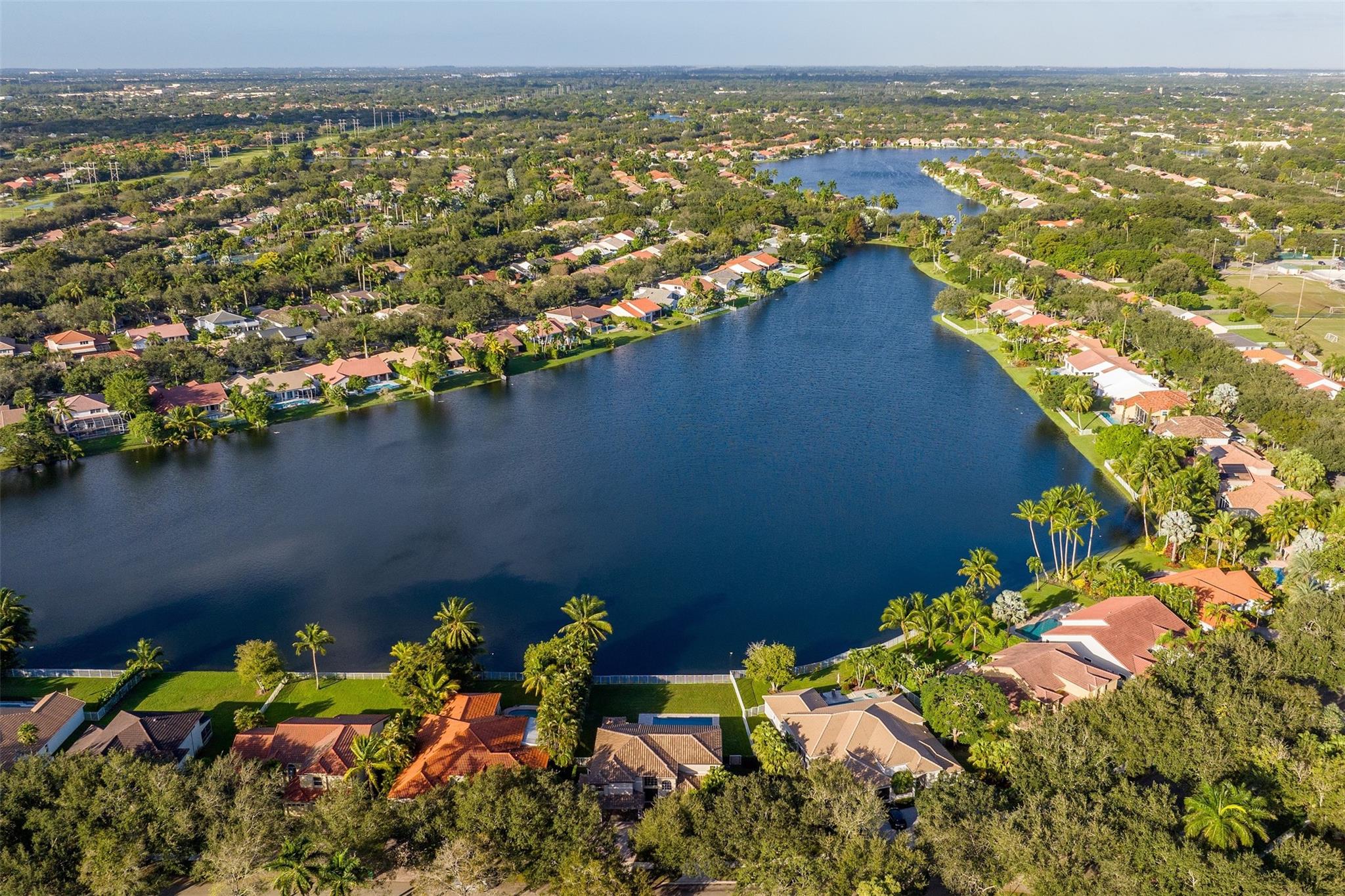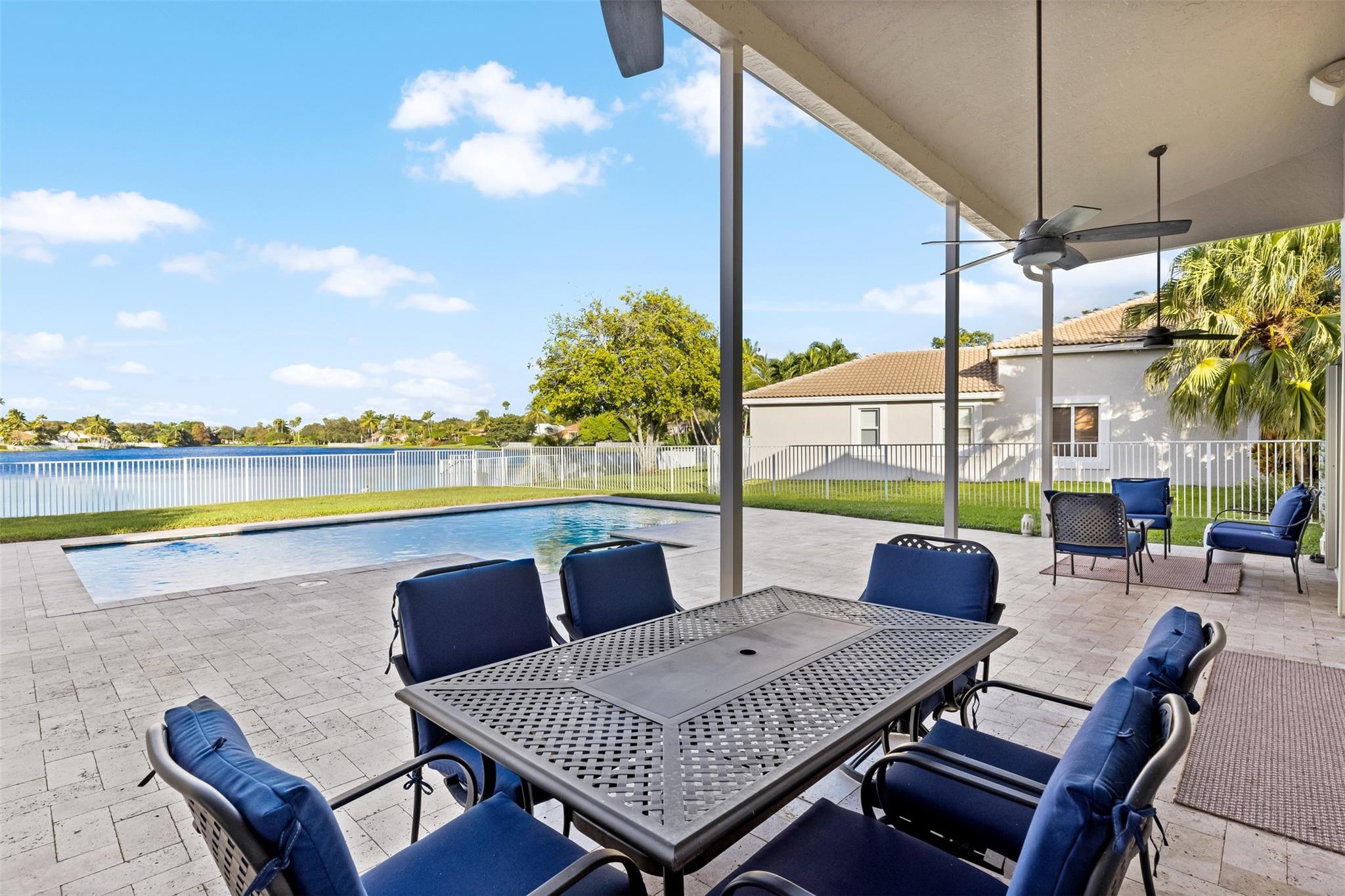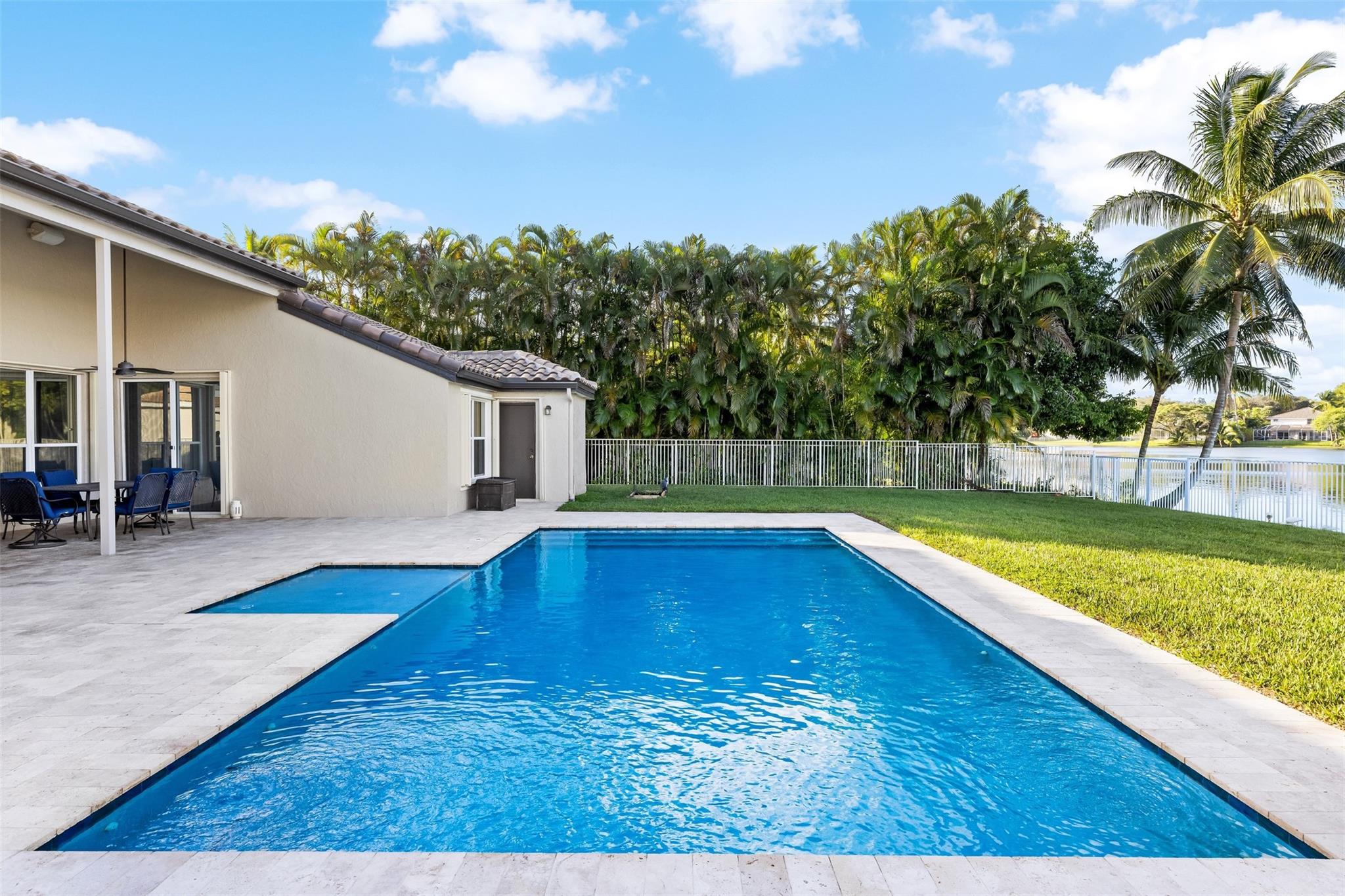 Spectacular lake-front home in The Estates of Embassy Lakes. This home is positioned with long water views on the lake and beautiful sunsets in the evening. The roof was replaced in 2022, new pool was installed in the last few years with a large travertine deck, sun-deck and bubbler, fully-fenced yard, renovated kitchen, new electric panel, wood floors, renovated primary-suite bathroom, indoor and outdoor Sonos speakers, partial impact windows, accordion shutters, 3-car garage and more. Come and see for yourself the manicured neighborhood of Embassy Lakes and this meticulously maintained home in The Estates. Full-time security and guard-gate.