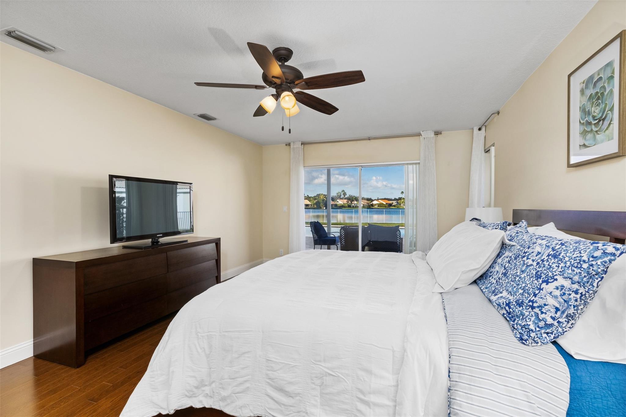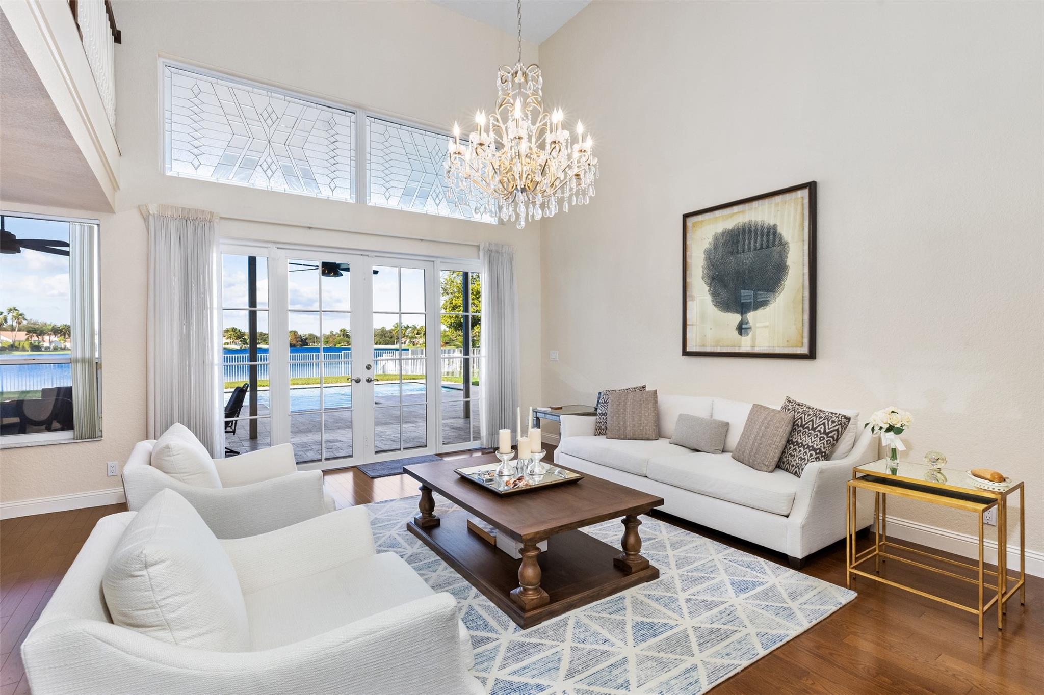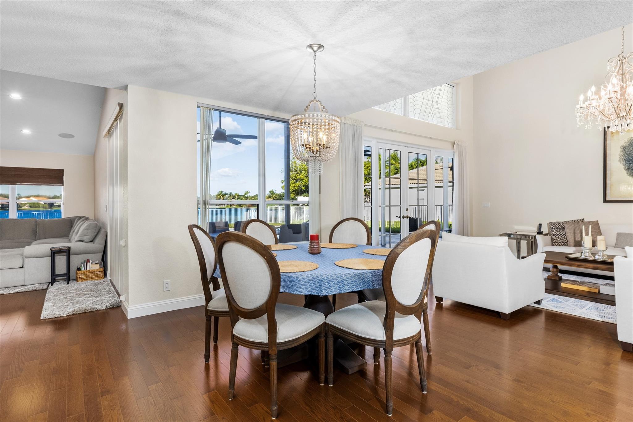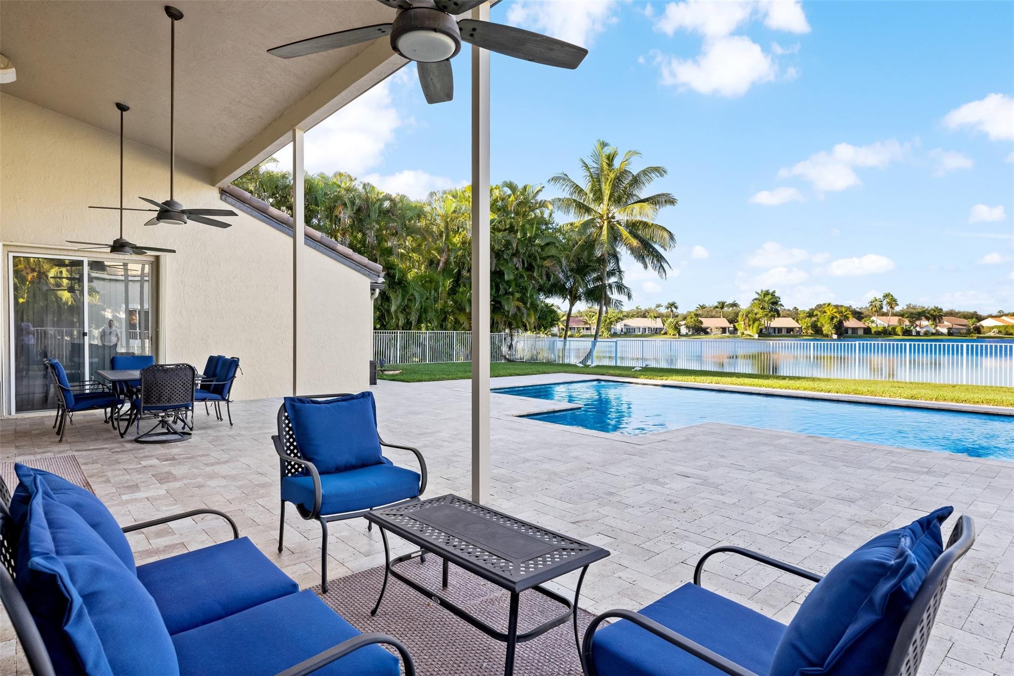 Spectacular lake-front home in The Estates of Embassy Lakes. This home is positioned with long water views on the lake and beautiful sunsets in the evening. The roof was replaced in 2022, new pool was installed in the last few years with a large travertine deck, sun-deck and bubbler, fully-fenced yard, renovated kitchen, new electric panel, wood floors, renovated primary-suite bathroom, indoor and outdoor Sonos speakers, partial impact windows, accordion shutters, 3-car garage and more. Come and see for yourself the manicured neighborhood of Embassy Lakes and this meticulously maintained home in The Estates. Full-time security and guard-gate.