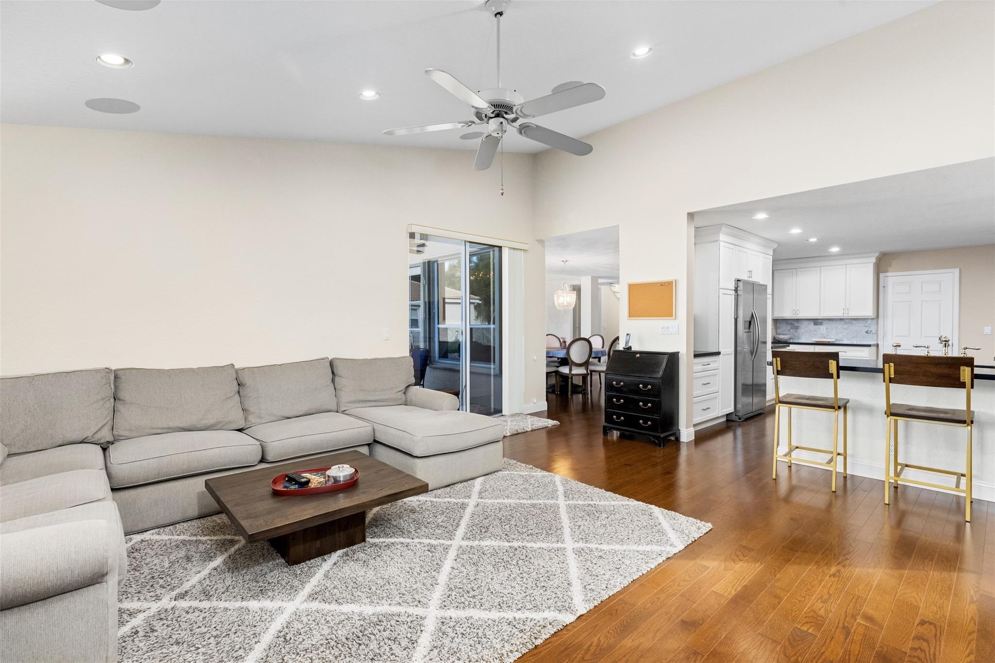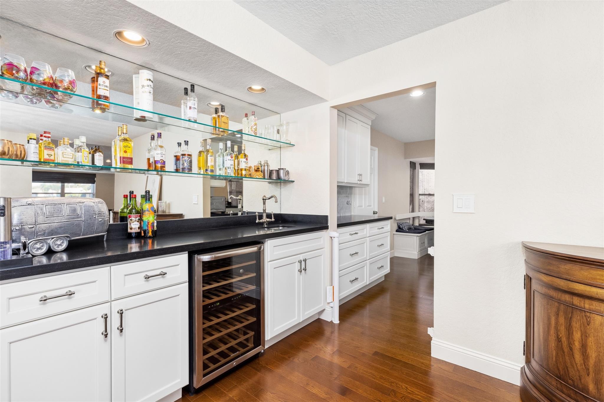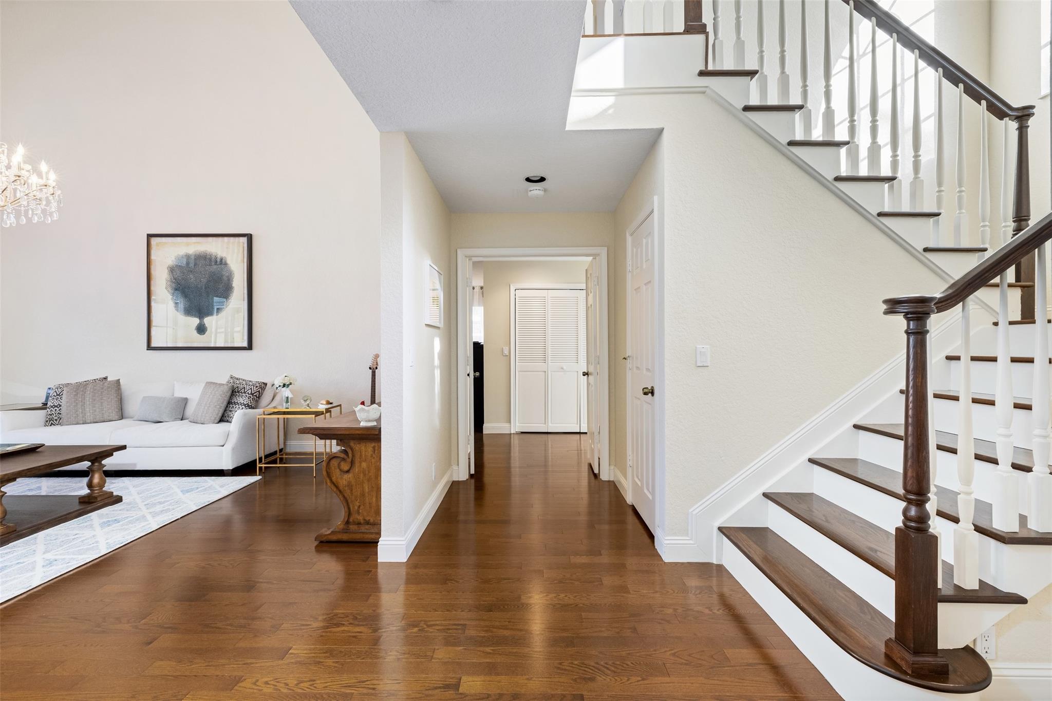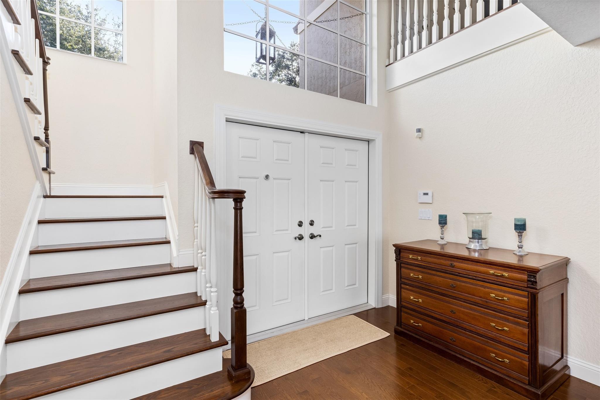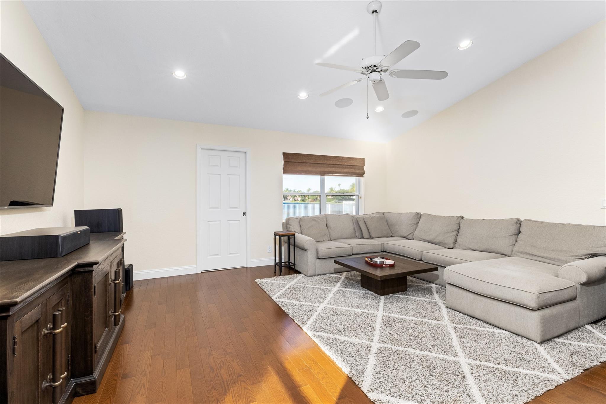 Spectacular lake-front home in The Estates of Embassy Lakes. This home is positioned with long water views on the lake and beautiful sunsets in the evening. The roof was replaced in 2022, new pool was installed in the last few years with a large travertine deck, sun-deck and bubbler, fully-fenced yard, renovated kitchen, new electric panel, wood floors, renovated primary-suite bathroom, indoor and outdoor Sonos speakers, partial impact windows, accordion shutters, 3-car garage and more. Come and see for yourself the manicured neighborhood of Embassy Lakes and this meticulously maintained home in The Estates. Full-time security and guard-gate.