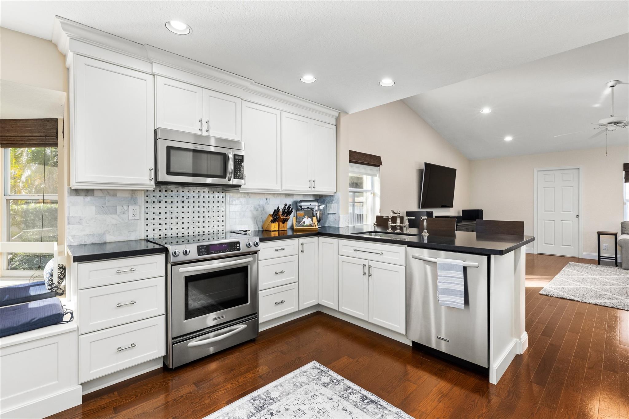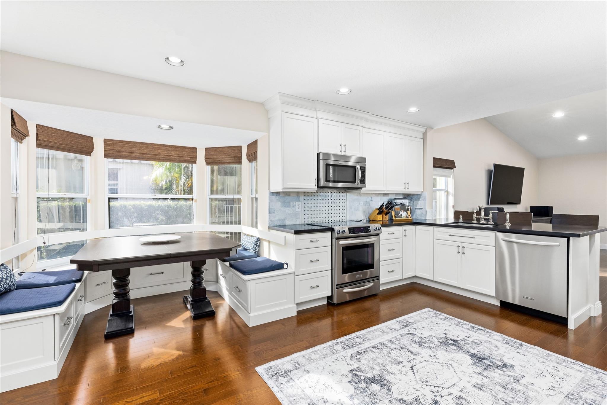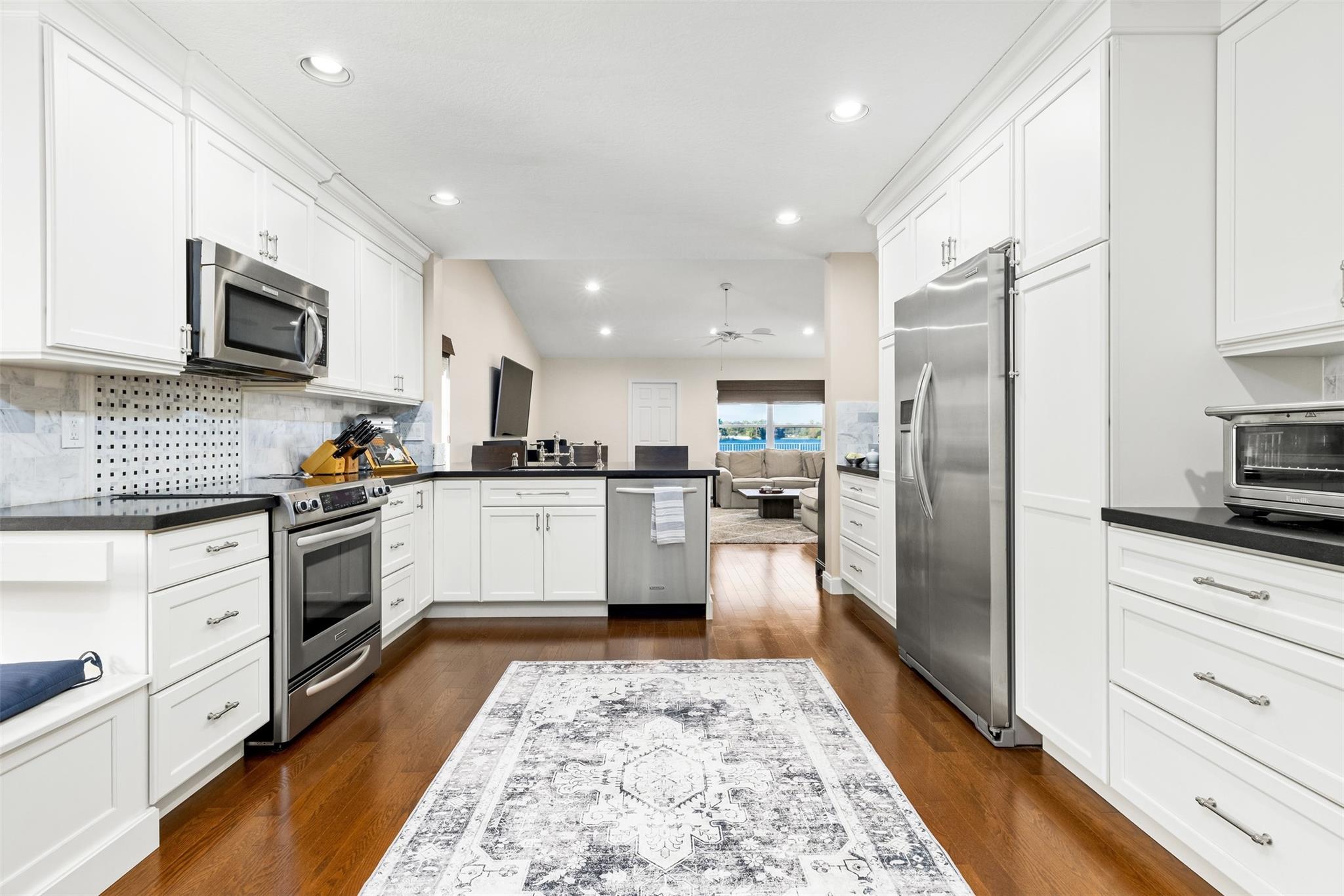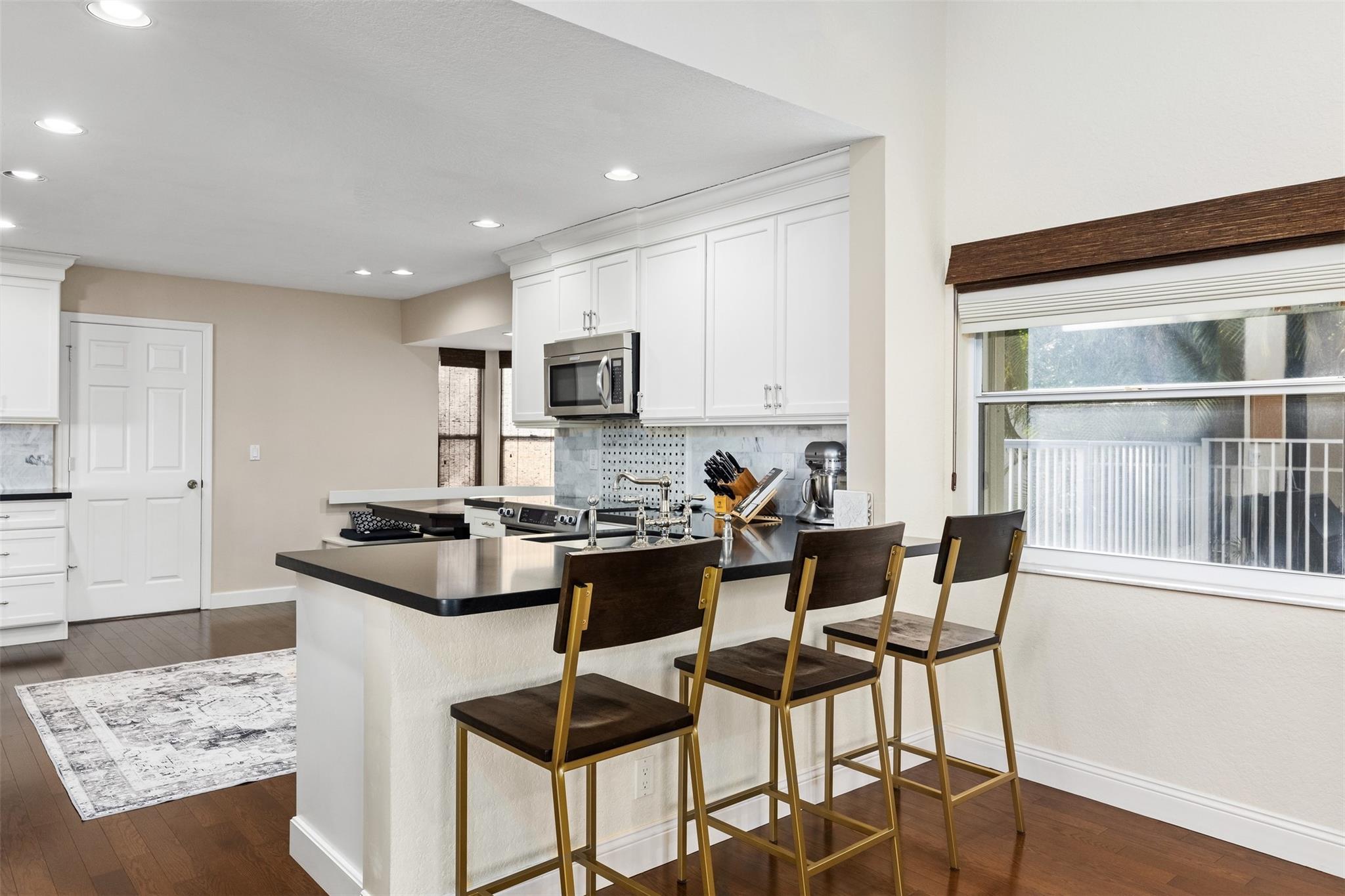 Spectacular lake-front home in The Estates of Embassy Lakes. This home is positioned with long water views on the lake and beautiful sunsets in the evening. The roof was replaced in 2022, new pool was installed in the last few years with a large travertine deck, sun-deck and bubbler, fully-fenced yard, renovated kitchen, new electric panel, wood floors, renovated primary-suite bathroom, indoor and outdoor Sonos speakers, partial impact windows, accordion shutters, 3-car garage and more. Come and see for yourself the manicured neighborhood of Embassy Lakes and this meticulously maintained home in The Estates. Full-time security and guard-gate.