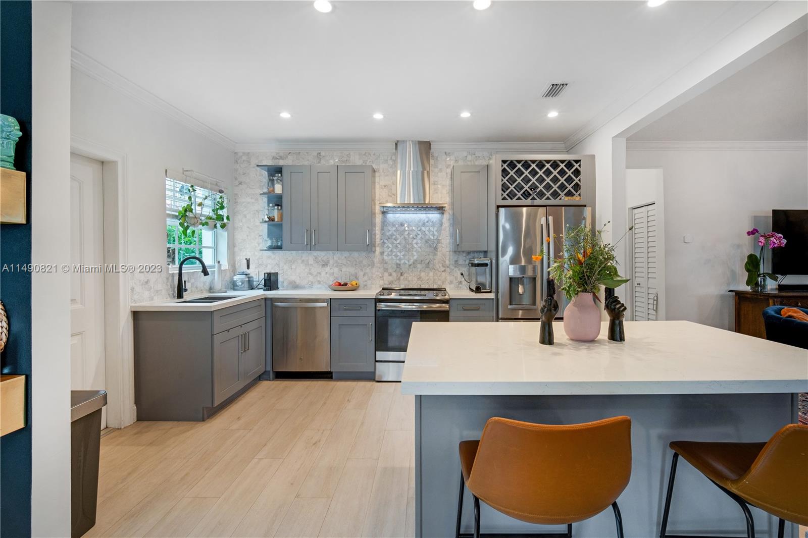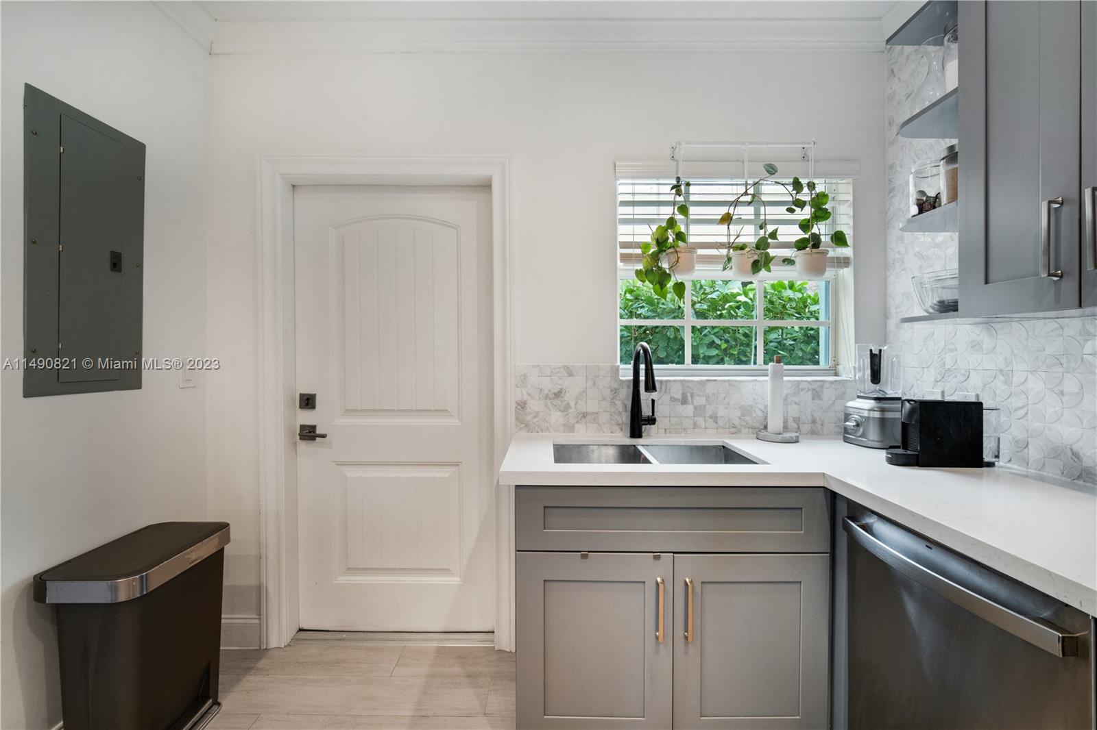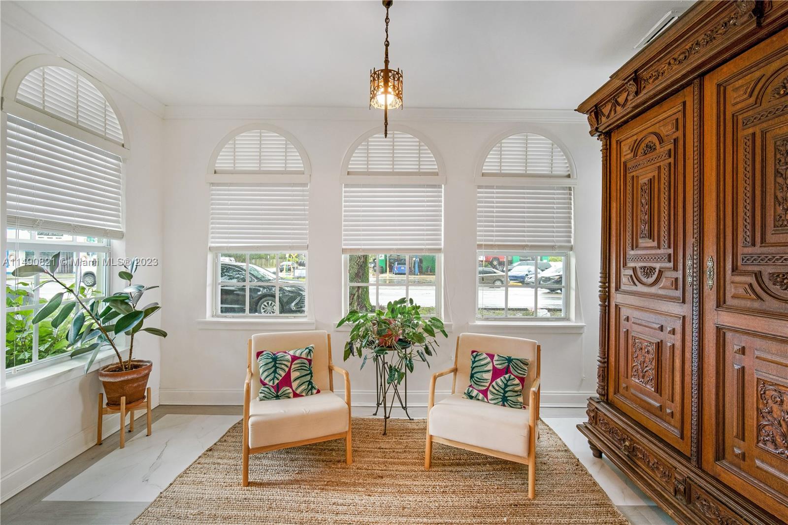 Experience timeless elegance in this fully updated Coral Gables classic. This 1925 Spanish-style bungalow features 2 beds & 2 baths with tasteful, modern finishes throughout. The updated kitchen is paired with a light-filled foyer and large living area with fireplace to create open floor plan. Gut-renovated in 2021, with full renovations to the subfloor, plumbing, and electrical systems while adding impact windows/doors. The silicone roof coating measurably reduces energy use and provides added protection against leaks. The backyard features lush landscaping for privacy, tropical fruit trees and raised beds for gardening. A prime location steps away from the beautiful Country Club Prado, Biltmore Hotel, Granada golf course, Riviera Country Club, and Miracle Mile shopping/restaurants.