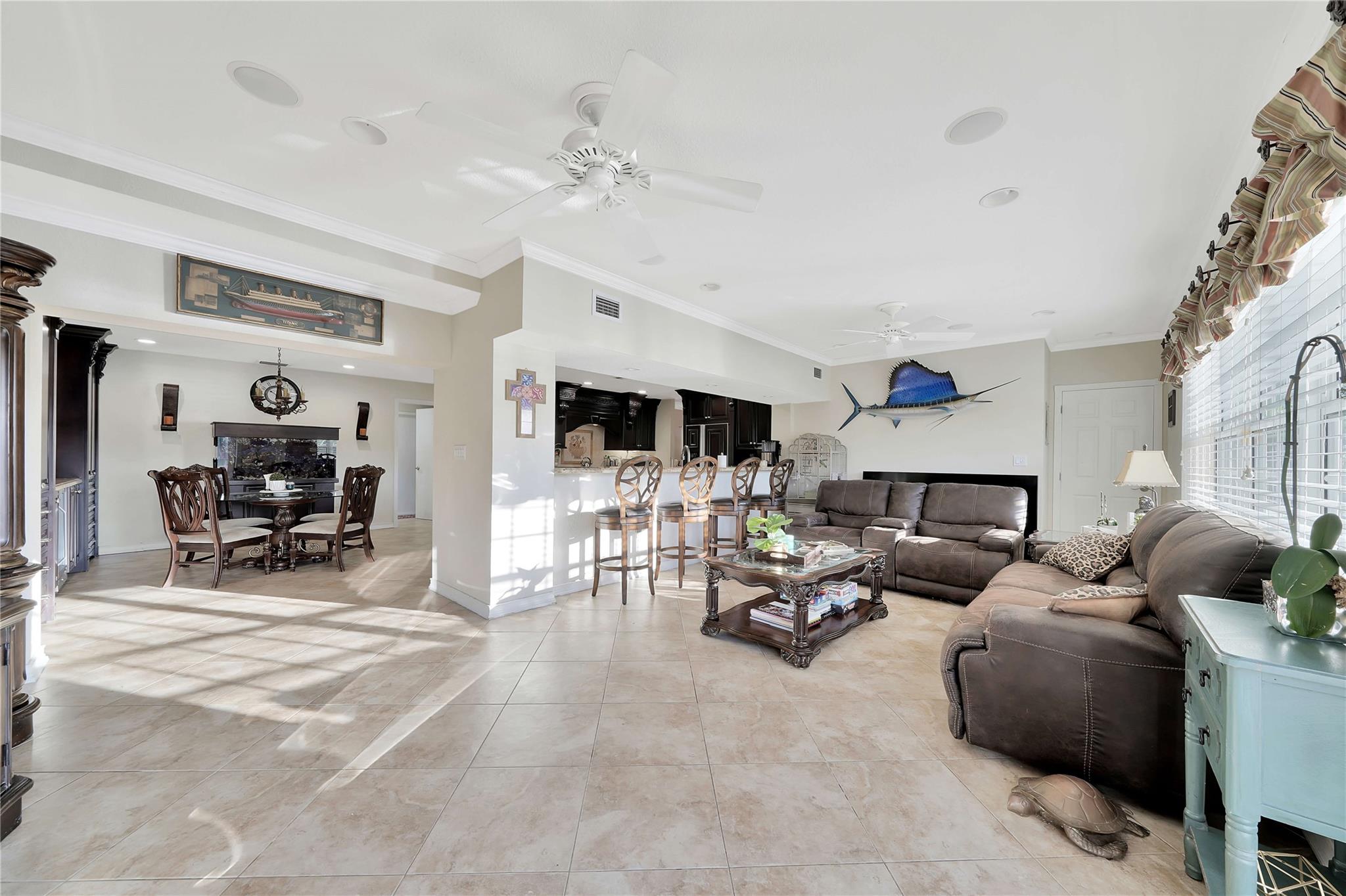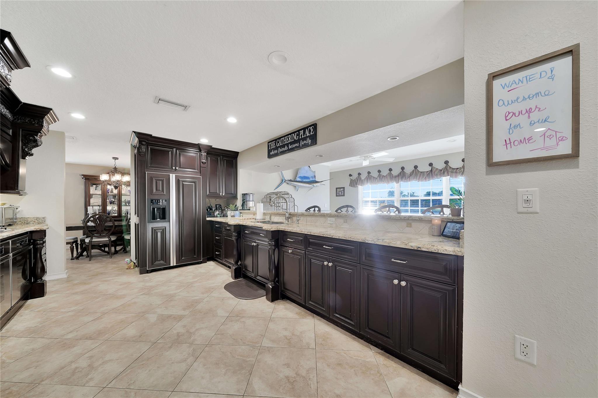 Awesome, Affordable Home in Sawgrass Estates! FIVE (5) bedroom waterfront home w/ room for all. Mayberry-style curb appeal greets you w/ covered porch & doorbell. High ceilings create a bright & inviting atmosphere. Gorgeous custom kitchen is fit for a king & queen! Custom wood cabinetry extends to eat-in area w/ glass-paned cabinets, natural stone buffet countertop, under-counter lighting, wine cooler and tons of other features. Enlarged to 2400 SQFT to make room for a sunny family room overlooking expansive waterway plus a full bedroom. Guest bath downstairs, 4 spacious bedrooms & 2 full baths upstairs. Ensuite & walk-in closet in primary. Dedicated laundry, 2-car garage, pavered driveway & back patio, complete your new dream home! Walk to community pool. Pet friendly neighborhood.