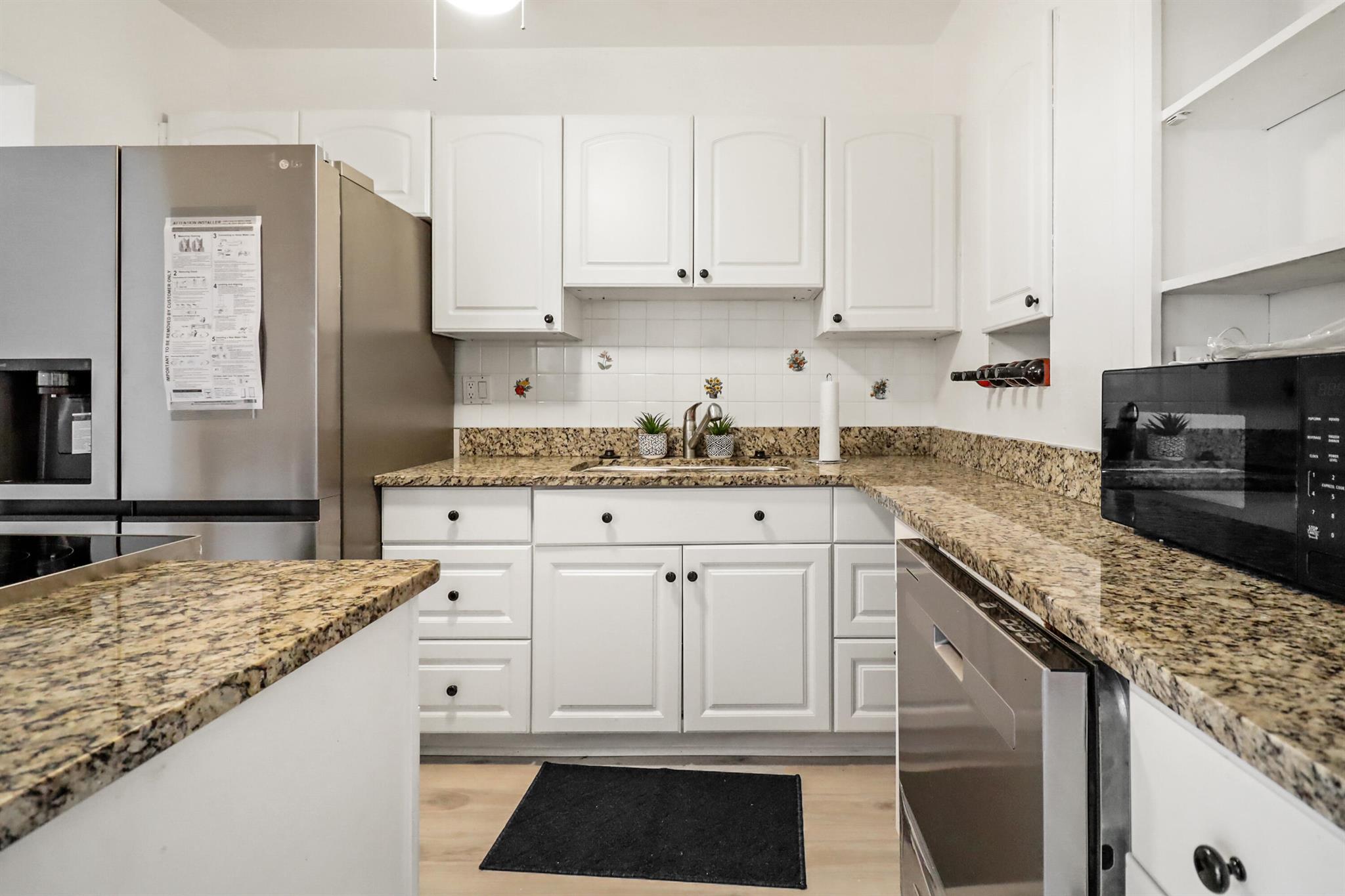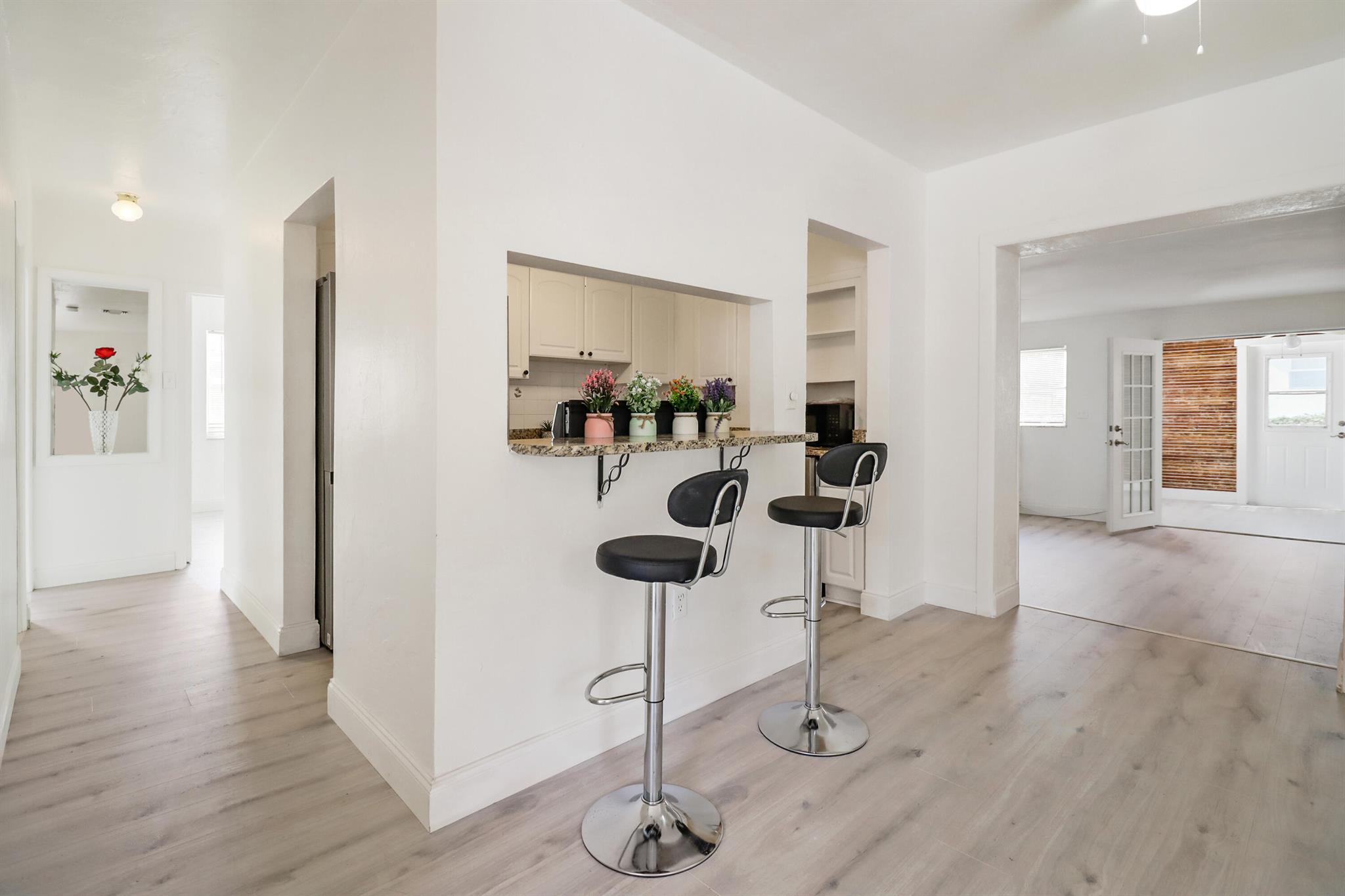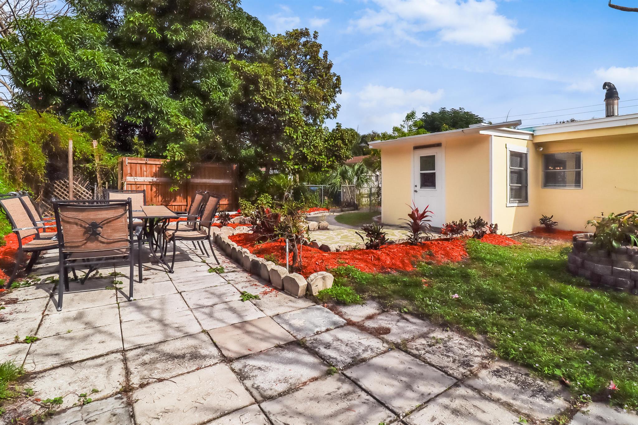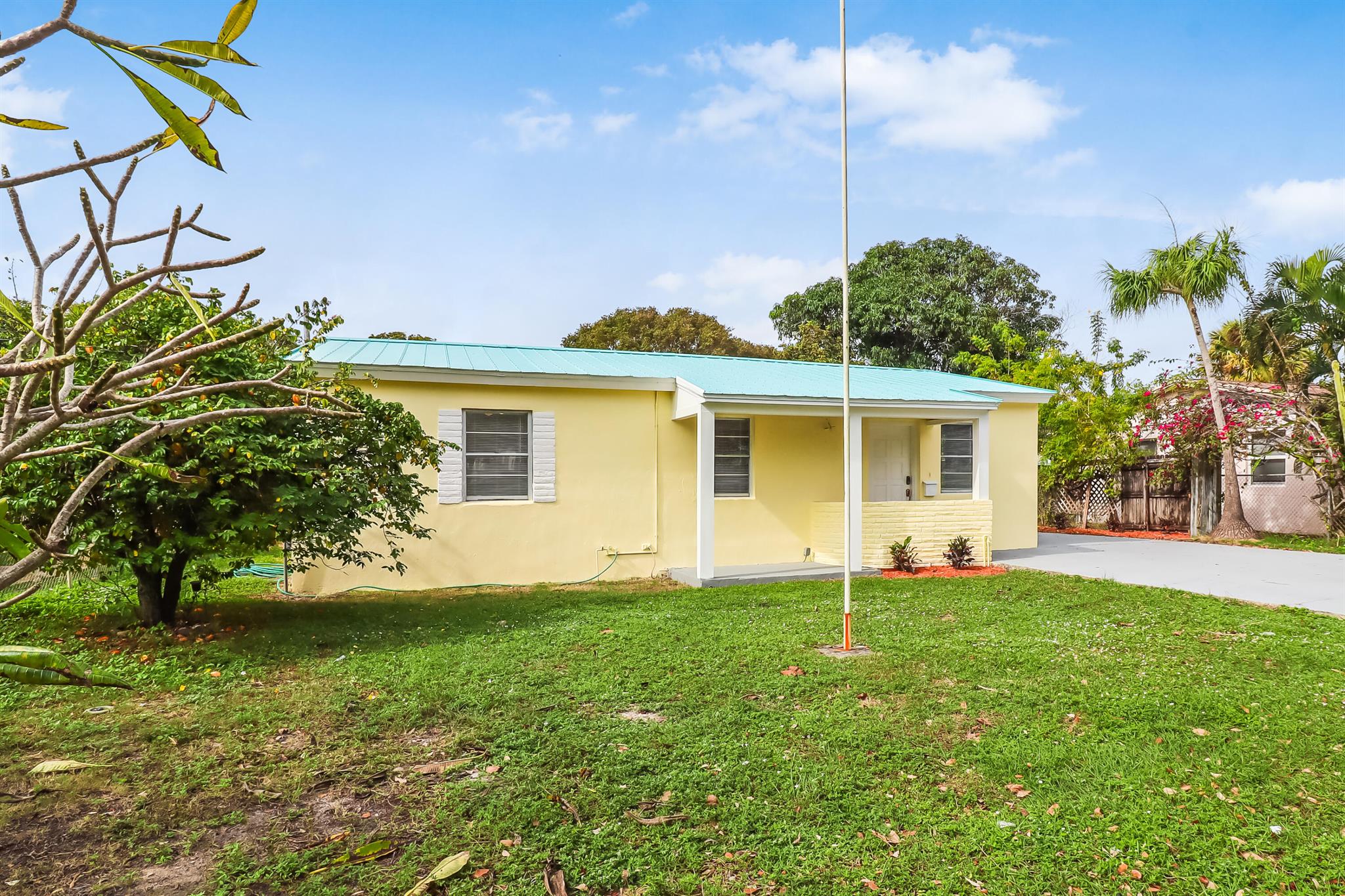 Welcome to your dream home just south of the vibrant Rosemary Square and downtown West Palm Beach! Step inside to discover a charming 4-bedroom, 2-full bathroom residence with brand new floors, sleek granite counters, and stainless steel appliances in this partially open kitchen, creating an inviting atmosphere for family gatherings and entertaining. The home boasts a family room/den with a vintage chimney, adding a touch of character and warmth. Picture cozy evenings spent by the fireplace or lazy Sunday afternoons with loved ones. The property is complemented by a huge fenced-in yard, providing ample space for outdoor activities, A POOL, gardening, or simply unwinding in the Florida sunshine. Convenience is key with a long driveway, ensuring plenty of parking space for residents and