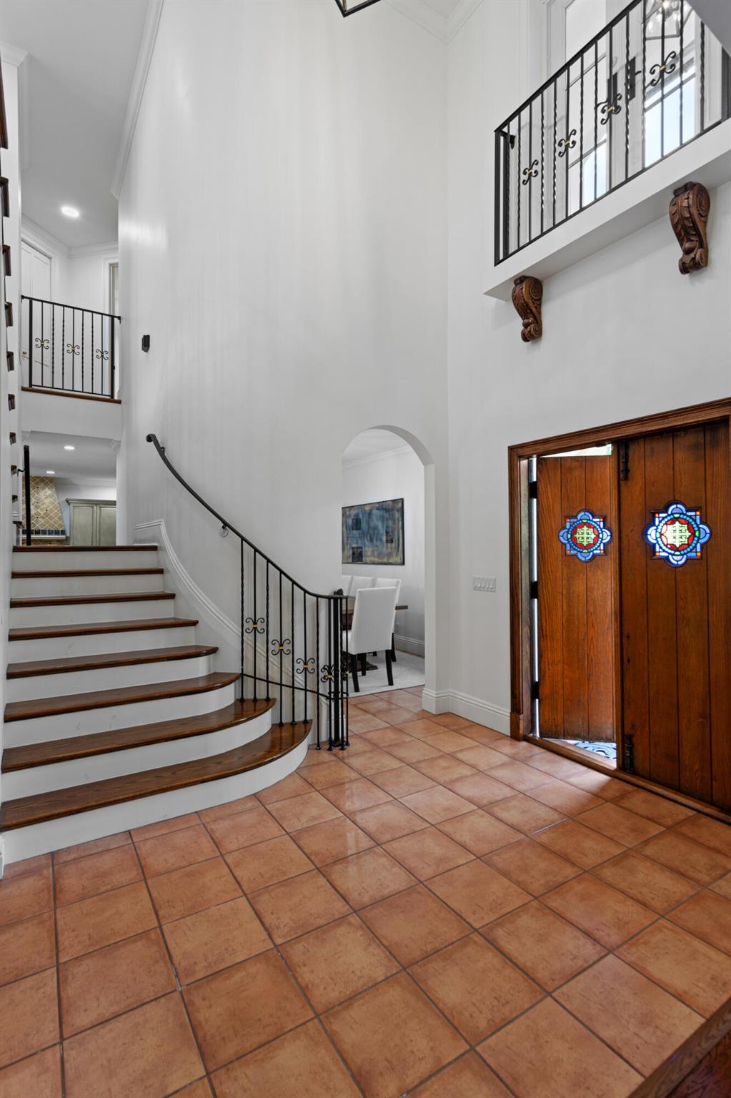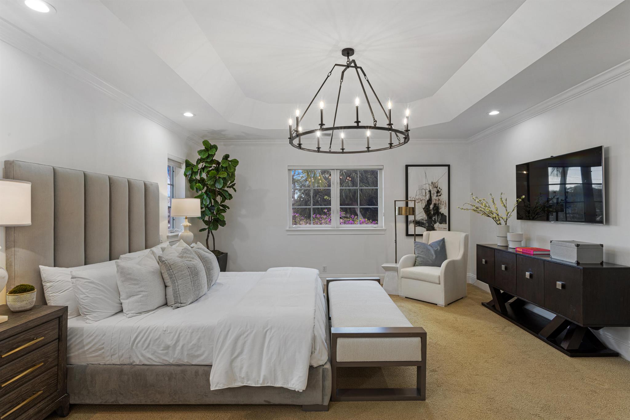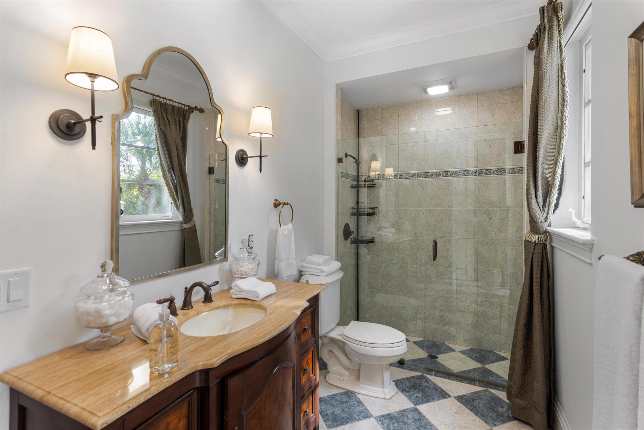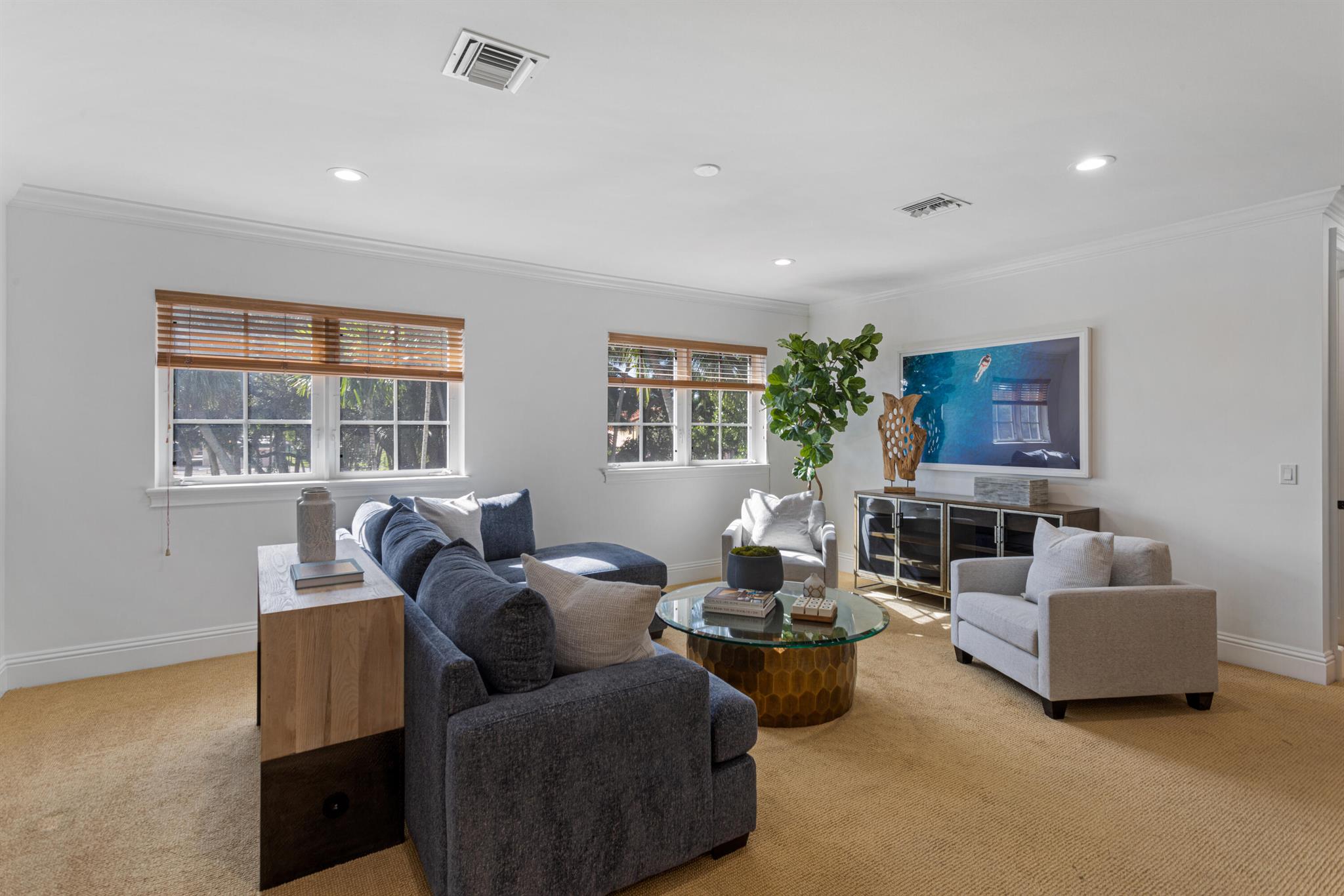 In a privately treed garden setting, this transitional jewel fluently captures Addison Mizner's classic style. Pecky cypress corbels and beams, barrel tile roof, copper gutters, Spanish-tiled fountain, antiqued brick walkways, and columned loggia. A monumental outdoor fireplace anchors the brick-inlaid Portuguese limestone patio around the beautiful fountained pool with swim shelves all controlled by a Jandy automated pool operating system. A summer kitchen and built-in professional DACOR gas grill allow alfresco dining under the coconut palms and chandelier lit loggia/patio.