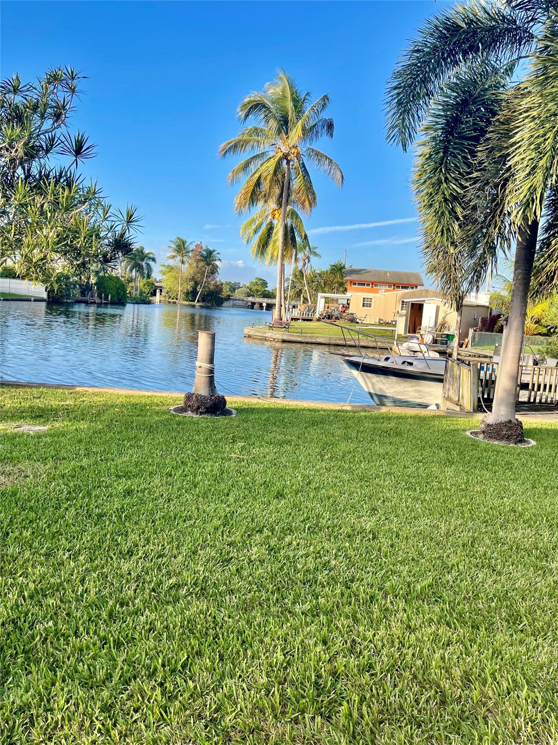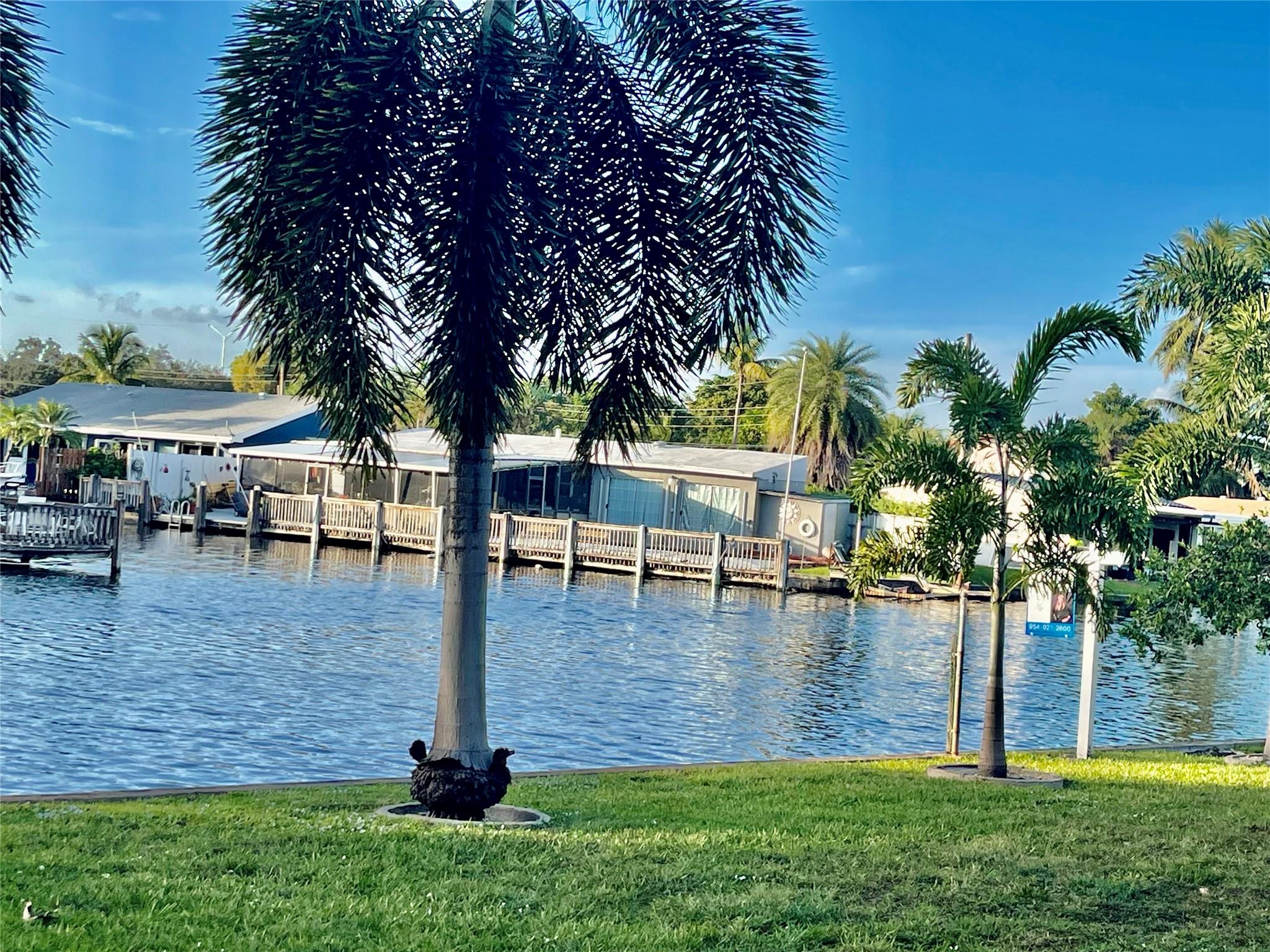 A serene hidden gem located on a cul di sac dead end street surrounded by water. Very private setting there is one dock currently but you could have another. House was a 3 bedroom one bath converted to a 2 bedroom 2 bath. Kitchen was remodelled with gorgeous Thomasville wood cabinets in abundance, stainless steel appliances, large living room with exta cabinets and wine cooler. The two bathrooms have been totally remodelled, master has a extra large shower. A huge Florida room with an attached screened in patio on one side and a huge patio on the other. Both with wonderful water views. Impact windows is a major plus. A storage shed also. This location is ocean access w/ fixed bridges 13 ft. Alarm system, newer plumbing and electric A/C 2018, New compressor with warranty. This is a must see