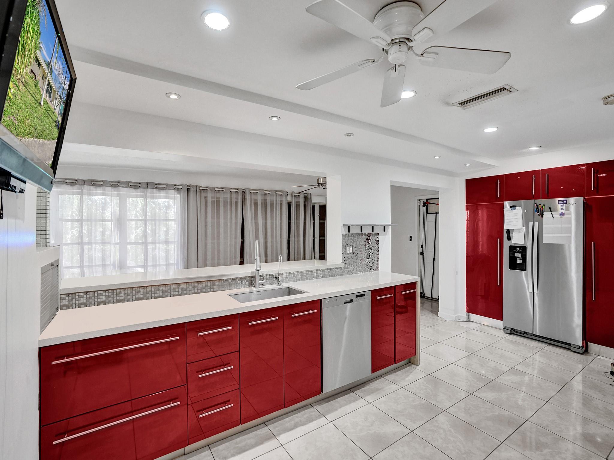 Exquisite water-view residence updated to the MAX! This charming single-family home in Sunrise Golf Village boasts 2 bedrooms and 2 baths, with an additional 3rd bedroom conversion in the attached 1-car garage, complete with a closet for added convenience. No HOA! The home has been meticulously updated, featuring a new roof, and impact windows. The modern kitchen is equipped with stainless steel appliances, perfect for entertaining guests. Generously sized driveway, allowing for multiple vehicles. The master bath has been tastefully remodeled to enhance comfort and luxury. A separate room is dedicated to the convenience of a washer and dryer. Step outside to a fenced backyard that faces the water, offering a tranquil retreat.