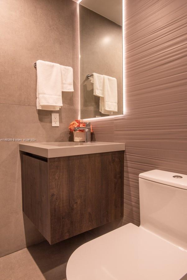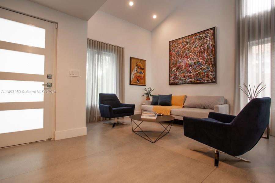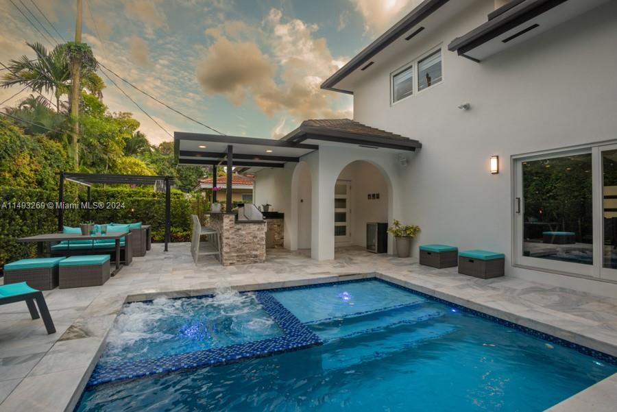 It is a stunning two-story home with a Pool & SPA— The property is fully remodeled with high-end materials. It is an open floor plan with a 3/3 plus a home-office area in the primary bedroom and a climatized 2-car garage with a laundry and extra storage. It has impacted doors and windows. Has a water filter system, a new roof, new electrical wiring, a central vacuum, a tankless water heater, 2 A/C units with new ducts and modern linear vent grills, LED lighting, and an irrigation system with automation. As soon as you walk in you will see a high-ceiling living and dining room with recessed lighting and a modern chandelier, a cozy family room, a full bathroom, and a spacious kitchen.