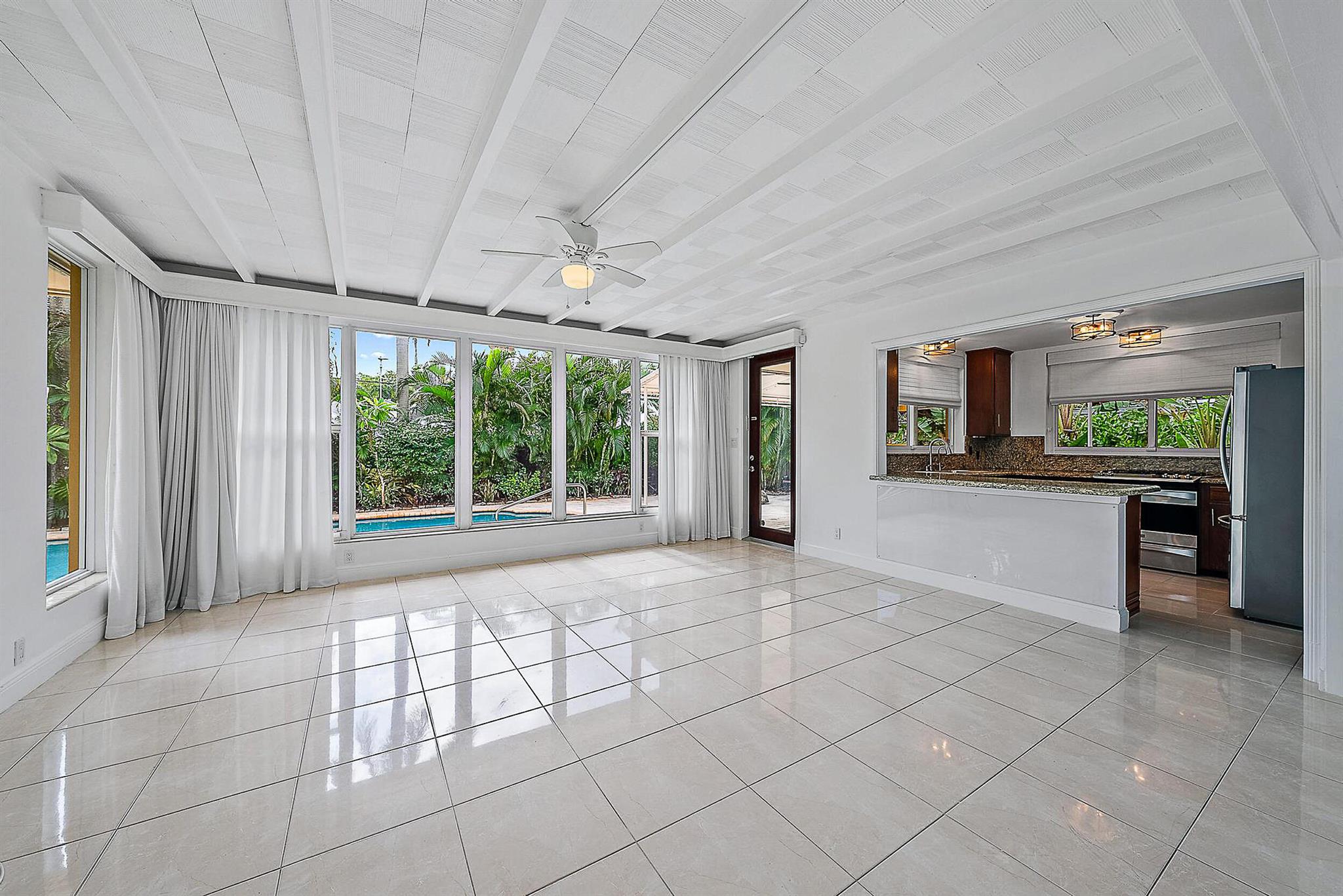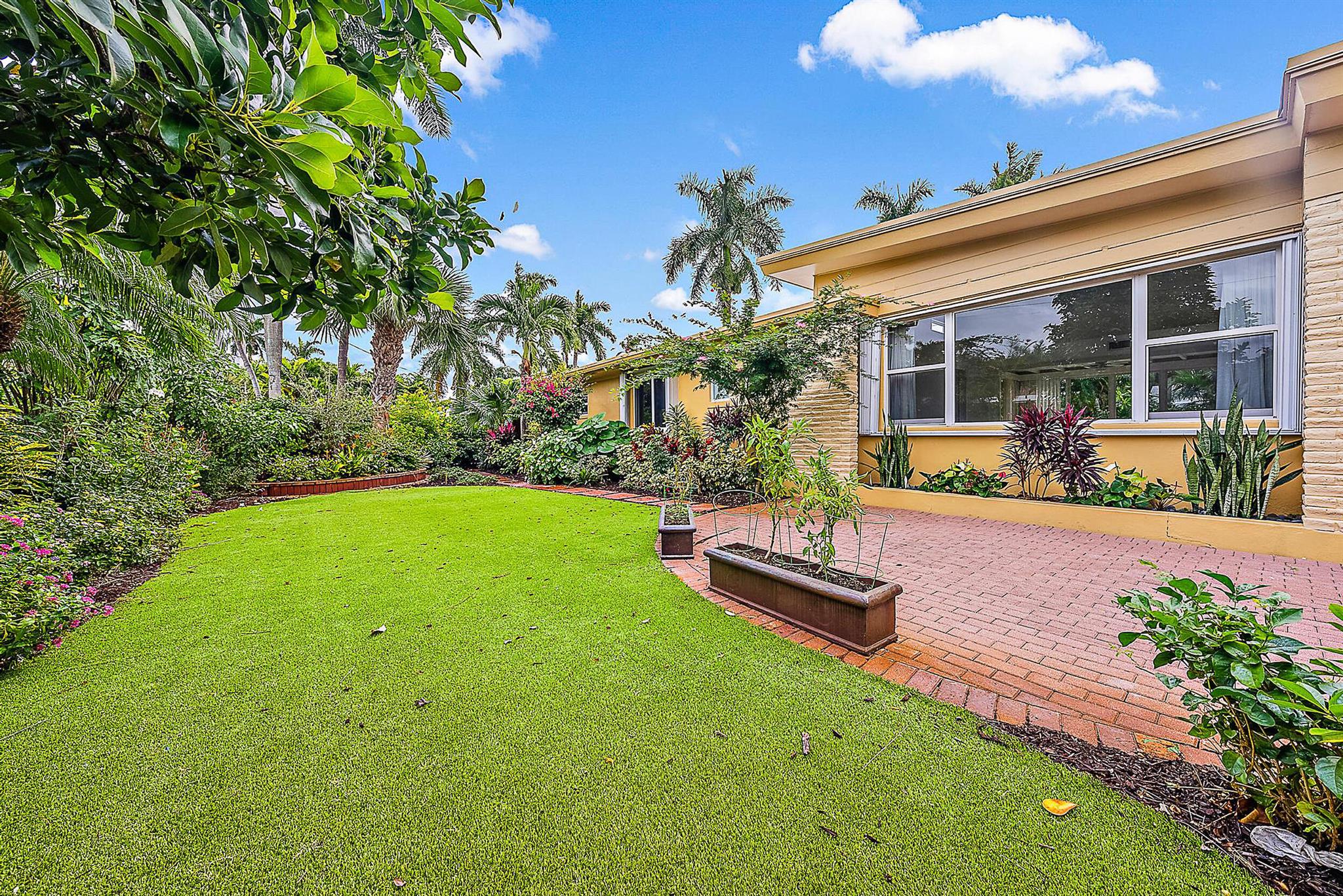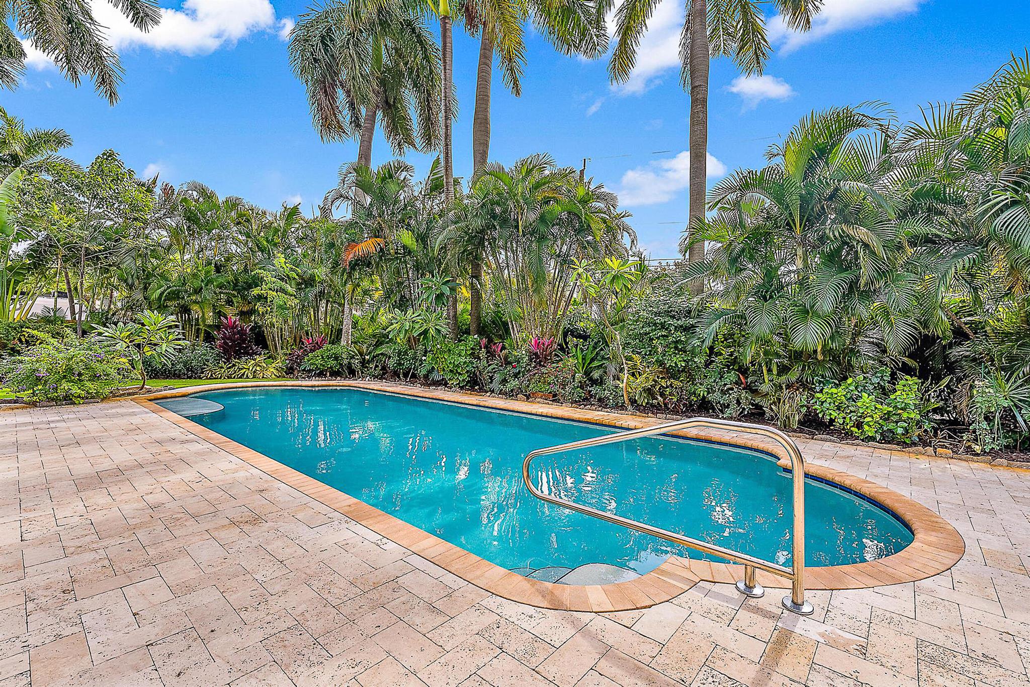 Discover your secluded retreat nestled in the highly coveted Northwood Shores. Beautifully updated 3 bedroom/3 full bath Midcentury Modern home is thoughtfully renovated preserving its original charm. Privacy hedges enclose a huge double lot, a brick paver courtyard warmly welcomes. An elegant foyer w/ impact doors leads to exquisite porcelain tile flooring, & walls of impact windows that bathe the interior in natural light. The gourmet kitchen w/ gas stove, SS appliances, restored original cabinets, & granite counters are an entertainer's delight! Spacious living area, generous sized bedrooms, old-style mudroom w/ laundry complete the indoor layout. Entertaining extends to 2 travertine patios shaded by awnings that overlook a 42-foot pool, exterior lighting, exotic landscaping, & more!