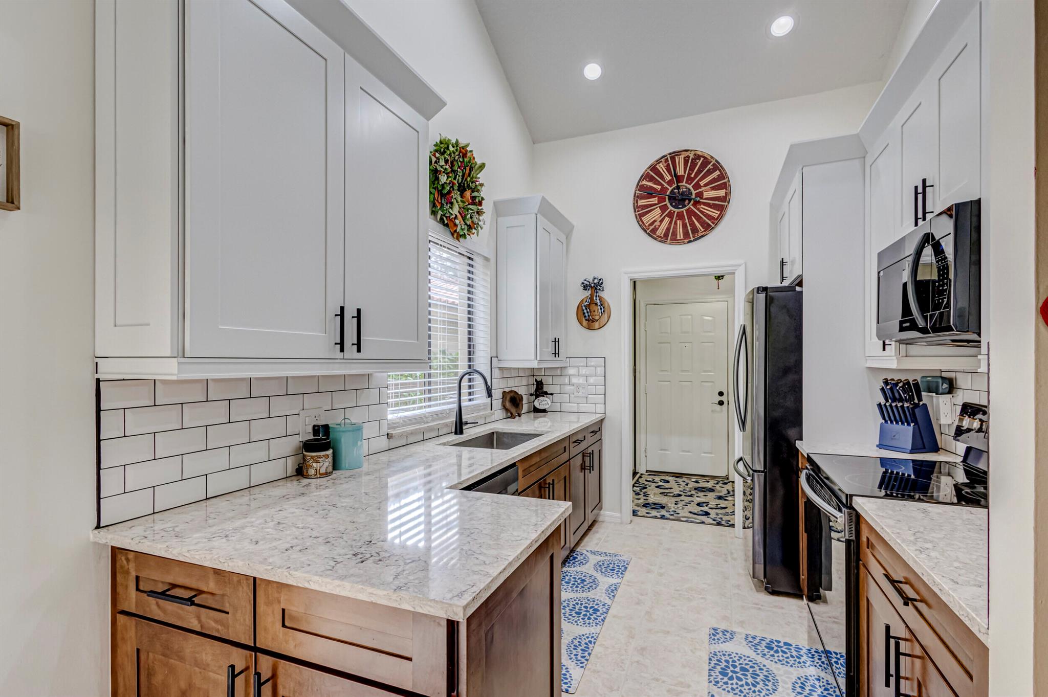 Welcome to Saratoga Pointe! This serene single-family home boasts 3 bedrooms, 2 baths, and a 2-car garage with a plug-in generator. Discover the allure of porcelain tile and new waterproof vinyl flooring, enhancing the open-concept living space with sophistication. Entertain your guests in the covered patio and your private oasis with pool and spa. The kitchen shines with quartz countertops, a new microwave, and a modern laundry area. As evening falls, pocket lights illuminate the ambiance, creating a magical atmosphere. The HOA covers basic cable and front yard lawn care. This meticulously curated residence harmonizes comfort and modern living, offering an inviting sanctuary where every detail caters to contemporary lifestyle. You will love calling this place 'HOME'!