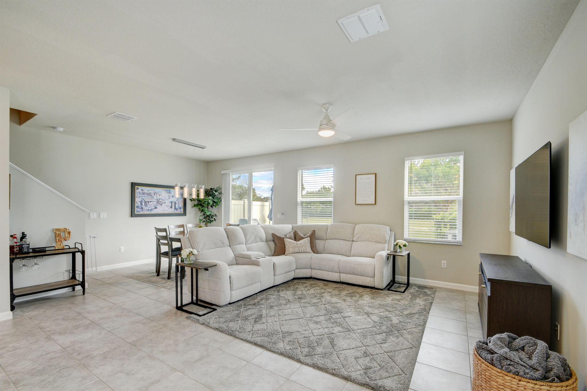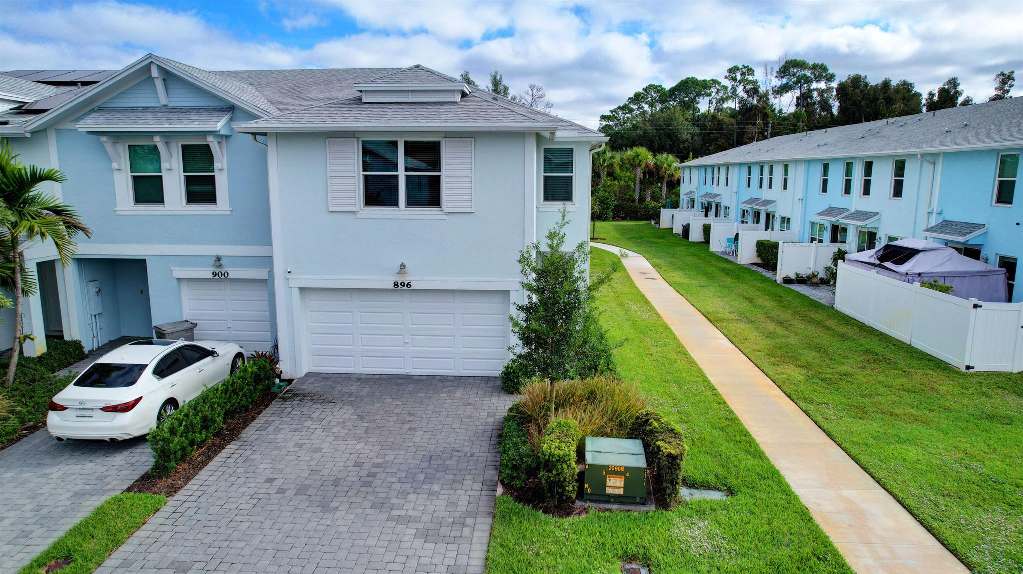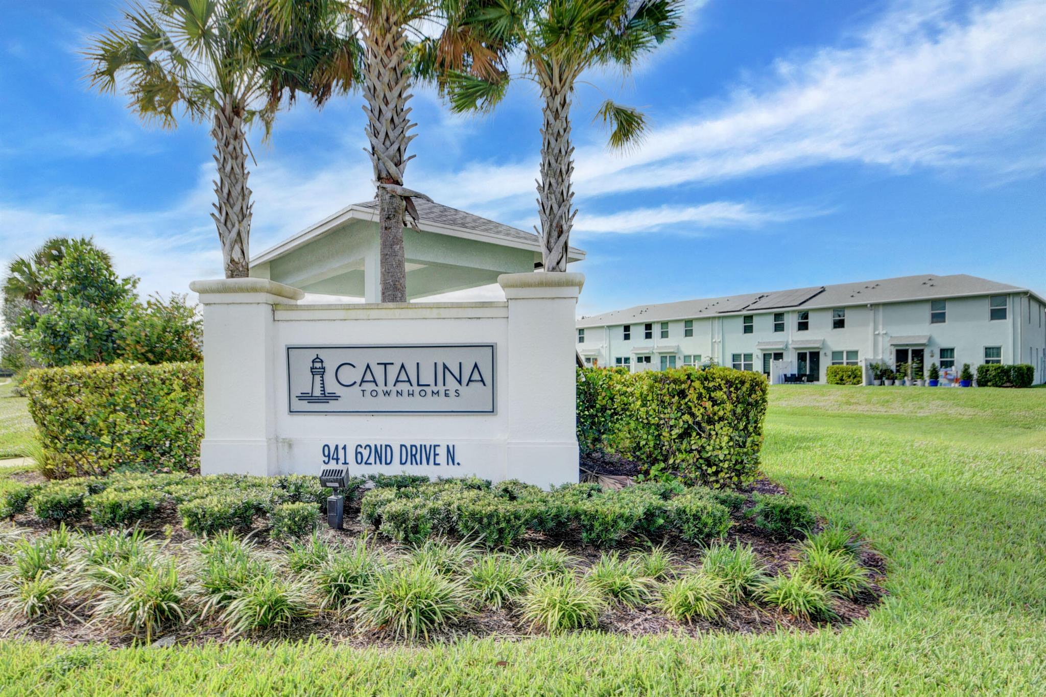 This beautiful townhome features three bedrooms, two and a half bathrooms, a spacious primary bedroom with a walk-in closet, and an open floor plan with a large kitchen island that overlooks the great room and dining area. The upstairs loft area is the perfect space to unwind after a long day and the two-car garage provides all the storage space you will need. Corner lot with an extended patio and beautiful landscaping. Energy-efficient smart home with AprilAire system, impact windows, and doors. Catalina is an intimate community of lovely townhomes that is conveniently located near Downtown West Palm Beach, the PBI airport and gorgeous beaches. Easy access to the Turnpike and about ten minutes to I-95.