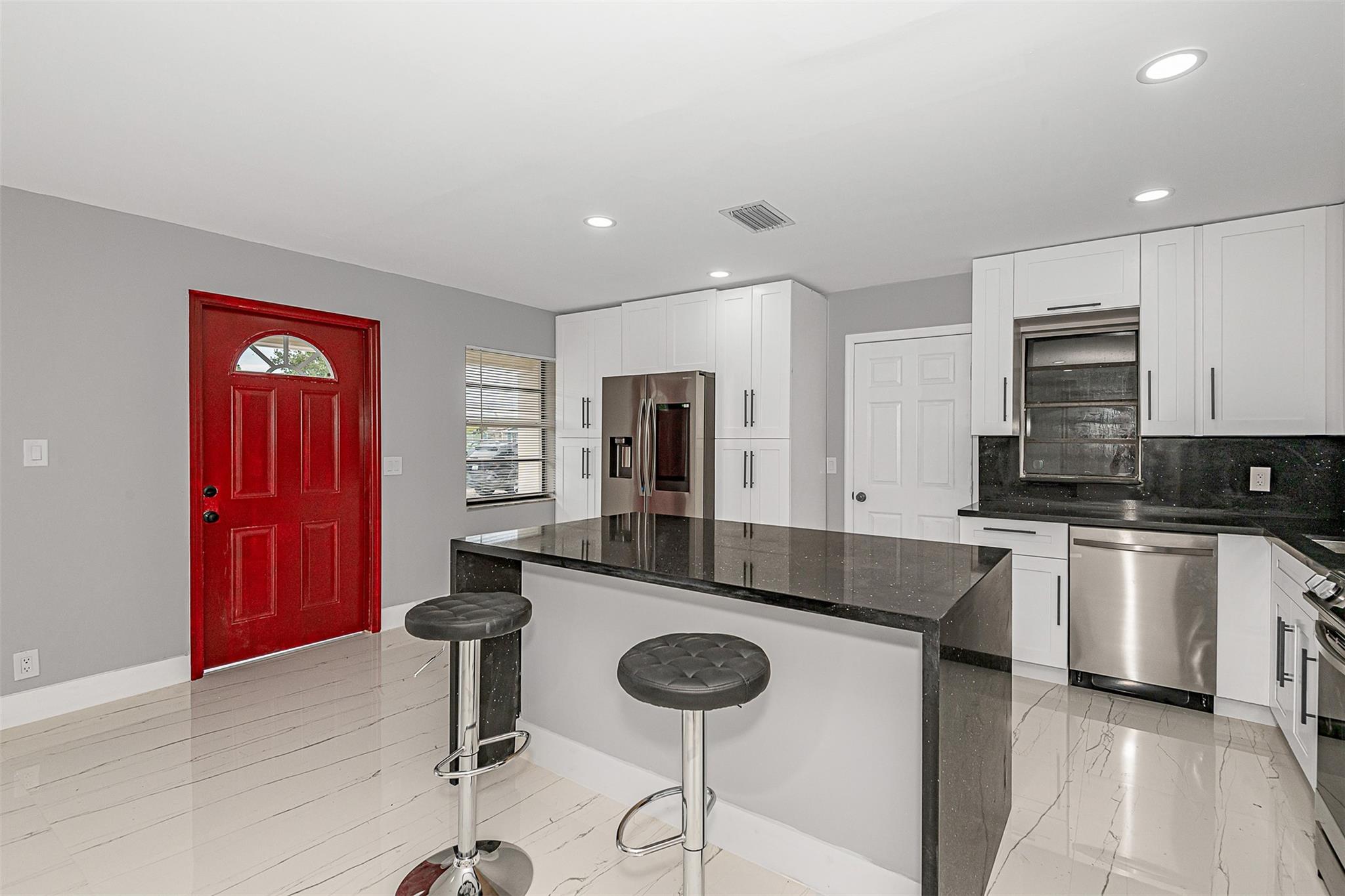 Beautifully Updated 4-Bedroom, 3-Bathroom Home in Pompano Beach with a 2-Car Garage and Built-in Pool. Kitchen is Gorgeous with Quartz Counters and New Cabinets. Open Kitchen with Brand-New Stainless Steel Appliances and a Center Island with Seating Overlooking the Living Room. Split Bedroom Floorplan. Completely Updated Bathrooms. New Flooring Throughout. Two of the Bedrooms are ensuite. BRAND NEW ROOF! Enjoy a Beautiful Swimming Pool and Mangoes from your Back Yard, plus a Storage Shed. No Homeowners Association! Great Location Convenient to 95, Beach and Shopping. Come Take a Look at This One!