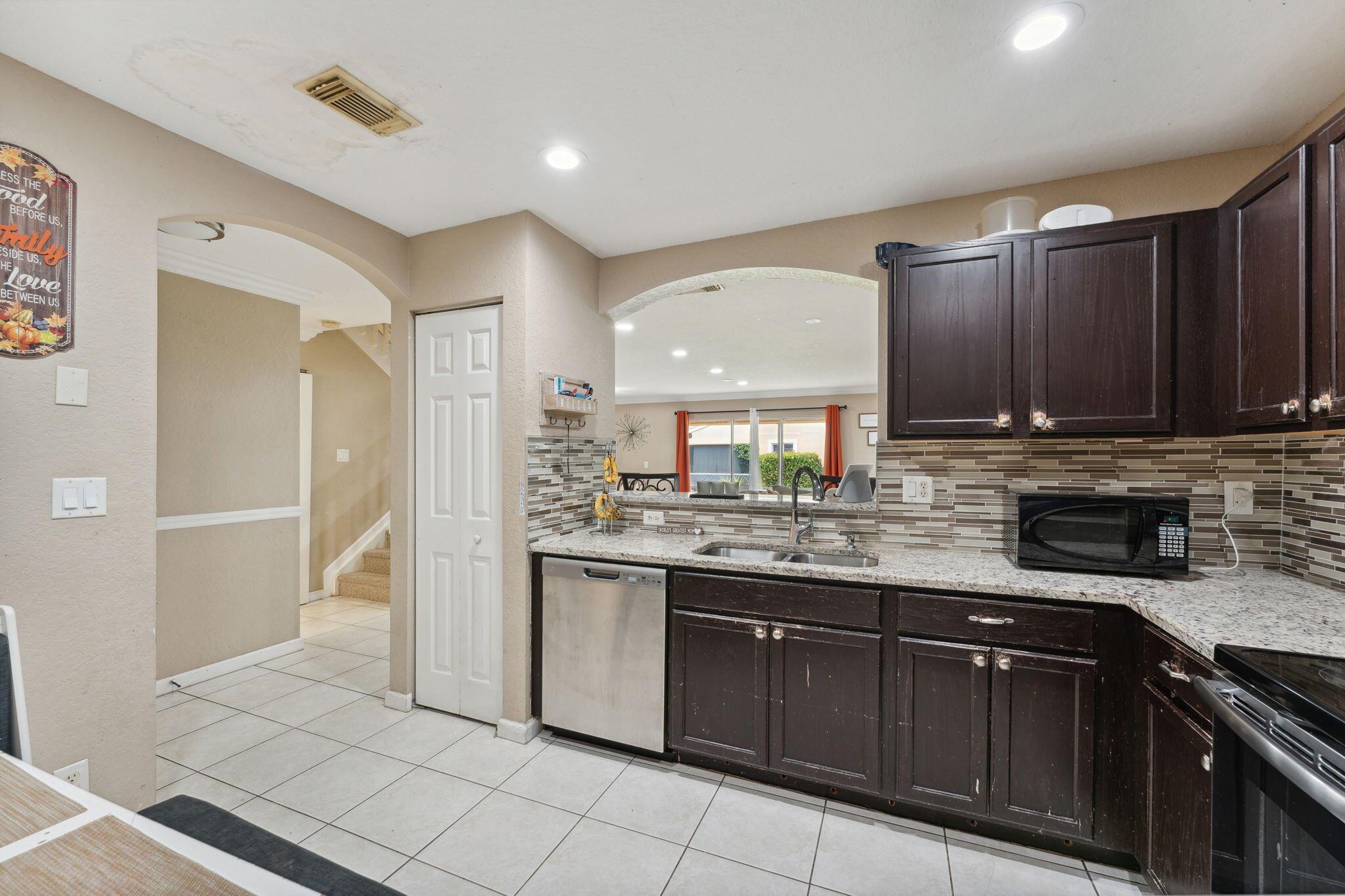 This townhouse is nestled in a secure gated community! 3 bedrooms, 2 1/2-bathrooms, 1-car. This home features tile floors in the first floor and carpet upstairs. Granite counters and stainless appliances in the kitchen. A sliding glass door leads to a screen patio overlooking the lake.