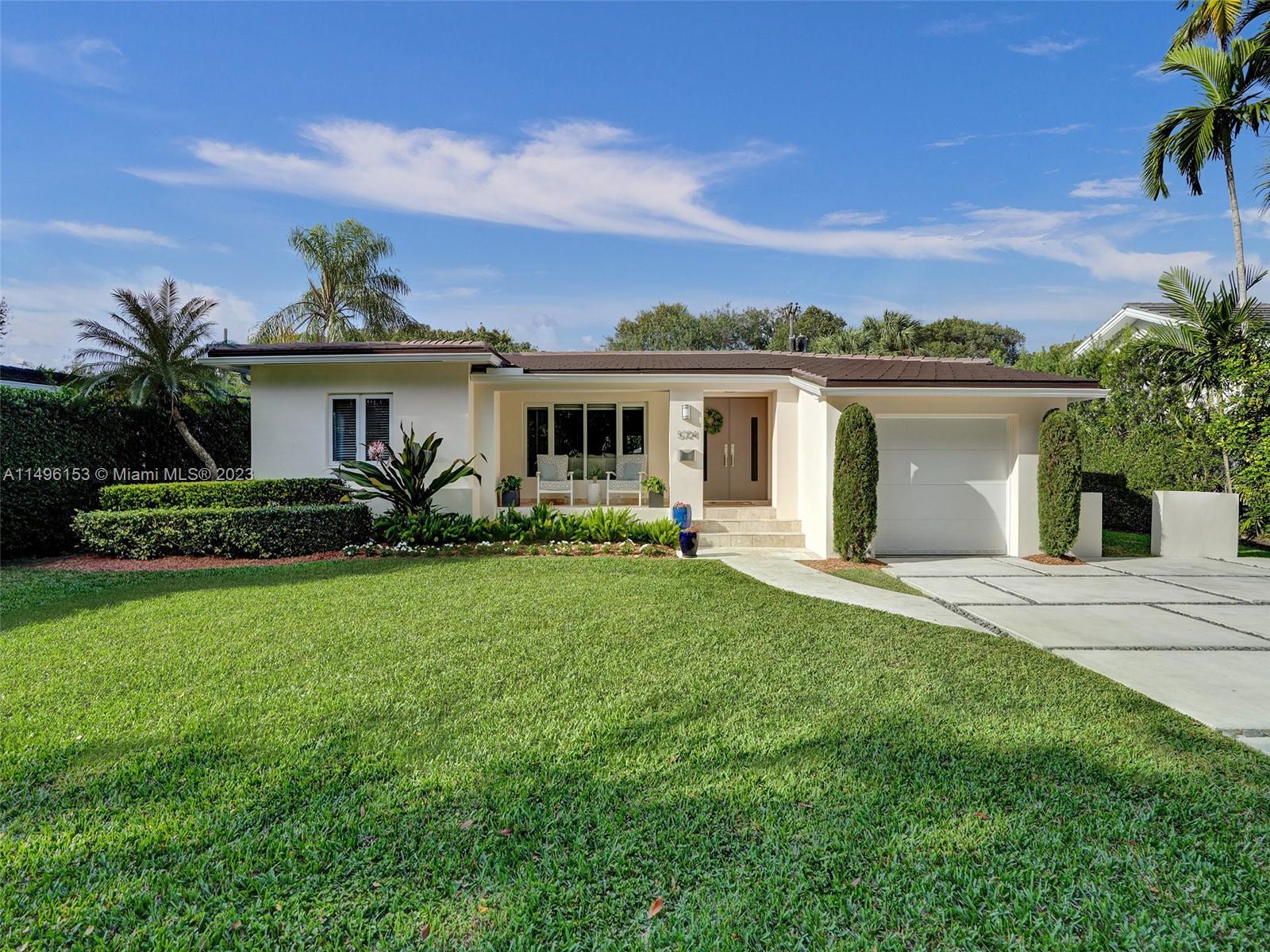 Experience Coral Gables luxury in this meticulously maintained four-bedroom, three-bath home nestled on a tranquil, tree-lined street. Revel in the allure of a 2023 kitchen and appliance upgrade, along with a new roof, exterior paint, newer driveway, AC, and impact windows/doors. This turnkey gem ensures a hassle-free living experience for you in its updated open floor plan. The expansive primary suite features two walk-in closets and a modern en suite bathroom, while the three additional bedrooms offer generous space with built-in closets. Golden oak floors throughout provide a touch of warmth. Private backyard oasis, enclosed by a mature hedge, offering potential for a pool or outdoor kitchen. Conveniently situated between South Miami, Downtown Coral Gables, and Coconut Grove.