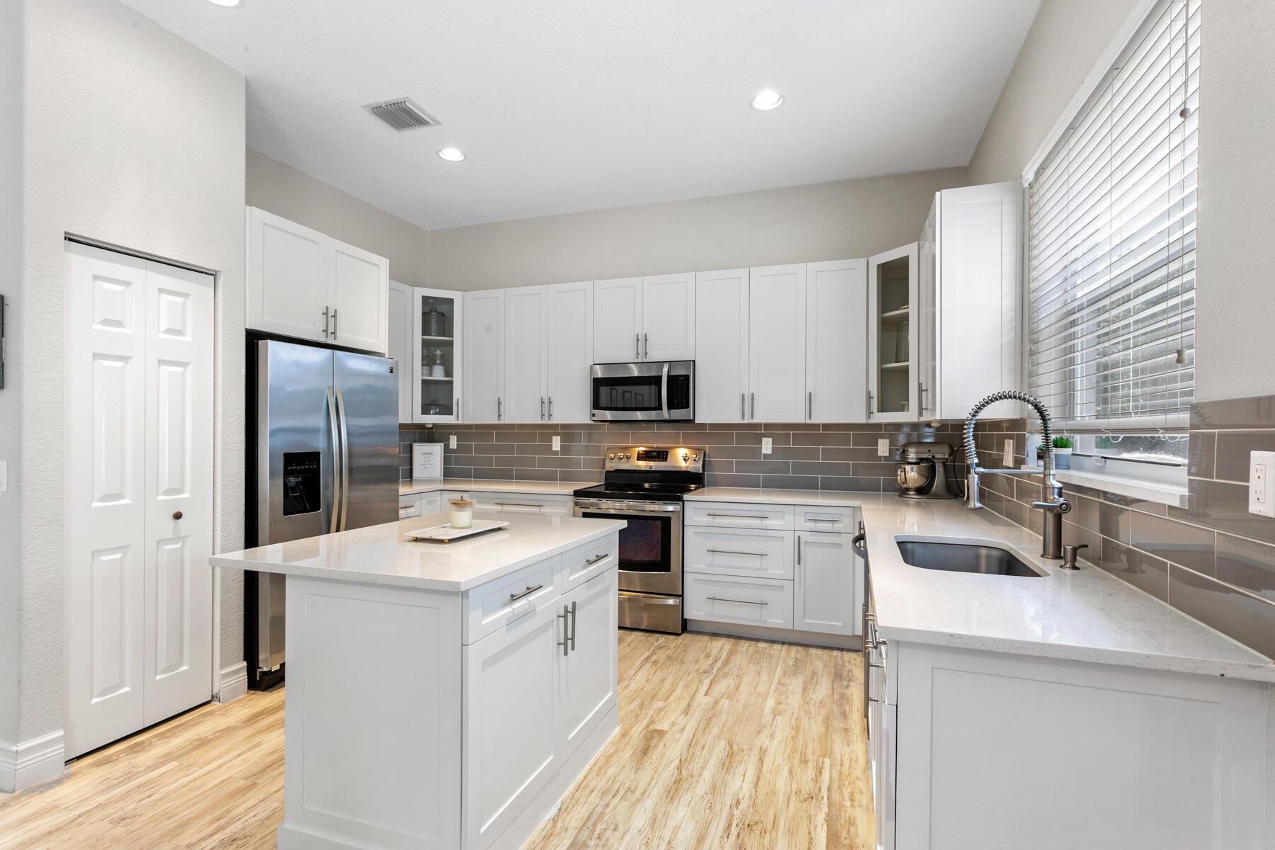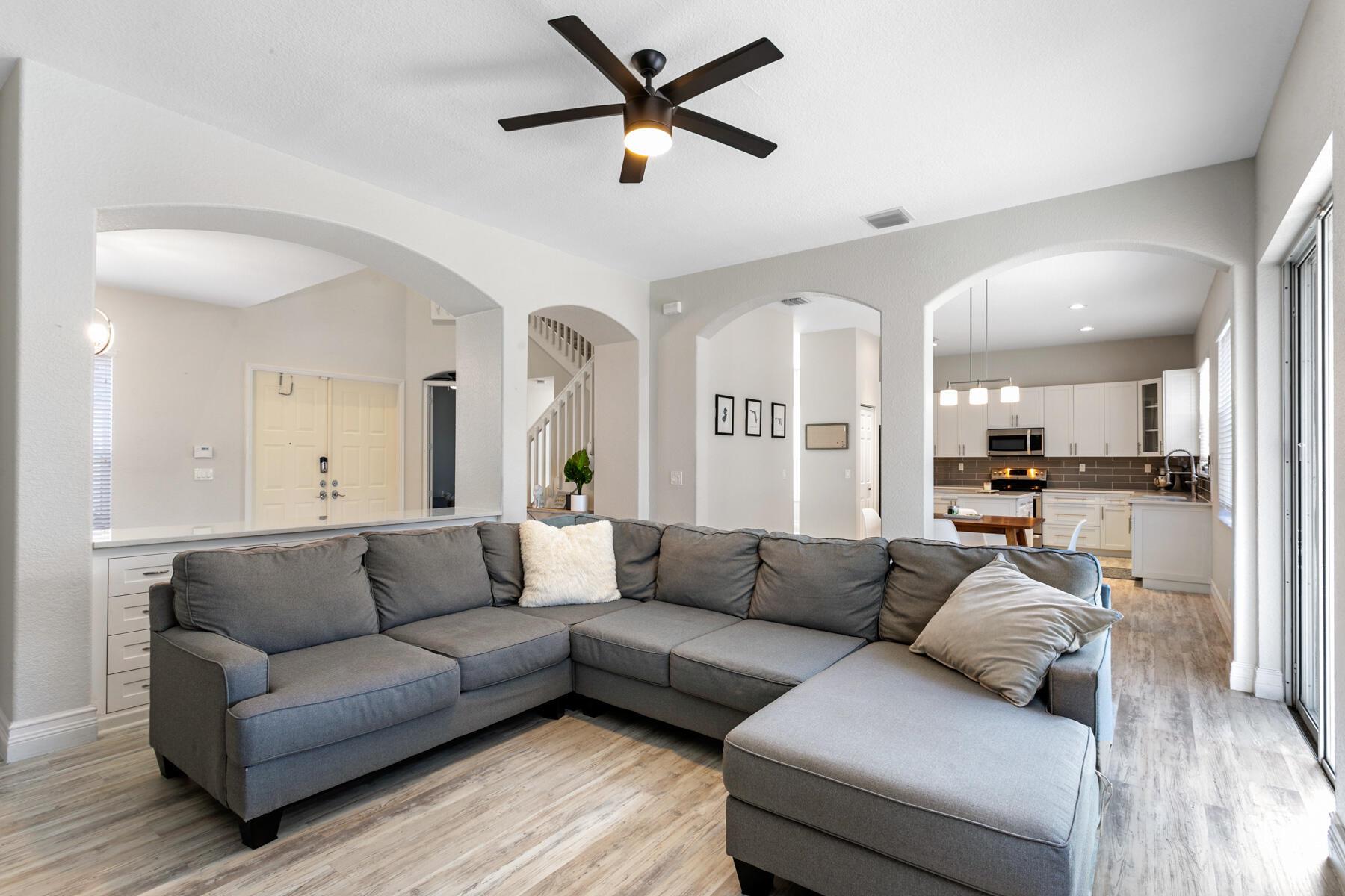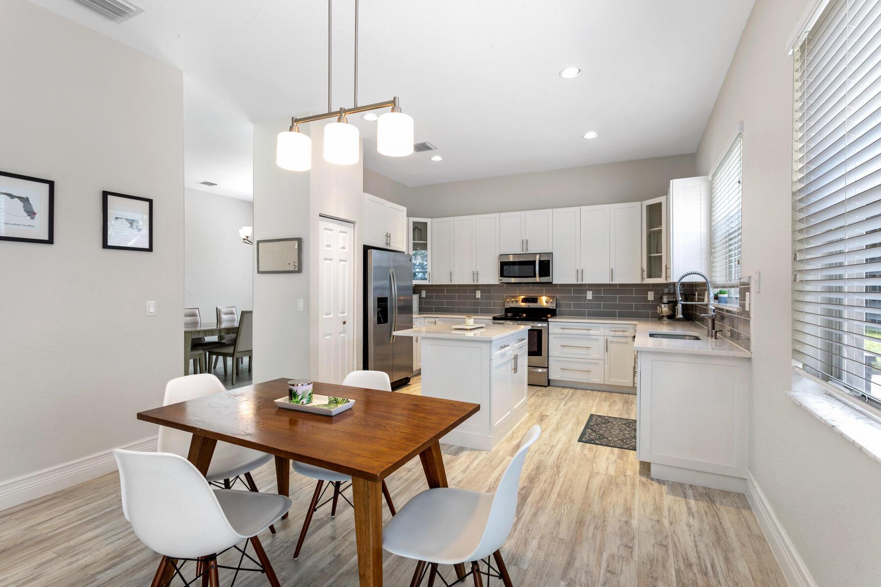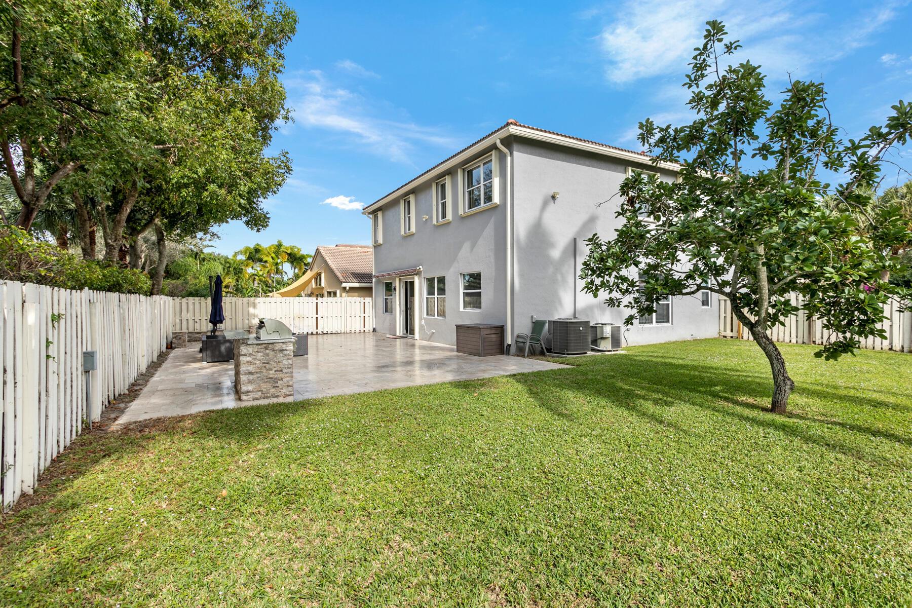Welcome to your dream home! This stunning two-story home features five spacious bedrooms, three full bathrooms, and an office/den that can be used as a sixth bedroom or a work-from-home space. The home is situated on an exceptionally large lot that backs to the community pool and amenities, offering you privacy and convenience. You will love the spacious kitchen that was remodeled in 2018 and has freshly painted cabinets, stainless steel appliances, Quartz countertops, and a breakfast bar. The kitchen opens to the family room and the dining area, creating a perfect flow for entertaining. The backyard is an oasis of relaxation and fun, with an expansive patio that includes a built-in fire pit w/seating, and a summer kitchen. You can enjoy the Florida sunshine all year round. A 3 car....