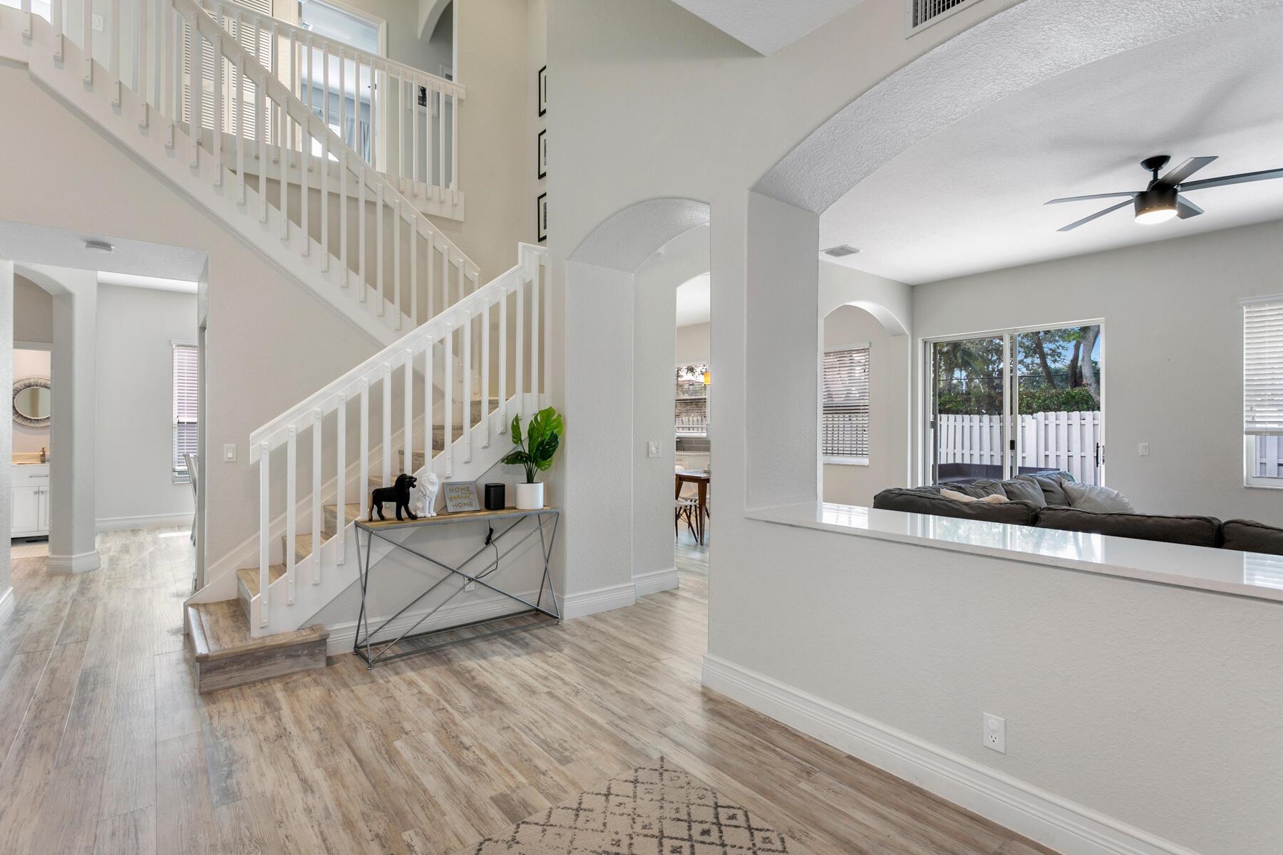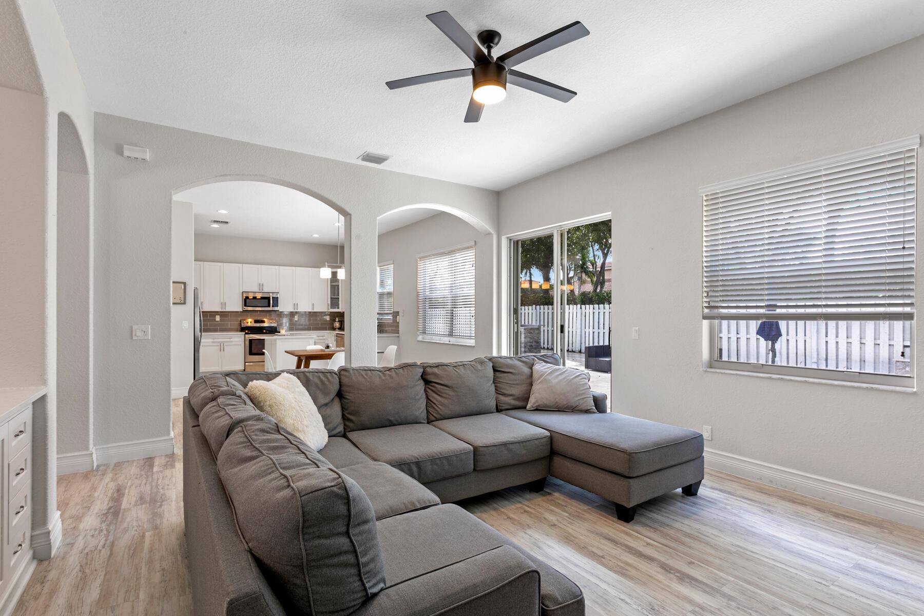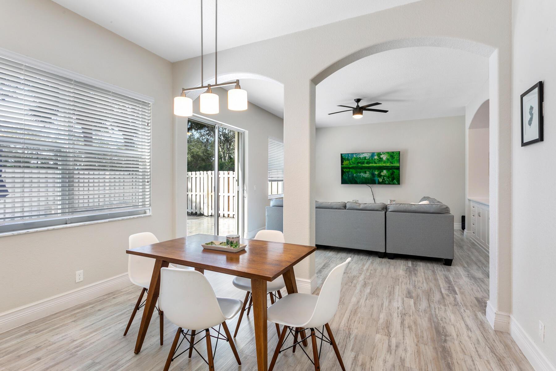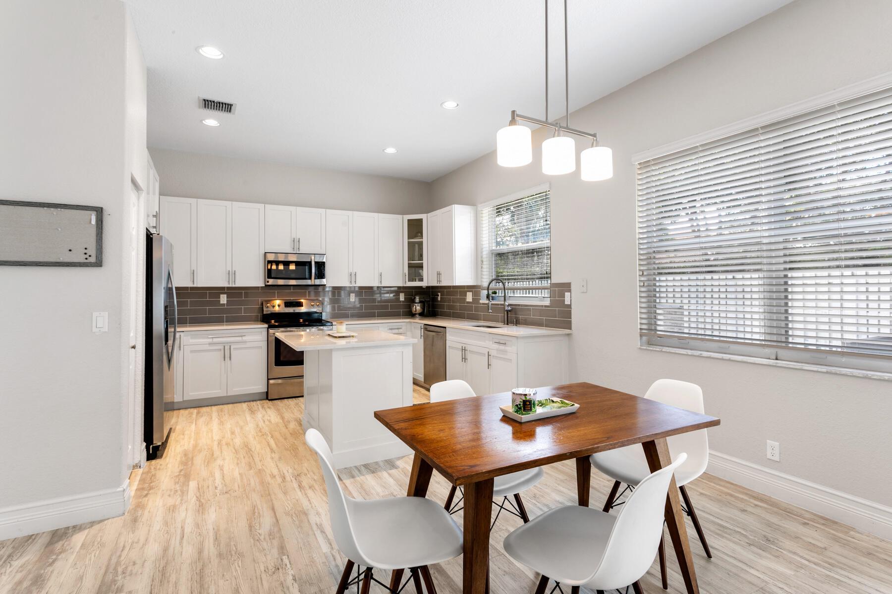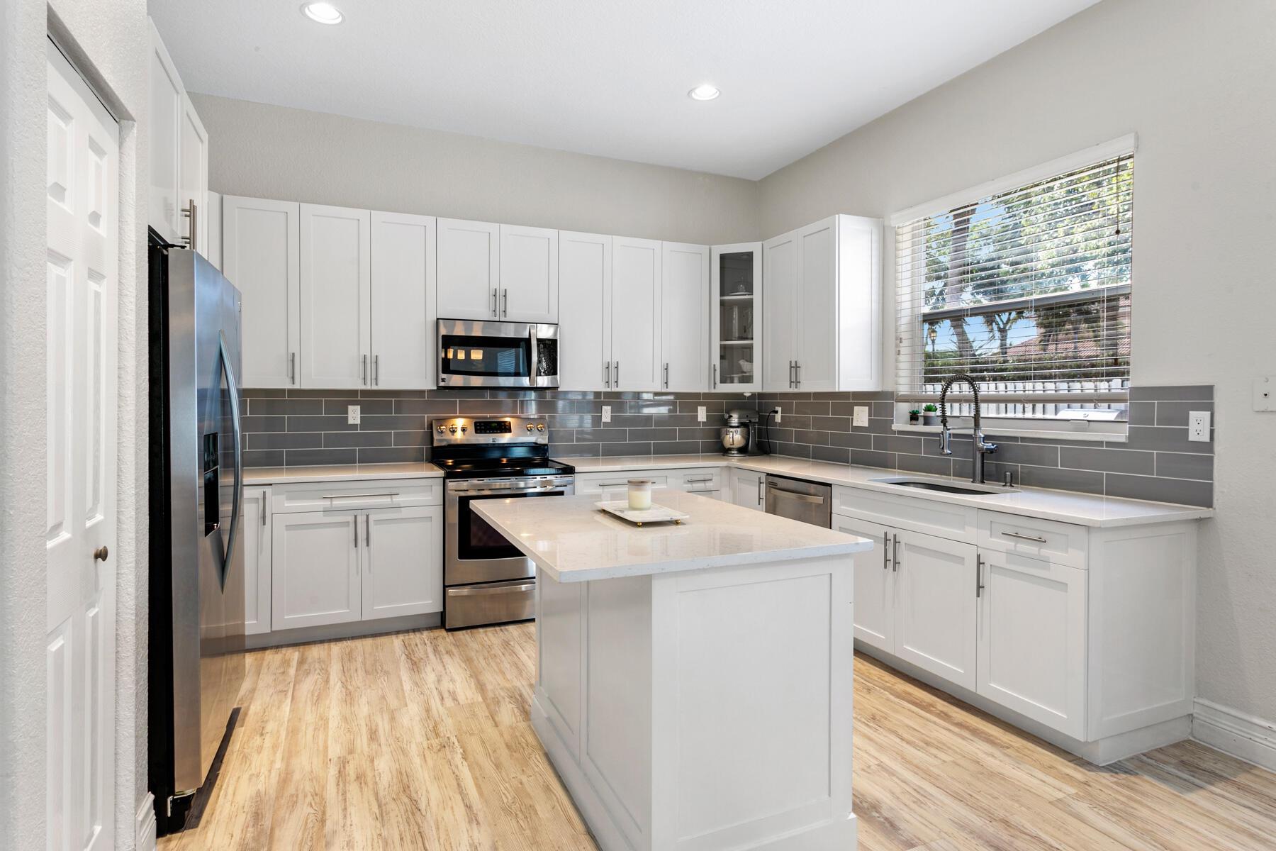 Welcome to your dream home! This stunning two-story home features five spacious bedrooms, three full bathrooms, and an office/den that can be used as a sixth bedroom or a work-from-home space. The home is situated on an exceptionally large lot that backs to the community pool and amenities, offering you privacy and convenience. You will love the spacious kitchen that was remodeled in 2018 and has freshly painted cabinets, stainless steel appliances, Quartz countertops, and a breakfast bar. The kitchen opens to the family room and the dining area, creating a perfect flow for entertaining. The backyard is an oasis of relaxation and fun, with an expansive patio that includes a built-in fire pit w/seating, and a summer kitchen. You can enjoy the Florida sunshine all year round. A 3 car....