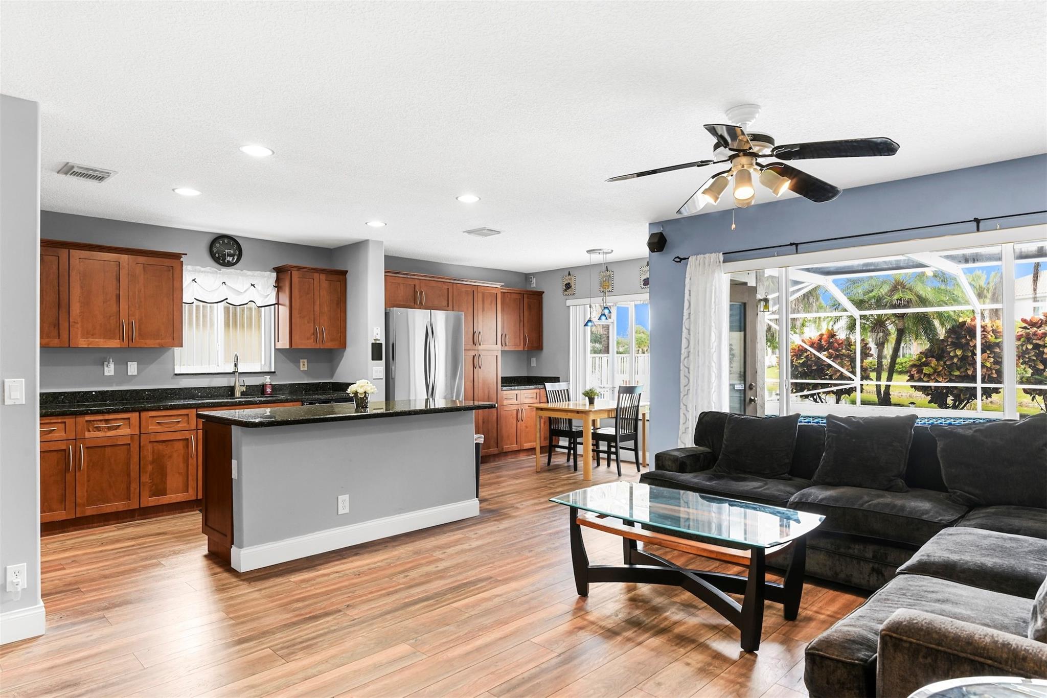Look no more & call this "HOME". This BEAUTIFUL 4 BEDROOM & 3 BATH HOME has lots to offer. HOME FEATURES private backyard w/ a pool over looking the LAKE. HOA ONLY $164 per month. Kitchen features tons of storage space, Island & granite countertops. REFRIGERATOR just 4 MONTHS old. Kitchen was remodeled just 7 years ago & ac units replaced aprx 6-7 yrs ago. Downstairs flooring presents durable laminate flooring that will work with any DECOR. Home has 1 bedroom downstairs with FULL bathroom next to it for guest privacy. Kids can have their own space upstairs in their private LOFT which can be used as play area or tv area. Laundry area is LARGE and w/ PRIVATE WORKSHOP. Lawn maint. included w/HOA. Live near GREAT SCHOOLS !! w/tons of shopping areas & close to the highways. Make an offer!