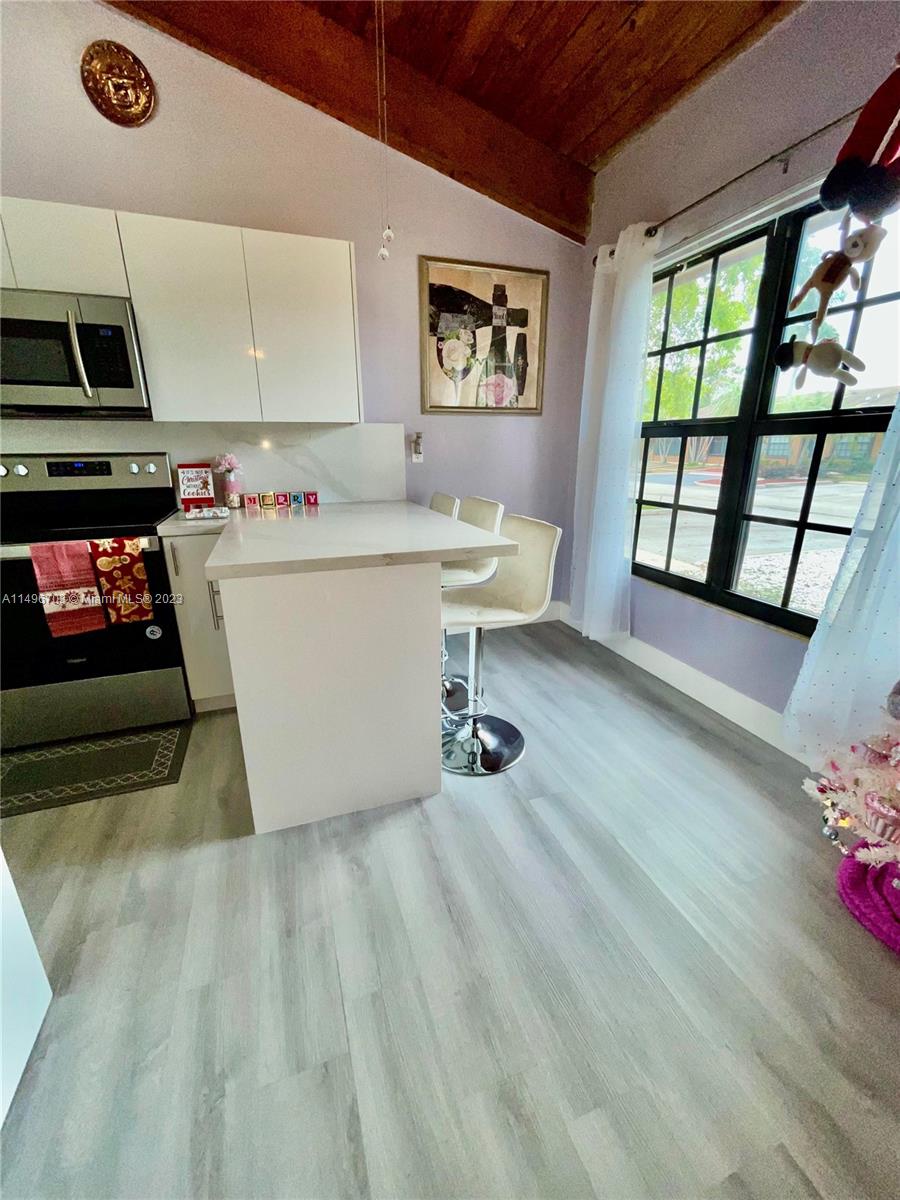 STOP!... LOOK NO FURTHER... THIS BEAUTIFUL CORNER UNIT TOWNHOME WITH NEW WASHER AND DRYER IS WAITING FOR YOU!.. IT HAS EVERYTHING YOU'VE BEEN LOOKING FOR... INCLUDING LOW HOA FEE!... THIS 2 BEDROOM 2 BATHROOM HOME HAS VAULTED CEILINGS A LOFT THAT CAN BE EASILY USED AS a 3rd BEDROOM... IT BOASTS AN OPEN FLOOR CONCEPT WITH EXPOSED WOOD BEEMS!... THIS HOME HAS BRAND NEW STAINLESS STEEL APPLICANCES WITH CUSTOM CABINETS..MODERN KITCHEN WITH QUARTZ COUNTERTOPS.. WASHER AND DRYER IS TASETFULLY ENCLOSED IN CUSTOM CABINETRY LUXURY VINYL FLOORING... IMPACT WINDOWS AND DOOR.. IT ALSO HAS HURRICANE SHUTTERS... NEW WATER HEATER...NEWER A/C AND ROOF!...LARGE PRIVATE PATIO FOR ENJOYMENT AND PLAYGROUND TO USE IF YOU HAVE KIDS.. JOGGING AND BIKE PATH IS SURROUND BY THE LARGE LAKE.. A RATED SCHOOL.