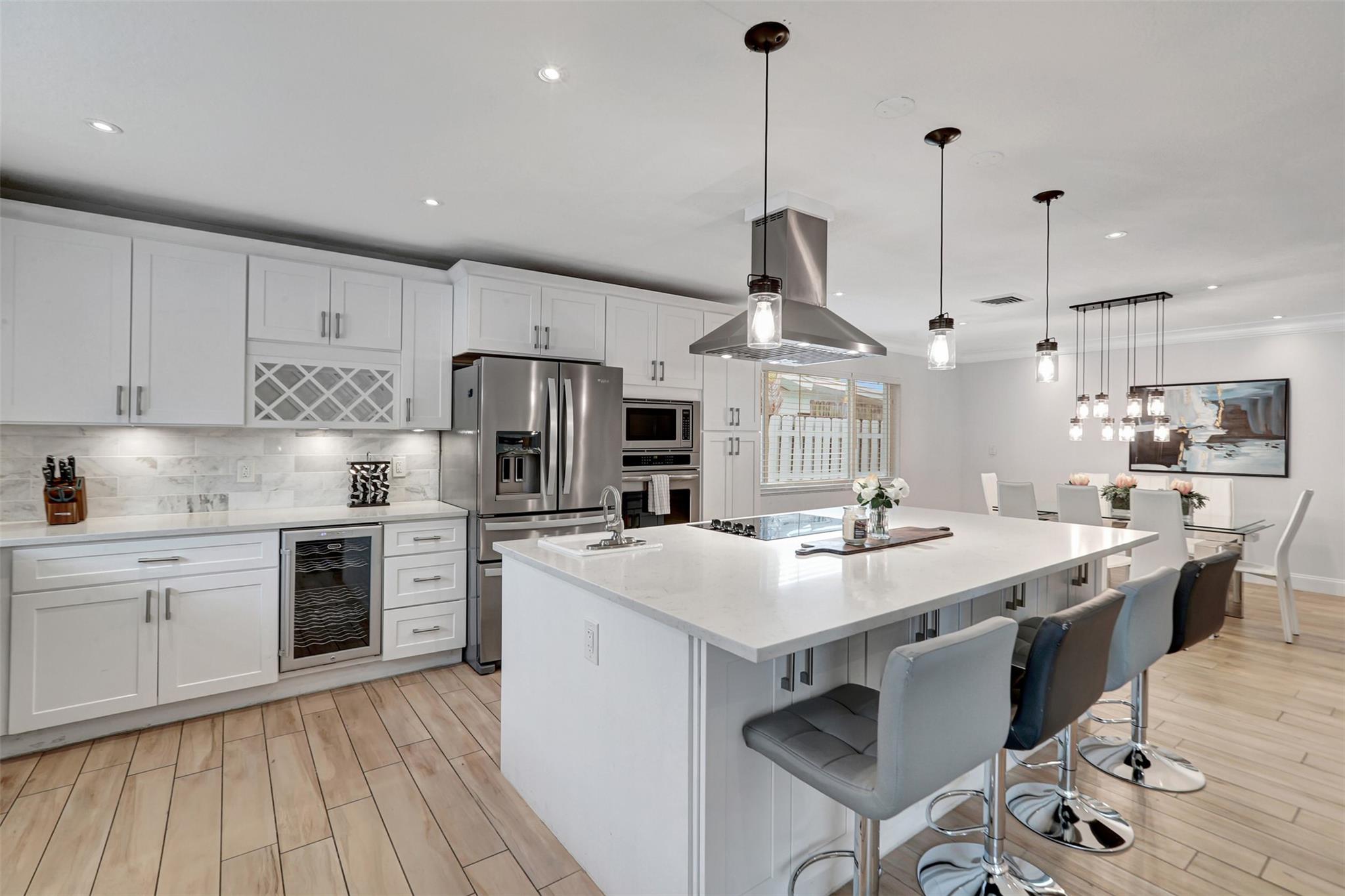 Nestled in the vibrant community of Coral Ridge Isles in NE Ft. Lauderdale, this charming 4 bed/3 bath + office /5th bedroom pool home exudes chic/modern design from the moment you step inside. The open-concept living area is bathed in natural light, accentuating the elegant tile flooring & creating an inviting atmosphere for gatherings. The heart of the home is the well-appointed kitchen features quartz counters, SS appliances, a cook island w/ secondary sink + counter dining, and ample cabinet space. The spacious master bedroom offers a serene retreat, a walk-in closet and a private en-suite bathroom with an oversized walk-in shower featuring dual rain heads. Property is presently operated, fully furnished and equipped as a 5 Star rated, vacation rental.