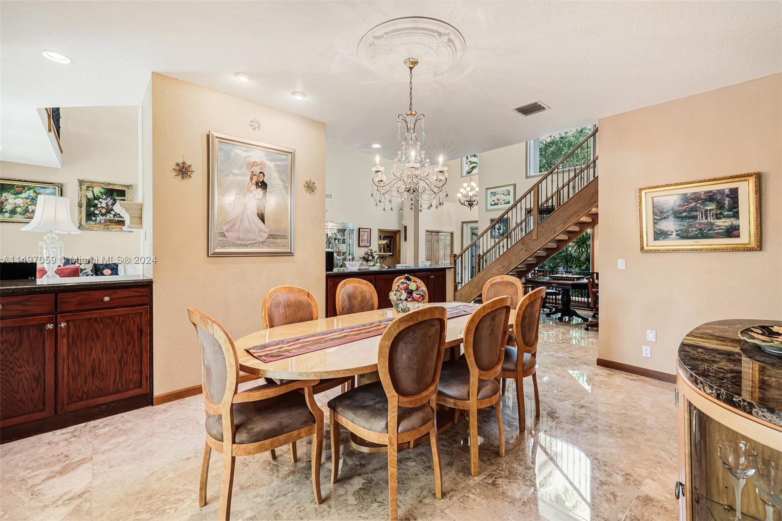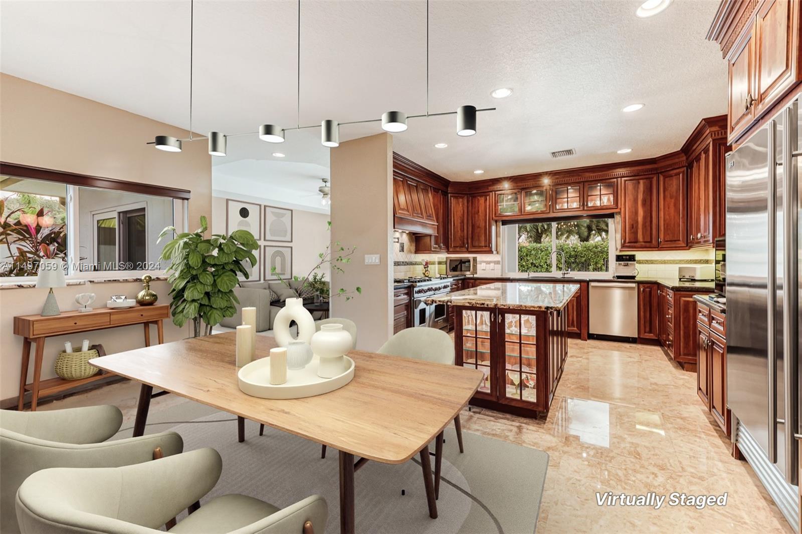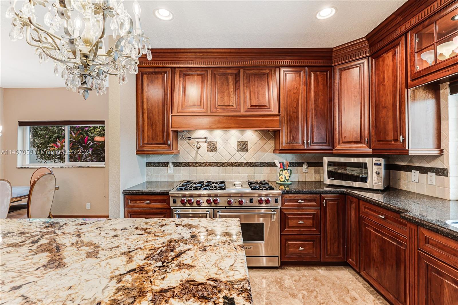 Luxury, Elegance is the lifestyle that comes with this home on a private lot on the cul-de-sac. This custom estate home has 5 Bedrooms, 4 1/2 Baths, Office, 3 car garage, completely remodeled, marble floors, high ceilings, living room w/ fireplace, formal dining. The heart of the home is this custom kitchen w/ a 48" Wolf gas range, 72" Subzero refrigerator & freezer. Upstairs you have 2 lofts, main suite w/ sitting area and bath w/ fireplace. Almost 1/2 acre lot on the water that provides much privacy, w/ heated pool (40X17) & spa w/ cover terrace. This home has been meticulously maintained. Maplewood Isles is a gated community of only 104 custom homes.