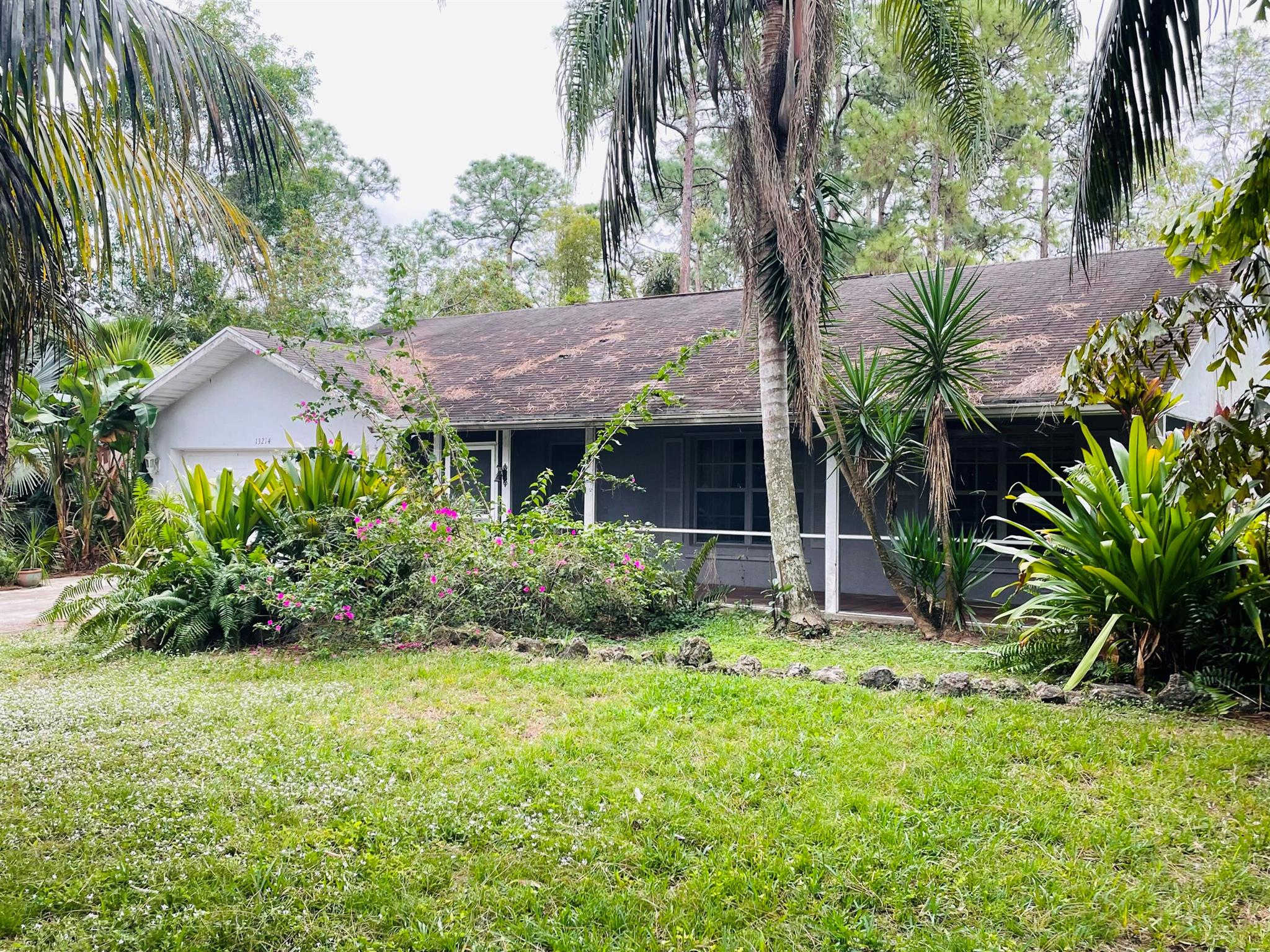 Opportunity is knocking! Welcome to the neighborhood of THE ACREAGE, just a short drive from many of the conveniences & attractions of Palm Beach! This 3/2 home sits on 1.16 acre. A nice long driveway, gated fenced-in yard & native landscapes for added privacy. 2 large screen-in porches w/ seating areas to enjoy serene outdoor surroundings. Once entering this cozy home your imagination will be inspired w/ the sizeable living room adjacent to the kitchen, ideal for a possible future peninsula bar! You'll truly appreciate the vaulted ceiling, giving the main living area height and openness! Split bedrooms, for added privacy between main bedroom & guest! With a little sweat-equity and updating, your investment will rival many neighboring homes! Come quickly while opportunity knocks!