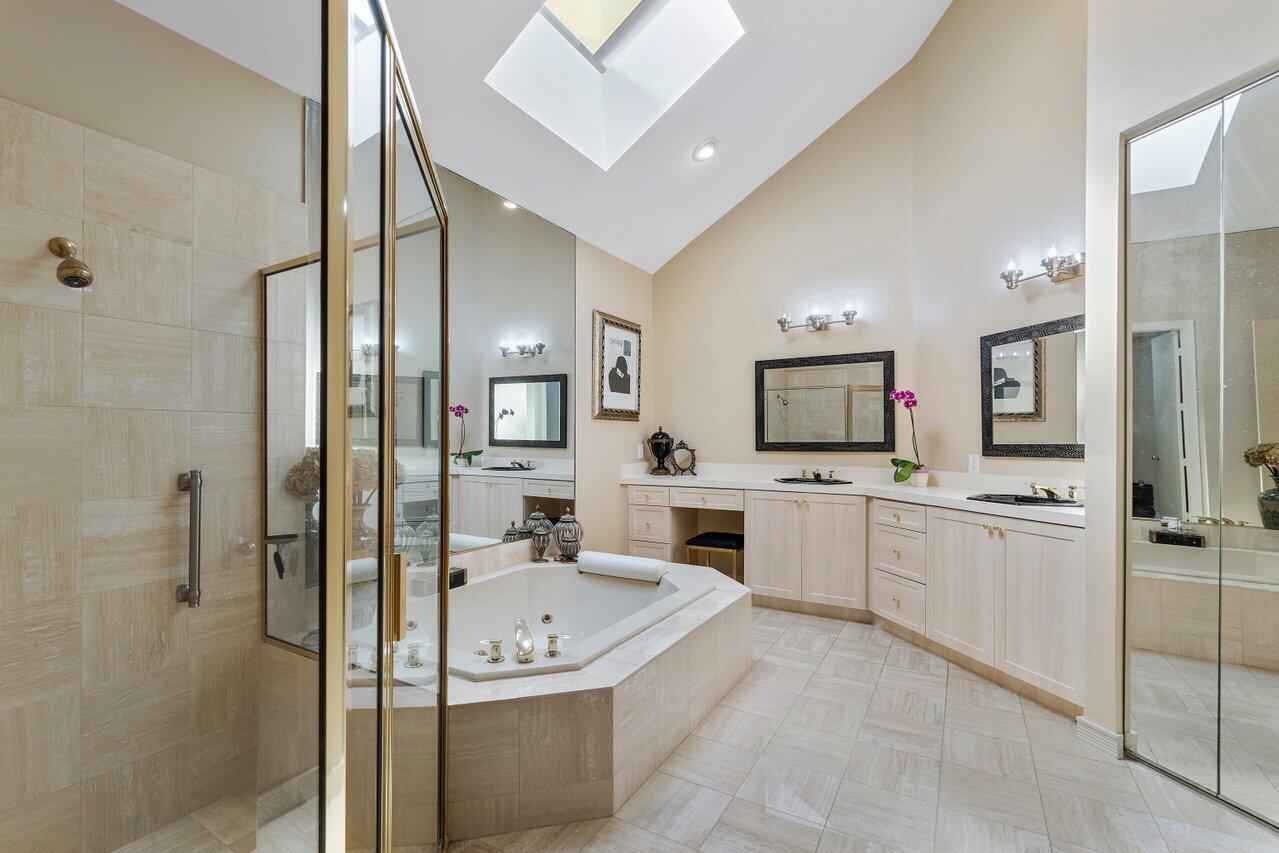 Nestled in a tranquil locale, this exceptional home offers unparalleled privacy, bordered by open space and a serene lake as the backdrop. A grand double-door entrance sets the tone for elegance, leading into a grand living room bathed in natural light, through the expansive windows and soaring ceiling heights. The kitchen boasts scenic views of the outdoors, featuring a capacious patio with a private pool and a separate spillover spa. The primary bedroom is large in scale and offers voluminous vaulted ceilings, boasting not one but two primary baths and two generously sized walk-in closets. Two additional bedrooms share a well-appointed bathroom. Plus a versatile currently open den may easily be converted into a private office. Additional points of interest include a spacious powder