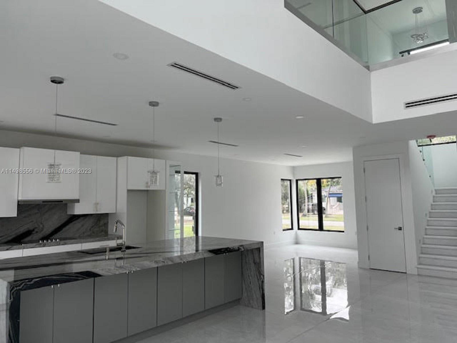 Stunning corner NEW home in the heart of Miami Springs. 4 Bedrooms / 5 bathrooms. 2-car garage. Modern design new construction with high-end finishes and design. It is centrally located, easy access to the major expressways and MIA airport. NO HOA fees. Residents have access to Miami Springs Recreation Center, with gym and pool. Features: open floor plan between kitchen, living area and dining area, marble staircase, glass railings, impact-resistant windows and doors, 36 x 72 porcelain flooring throughout, 1 master bedroom downstairs, great for in-law or teenager, 1 master bedroom upstairs, all bedrooms have its own bathroom, high-end bathroom fixtures, granite countertops in kitchen, stainless steel appliances. Home has 3,350 sqft. living area, lot is 7,050 sqft.