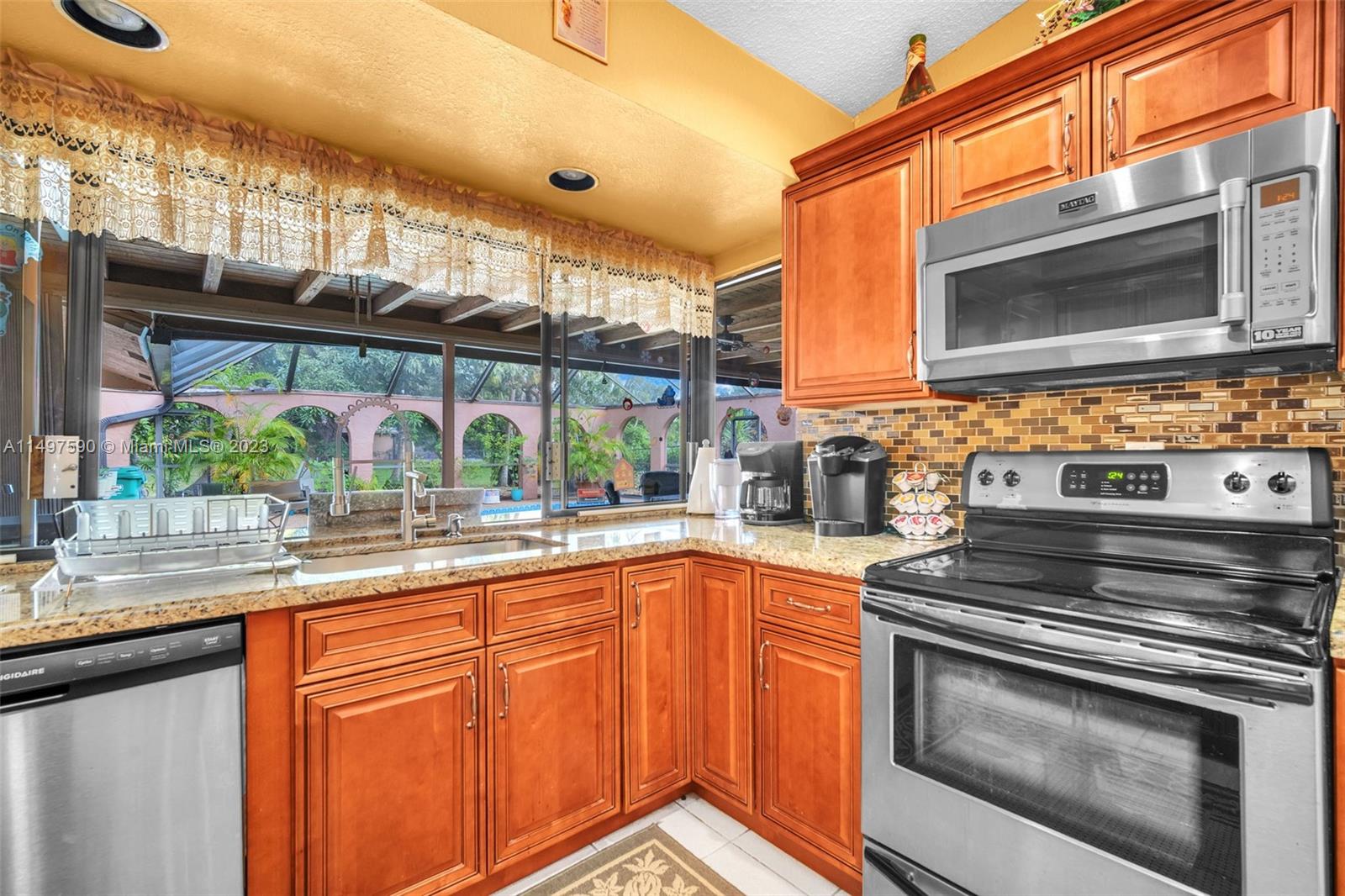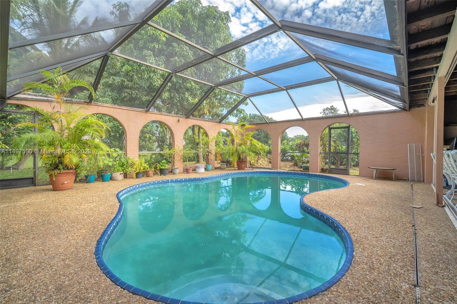 Rare find in Maplewood! This beautiful corner-lot property, the best and most affordable in the market, features a NEW 2018 Roof, 5 beds, 2.5 baths, a 2-car garage, and a screened-in patio pool. Enjoy a chef's dream kitchen with upgraded features like stainless steel appliances, granite countertops, and ample storage. Vaulted ceilings, skylights, and an open floor plan fill the home with natural light. The spacious primary suite includes an oversized walk-in closet. With a wide canal/water view, accordion shutters, and NO HOA, this home offers both style, charm, and convenience. Walk to Maplewood Elementary or drive within minutes to nearby restaurants, shops, and highways. Don't miss out—schedule your viewing today!