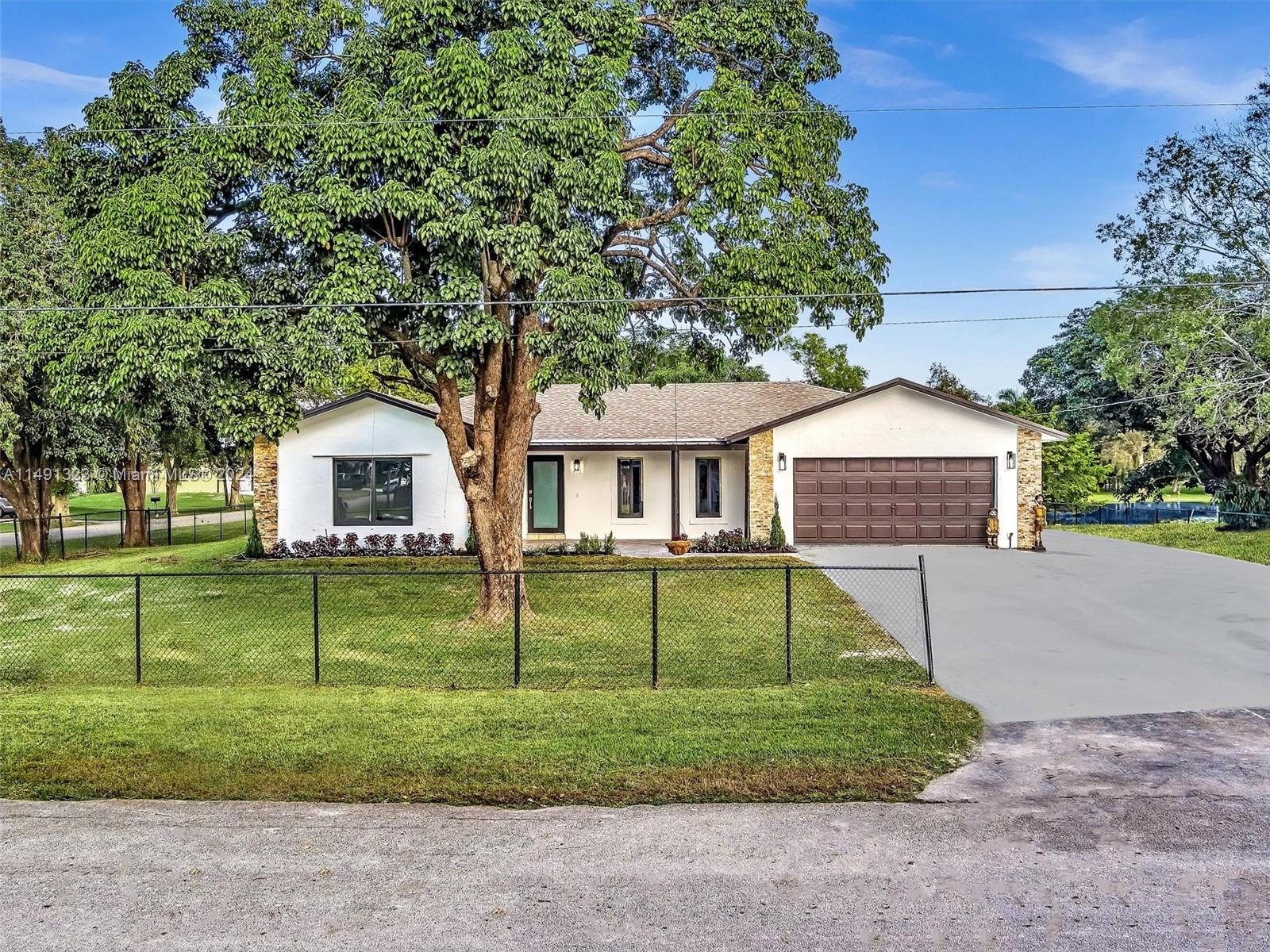 Beautiful house located in the heart of Davie ready for first owner quiet community of Hiatus Ranchettes. Completed renovated, lakefront 4 bedroom added 3 bathroom, 2 car garage, New laminated floors waterproof, new kitchen with quartz counter, wood cabinets, SS appliances, complete renovated bathrooms, and new 3er bathroom, Roof 2 years AC brands new, Impact windows, fresh painted outside and inside, pool home has views of the lake that will take your breath away! It sits on a sprawling builder's acre. Updated electric panel, tankless water heater, resurfaced pool, split ac units, oversized bedrooms, and a kitchen you can dance in. Move-in ready, just waiting for the right family to move. Easy to show, call the listing agent.