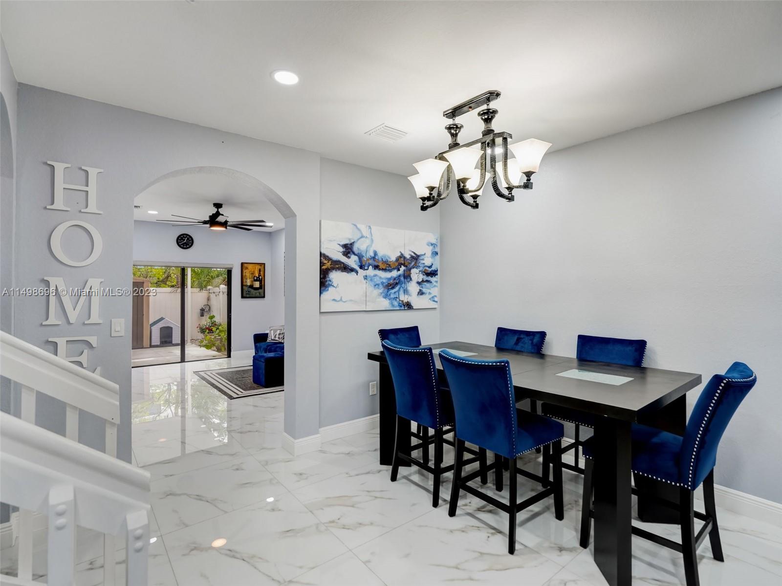 PRICE ADJUSTED! Beautifully remodeled 3-bed, 2.5-bath townhouse in coveted Aragon Bellagio Villas, Hialeah. Luxurious modern upgrades adorn this spacious home, offering an open layout, updated kitchen, and roofed outdoor space. Prime location near I-95 grants easy access to shopping, dining, and vibrant city life. Upgrades: Patio roof,tankless water heater,new closets in all bedrooms, real wood kitchen cabinets, Quartzite natural stone w/waterfall and full high back splash kitchen counter,dimmable high hats in both floors, upgraded baths, new porcelain tile floors 31x31 new ceiling fans 65 inch downstairs, tankless water heater A/C 2021