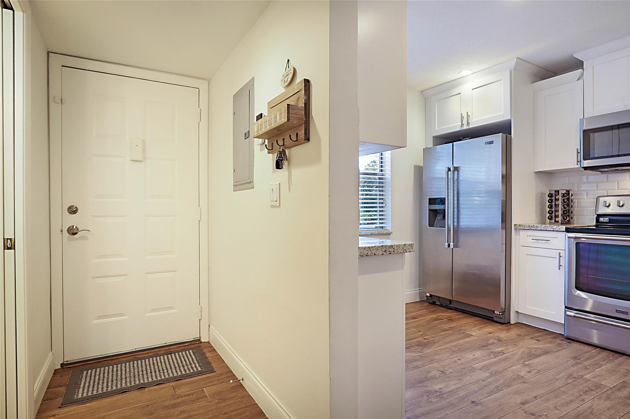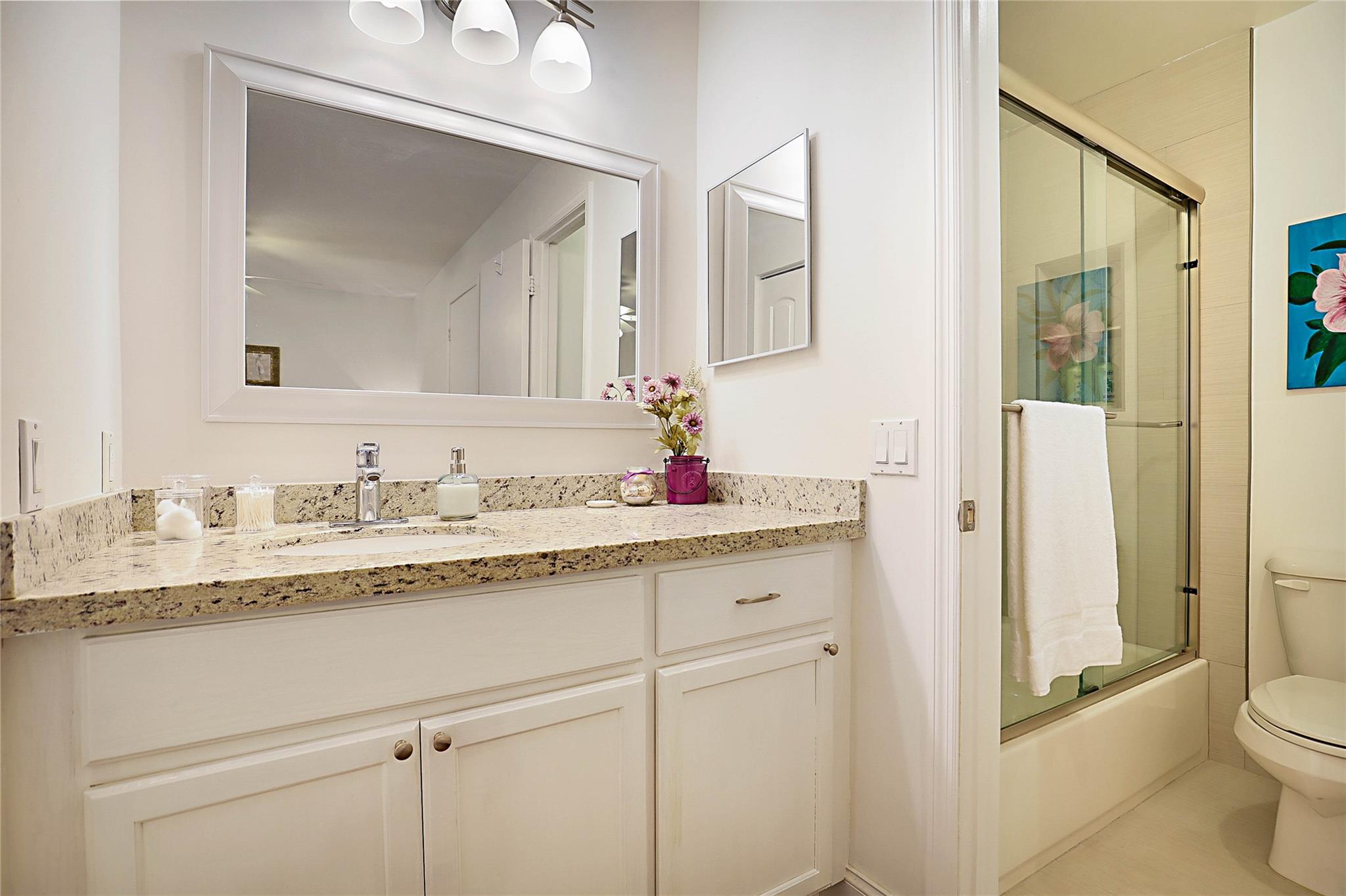 Completely upgraded 2 bedroom lake front Townhome in Boca Walk. Everything done including kitchen, bathrooms, floors, ceilings, recessed lighting & more. Contemporary touches everywhere. Two large master bedrooms upstairs with each one having its own private bathroom. Guest 1/2 bathroom downstairs. Elegant wood plank tile flooring throughout. Modern kitchen featuring new white shaker cabinetry, stainless steel May Tag appliances and granite counter tops. In unit washer/dryer. Storm shutters. Amazing lake views. Boca Walk is an all ages community with walking distance to places of worship, YMCA and close to I-95 and minutes to Boca Town Center, Mizner Park and beach. Leasing is allowed after one year of ownership. Insurance, internet & cable included with HOA fee.