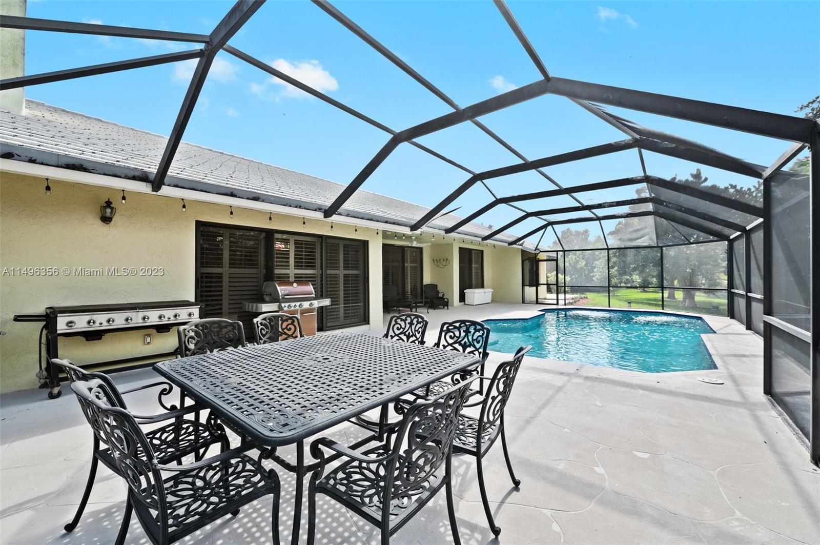 Discover this stunning Laurel Oaks home situated on a sprawling 1-acre lot! This 4-bedroom, 4-bath pool home boasts an enclosed patio, impact windows, & skylights for an abundance of natural light. The residence features a wood-burning fireplace in the family room, custom plantation shutters, California closets, and tile floors in the living areas & master bedroom. The master suite is a luxurious retreat, offering his & her baths and a sitting area with views of a private patio. One of the bedrooms has water-proof wood vinyl plank flooring. The kitchen is a chef's delight, equipped with custom cabinets, top-of-the-line appliances, granite countertops, a wet bar, & a separate breakfast room. This home combines elegance, comfort, & functionality for an exceptional living experience.