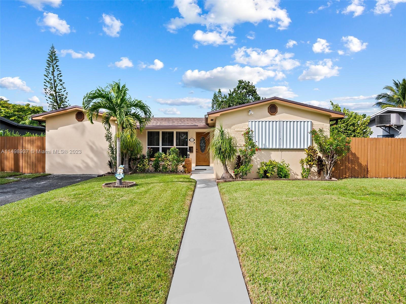 This meticulously maintained residence offers 4 BR, 2 BA, and a spacious split floor plan that is perfect for comfortable living and entertaining. This home is equipped with a 2021 roof, partial impact and accordion shutters and newer appliances! The heart of the home is the expansive living area, where you can relax after a long day. The kitchen is a chef's delight, boasting modern appliances and ample storage space. Step outside to discover the large open backyard, complete with a screened-in covered patio. The outdoor space provides endless possibilities for creating your own oasis! Proximate to I-95 and the turnpike, the beach, airport, Hard Rock, and easy access to Miami and Fort Lauderdale!